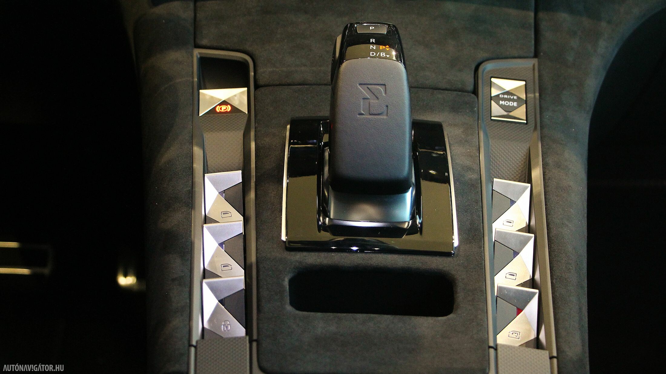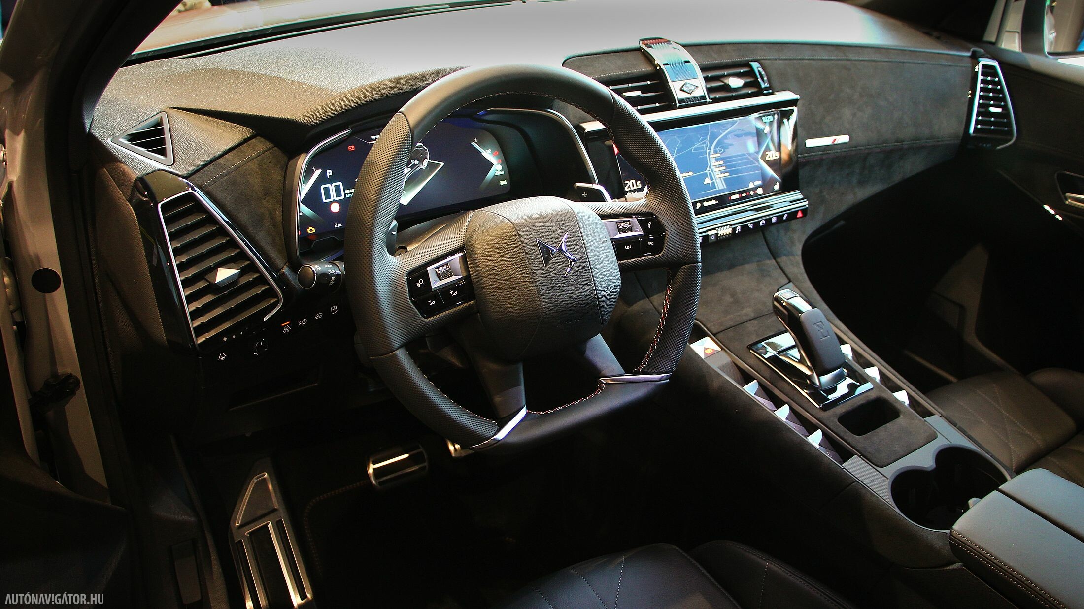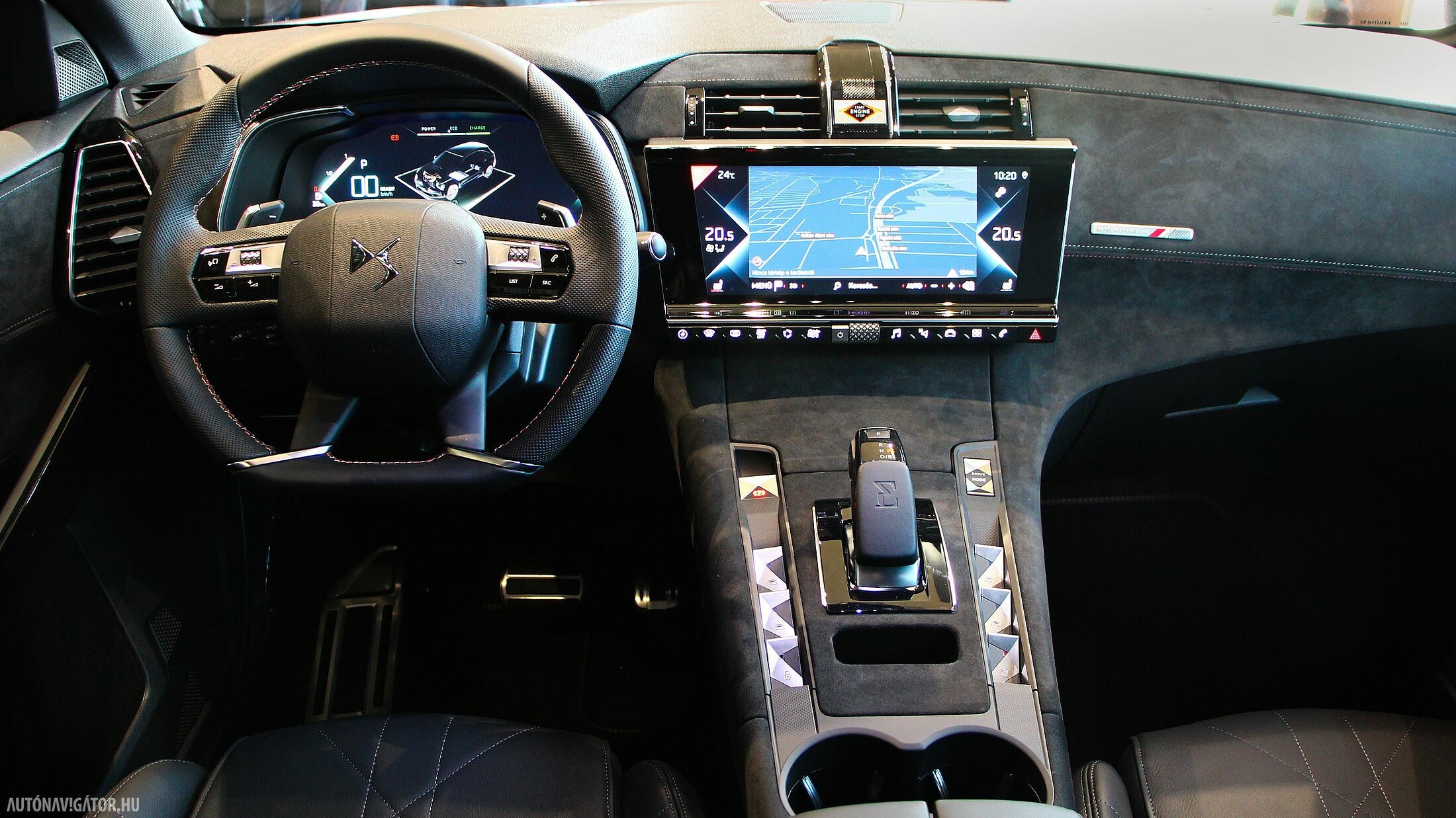 Utasterében is ugyanaz a látvány fogad, ám az üvegek és a kasztni lemezei vastagabbak lettek, hogy hatásosabban szűrjék ki a külső zajokat, mivel a szinte néma villanyhajtás miatt a beszűrődő egyéb zajok jelentősebbnek tűnnének, már ha hagynák őket bejutni. De nem hagyták, és tényleg egy süketszobára emlékeztet az E-TENSE-ben utazni. A belső stílust háromféle opció közül lehet kiválasztani. Az Opera óraszíj mintázatú üléseket adó nappabőr kárpittal, valamint látványos gyöngyszemöltéses díszvarrással kápráztat. A Rivoli változatban kavicsszürke szemcsés bőrburkolat fogad, DS Performance Line csomag pedig egy nagy Alcantara „medence”, szinte bármihez nyúlunk benne, tuti, hogy Alcantara borítású.
