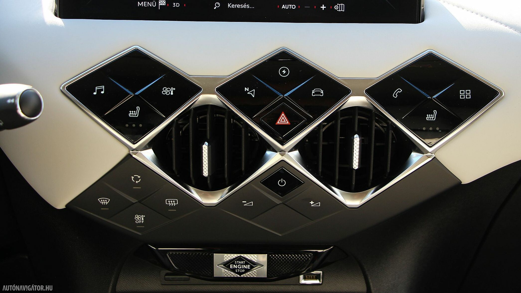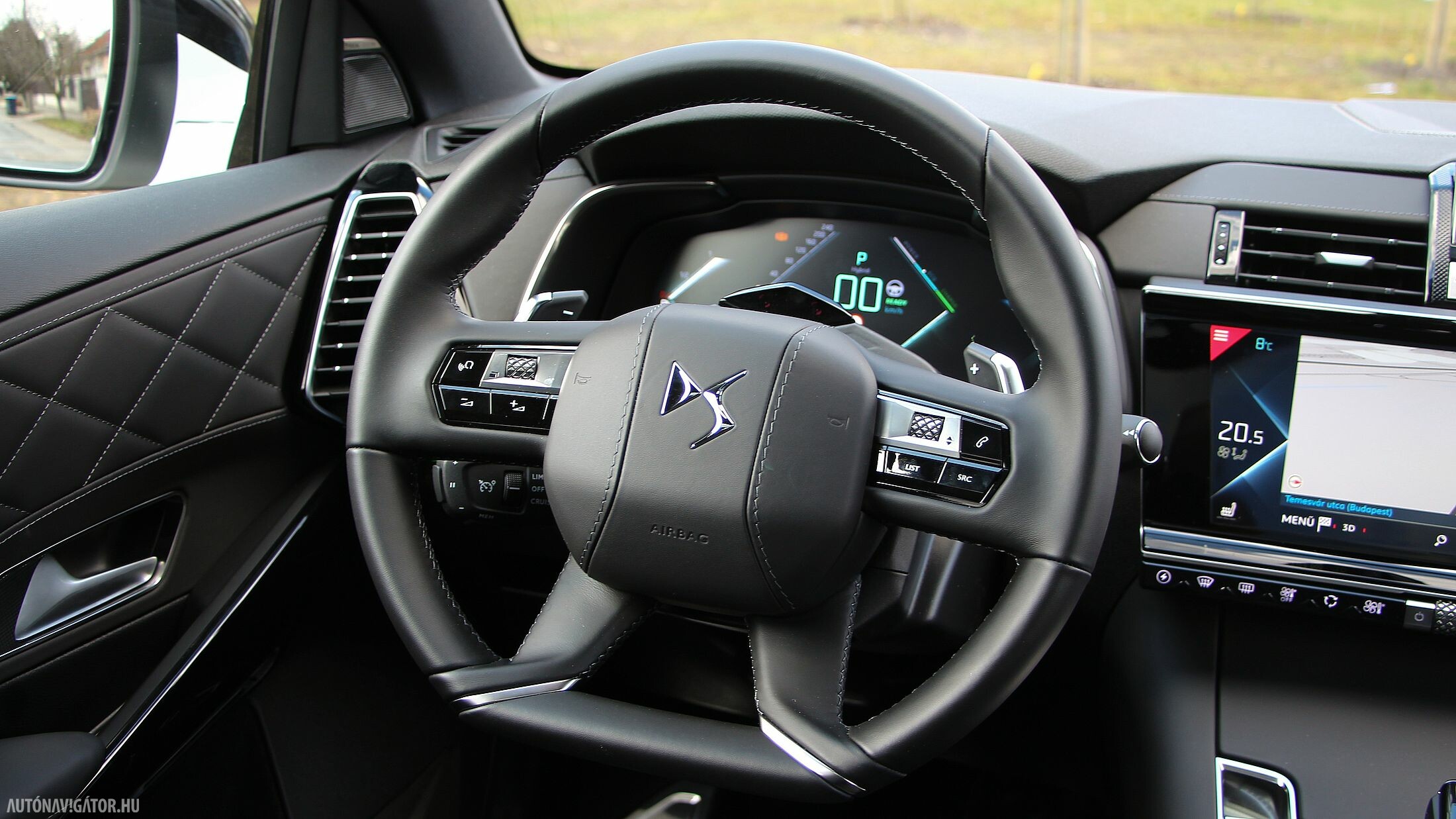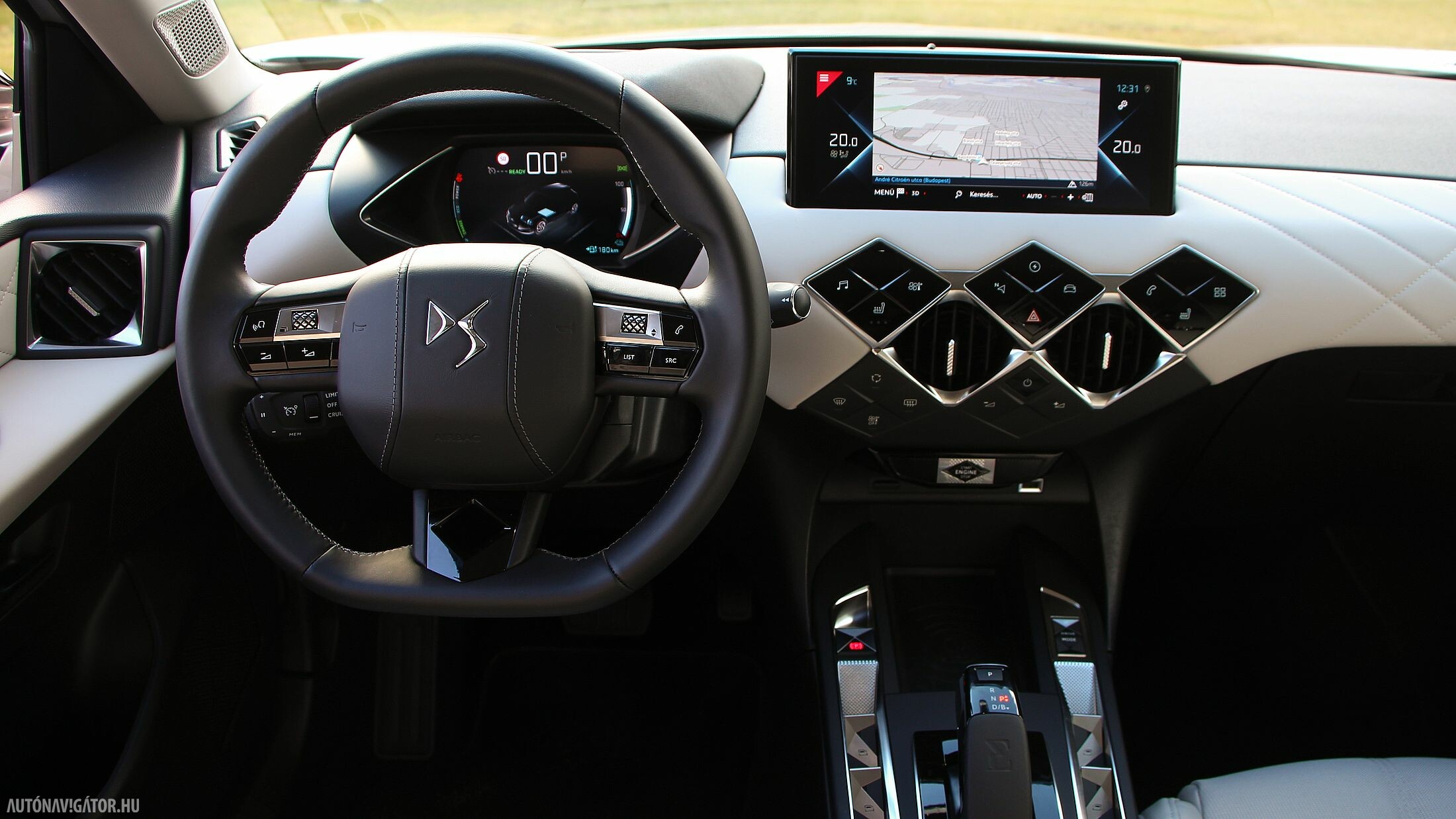 Utasterében is ugyanaz a látvány fogad, ám az üvegek és a kasztni lemezei vastagabbak lettek, hogy hatásosabban szűrjék ki a külső zajokat, mivel a szinte néma villanyhajtás miatt a beszűrődő egyéb zajok jelentősebbnek tűnnének, már ha hagynák őket bejutni. De nem hagyták, és tényleg egy süketszobára emlékeztet az E-TENSE-ben utazni. A belső stílust háromféle opció közül lehet kiválasztani. Az Opera óraszíj mintázatú üléseket adó nappabőr kárpittal, valamint látványos gyöngyszemöltéses díszvarrással kápráztat. A Rivoli változatban kavicsszürke szemcsés bőrburkolat fogad, DS Performance Line csomag pedig egy nagy Alcantara „medence”, szinte bármihez nyúlunk benne, tuti, hogy Alcantara borítású.