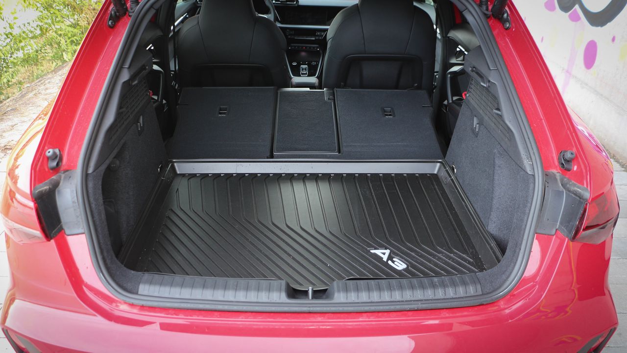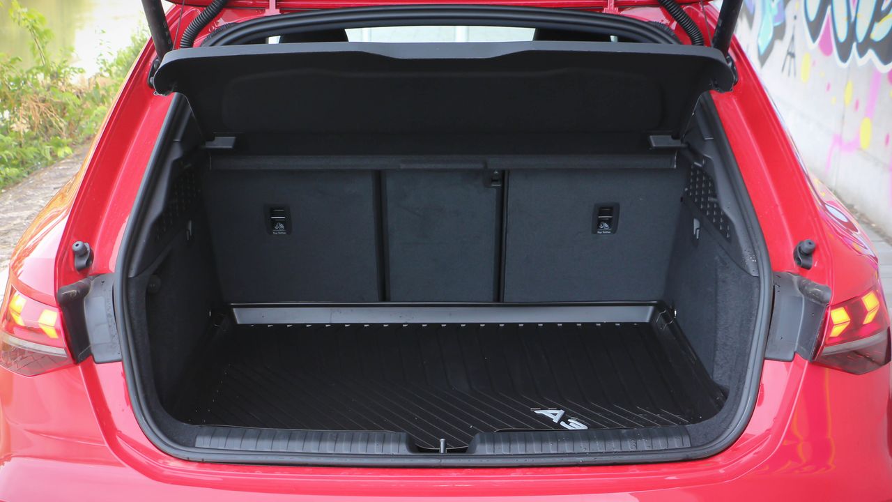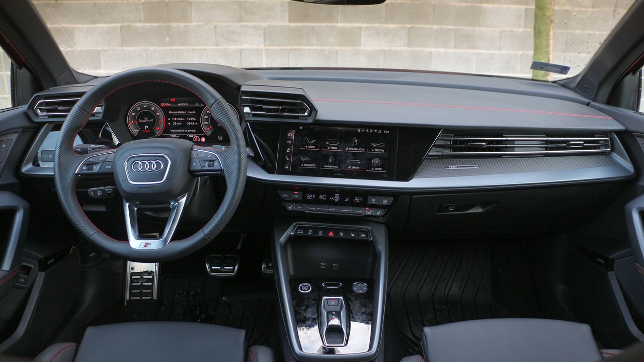 Az anyaghasználat és az összeszerelési minőség hozza az Auditól elvárható szintet. Az ülések rendkívül kényelmesek, a piros cérna, és az első sorban az S Line embléma sokat dob az összképen. Térkínálat szempontjából az elöl ülők fogják igazán komfortosan érezni magukat, hátul korlátozottabbak a lehetőségek, de ferdehátú lévén ezt kár lenne felróni az A3-nak. A csomagtér hozza a kategóriaátlagot, 380 liter, a 60:40 arányban dönthető ülésekkel mindez 1200 literig bővíthető.