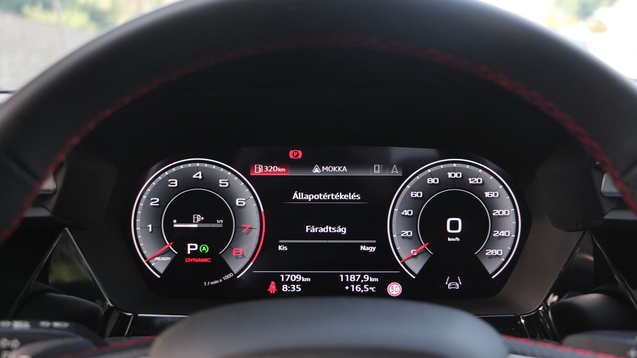 Vezetési élmény szempontjából kiváló munkát végeztek az Audi szakemberei. A futómű hangolása a keményebb felé tendál, ráadásul a 19 colos felnikkel még nagyobb ellenségek az úthibák. A kanyarokban kiválóan íven tartható, a kormányműve tűpontos, igaz, a teljes élményért érdemes a Dynamic üzemmódot aktiválni. Ekkor ugyanis a gázreakció intenzívebb lesz, illetve a kormány is kissé felkeményedik a precízebb vezetés érdekében. Nyugodtabb körülmények között sem vall szégyent. A szélvédőre vetített színes HUD kiválóan pozicionálható, az összes fontos információt képes megjeleníteni, az egyik legjobb amivel eddig találkoztam.