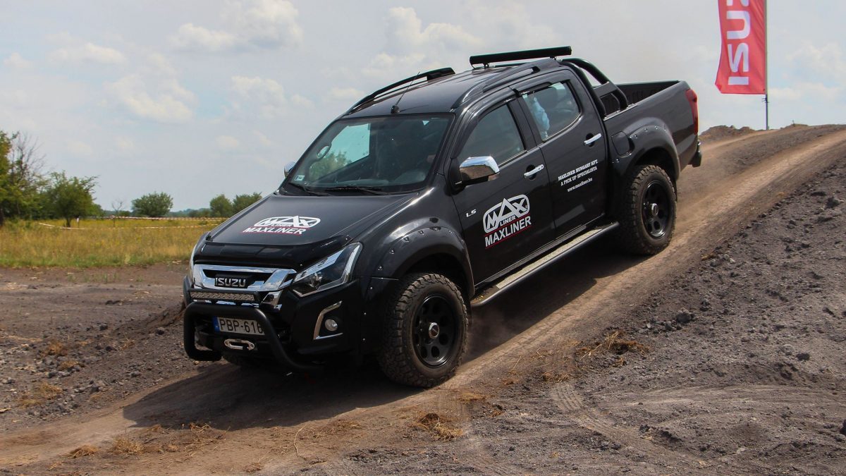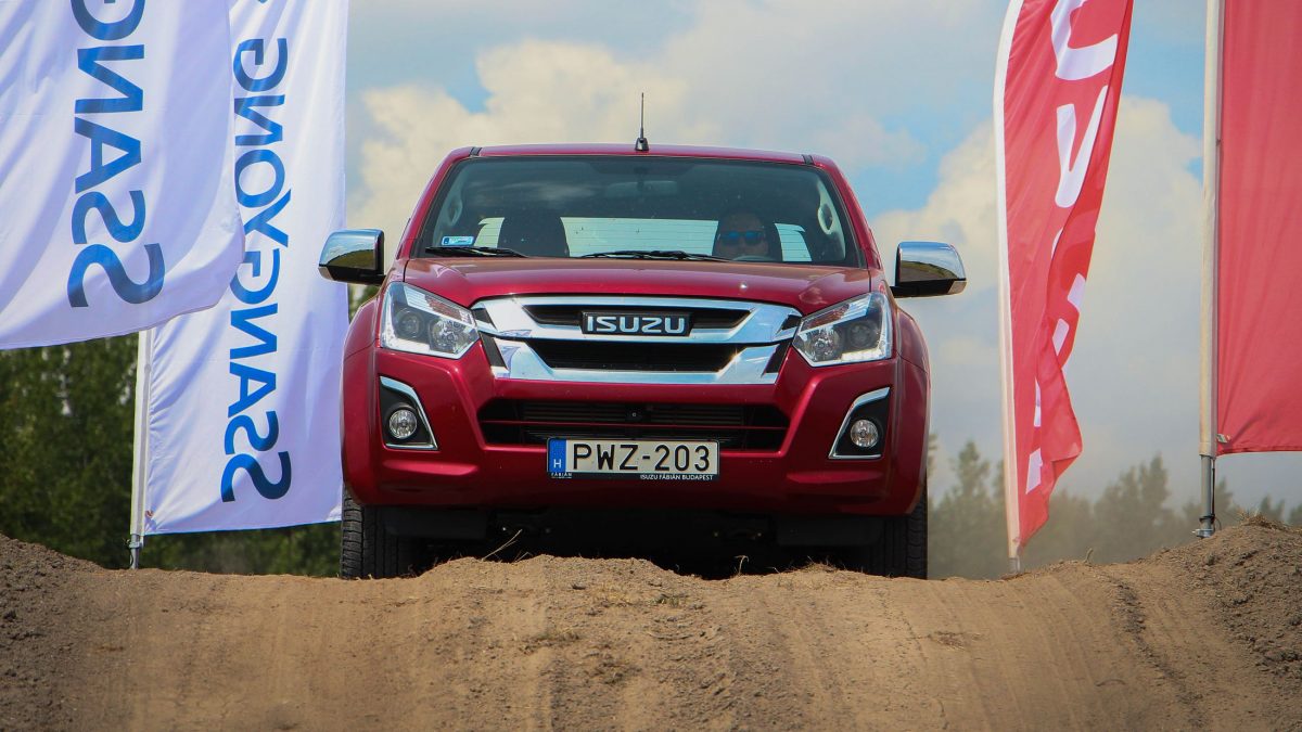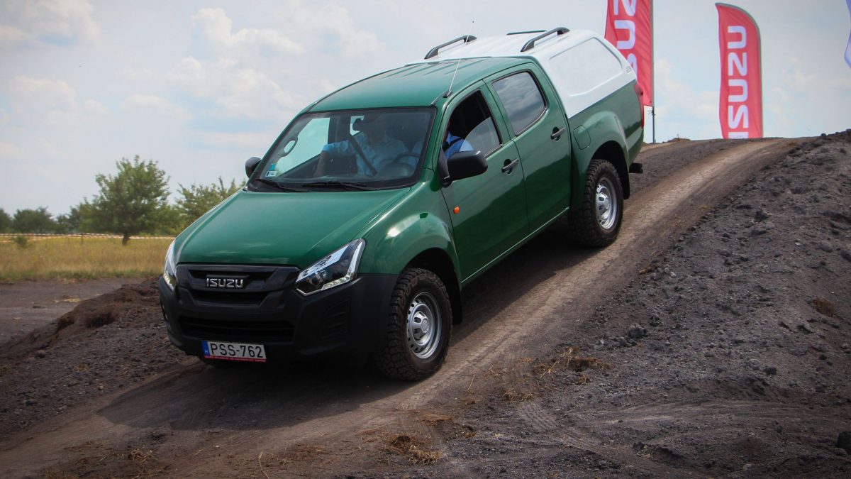 A jelenleg itthon kapható D-Max hajtásáról 1,9 literes, 164 lóerős turbódízel motor gondoskodik. Választható hozzá hatfokozatú manuális, illetve szintén hatfokozatú automatikus váltó is. A 3,5 tonna vontatási kapacitású és egy tonnával terhelhető pickup négyféle karosszériával rendelhető és olyan biztonsági extrákkal is felszerelhető, mint például a vontatmánystabilizátor. A vontatást ugyan nem próbáltuk, de a Mikebuda mellett kialakított tereppályán bebizonyította az Isuzu, hogy nem riad vissza az „ürgelyukakkal” teletűzdelt földutaktól, sem a meredek, laza talajjal borított kaptatóktól.