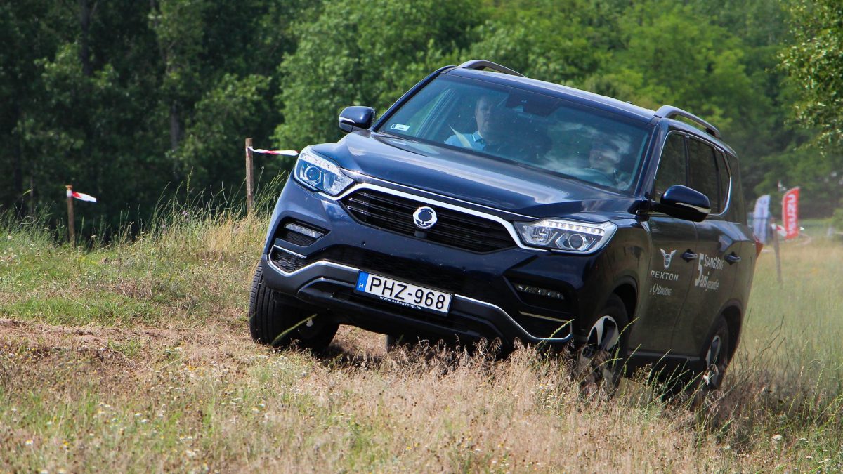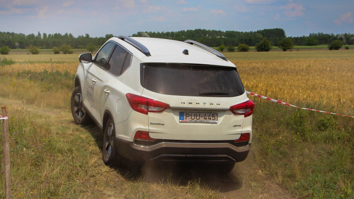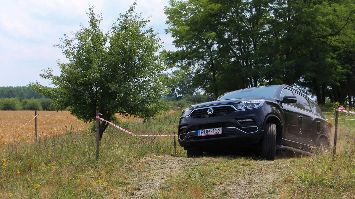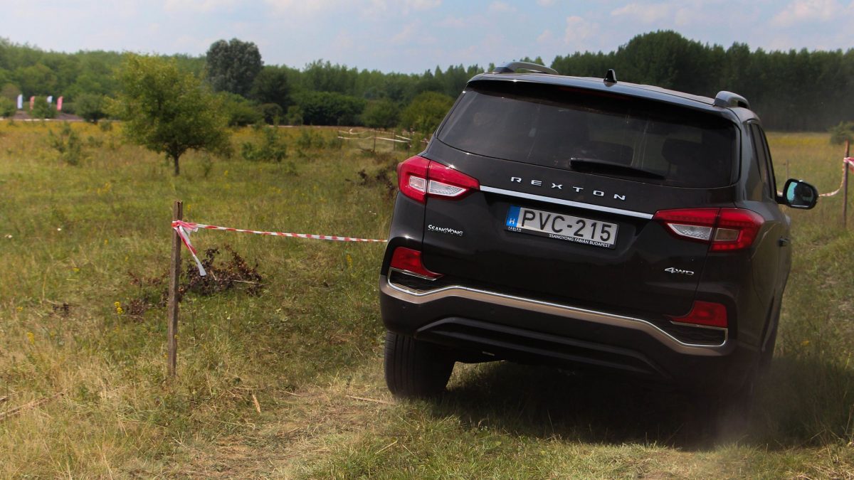 Feladatból pedig volt bőven: meredek kaptató, töltés oldalán suhanás, árkok „átugratása”. Első pillantásra nem is gondolná az ember, mire képes a Rexton. Jó, persze magas, de némelyik modellen ott feszült a fellépő, ami a terepezés ellensége. A túlnyúlások viszont kellőképp kicsik, ami a terepszögek javára válik. Pedig pont a hátsó túlnyúlás az, ami szemre elég nagy, ám hátul a terepszög 22 fok. Elöl, ahol kisebb a túlnyúlás csak 20,5 fok, míg a hasmagasság 224 mm az alapváltozatnál és 203 mm a független felfüggesztéssel felszerelt kivitelnél.