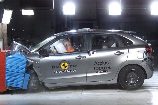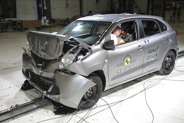 Alapmodellként kifejezetten hiányos, biztonsági csomagjával sem teljes a Suzuki Baleno balesetelkerülő-rendszereinek sora, védelme sem tökéletes (Fotó: Euro NCAP)