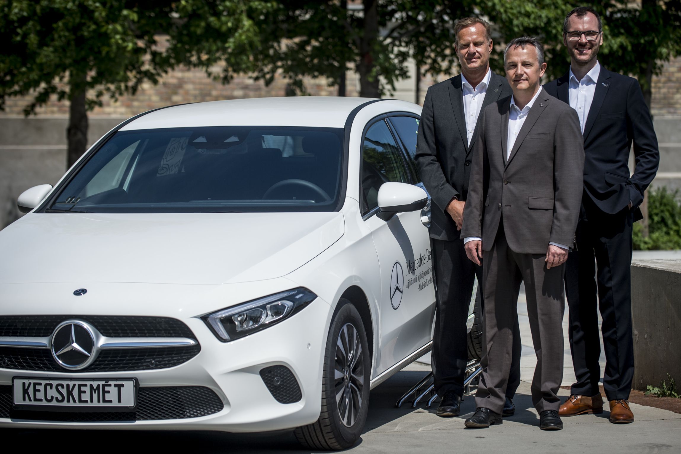 Christian Wolff, a Mercedes-Benz Manufacturing Hungary Kft. ügyvezető igazgatója adta át az adományautót Szabóné Kis Évának, az Együtt a Kecskeméti Családokért Alapítvány vezetőjének. A képen (balról jobbra) Christian Wolff, Szabóné Kis Éva, Josip Niksic (a Mercedes-Benz Manufacturing Hungary Kft. pénzügyi igazgatója) és Jörg Schmidt a a Mercedes-Benz Hungária Kft. ügyvezető igazgatója