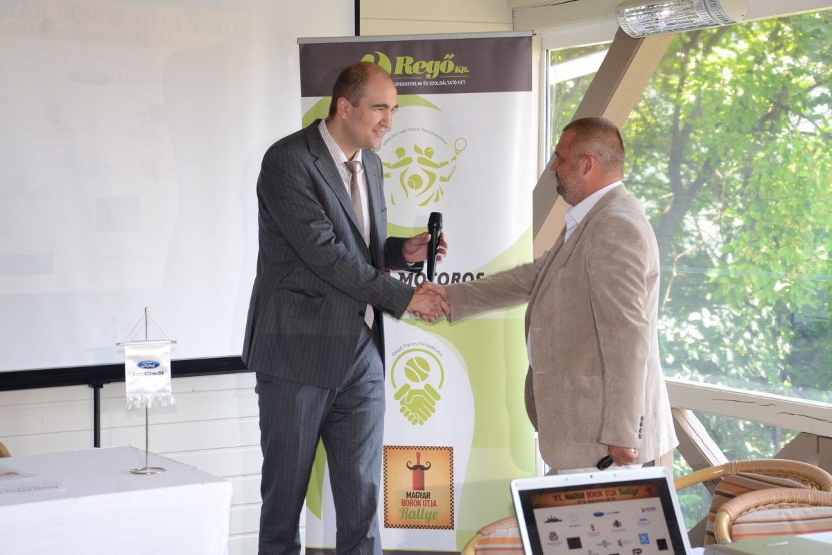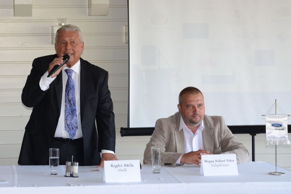 Regőci Attila, a verseny alapítója és egyben elnöke, valamint Megay Róbert Péter, a rendezvényt szervező Regő Kft. tulajdonosa a jubileumi futam sajtótájékoztatóján