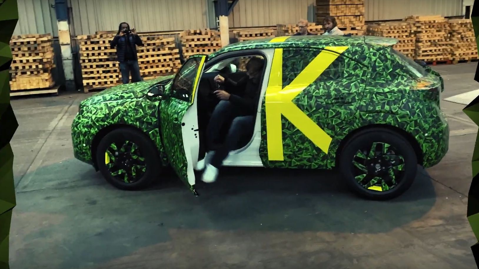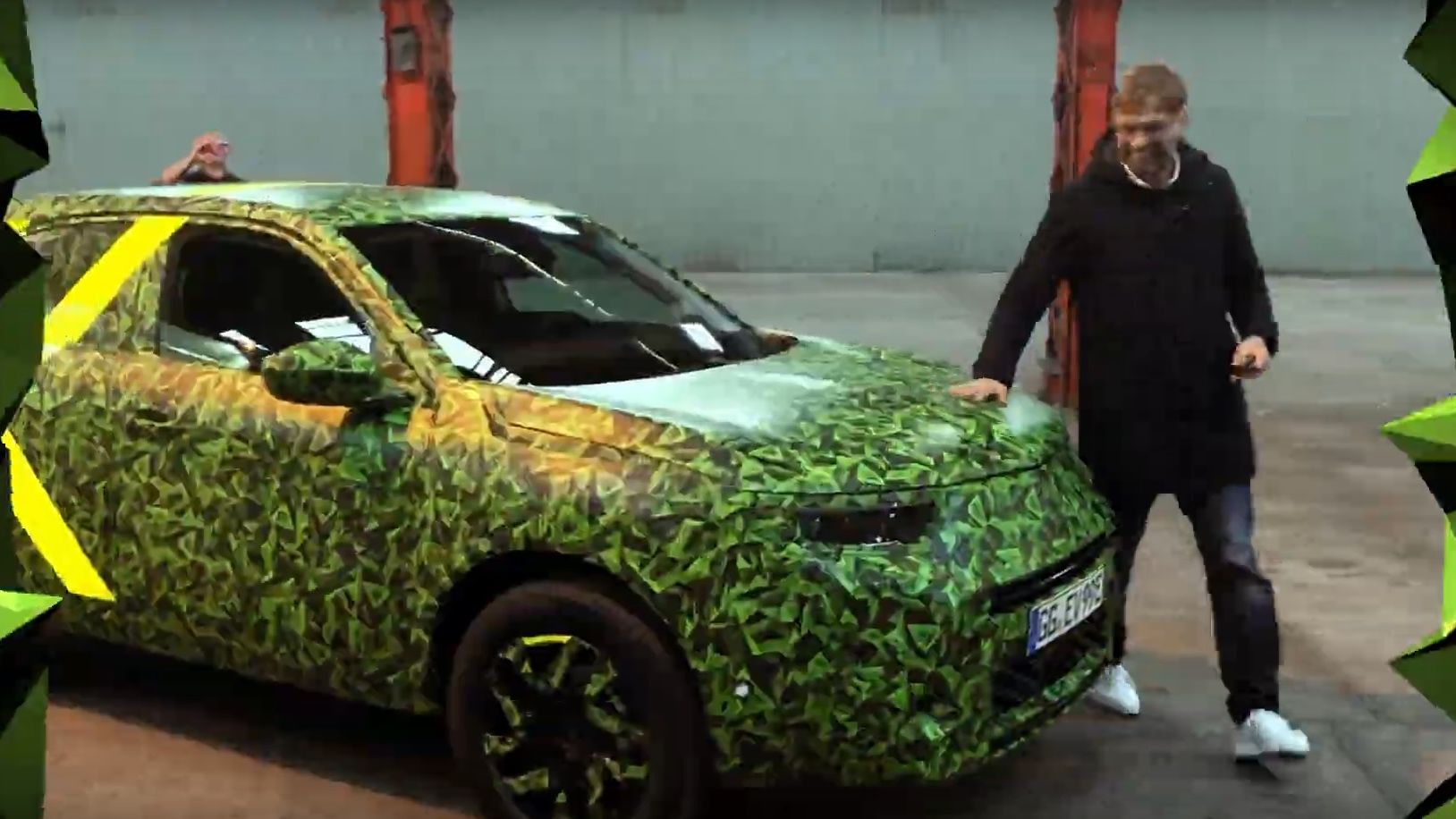 Bár még mindig álcázott a jármű, emberek között már van viszonyítási alapunk a méretét illetően - nos, vagy Klopp úr nagyon magas, vagy a Mokka lesz elég apró (vagy mindkettő). Ettől függetlenül viszont láthatjuk kiszállni is a sofőrülésből, és láthatólag nem ütközik semmilyen akadályba, ez alapján a helykínálattal nagy gond nem lehet majd. Betekintést nyerhetünk a frontrész dizájnjába is, bár erősen takart még a lökhárító, a fényszórókról már megállapíthatjuk, hogy vékonyabbak lesznek az előző Mokkáénál.