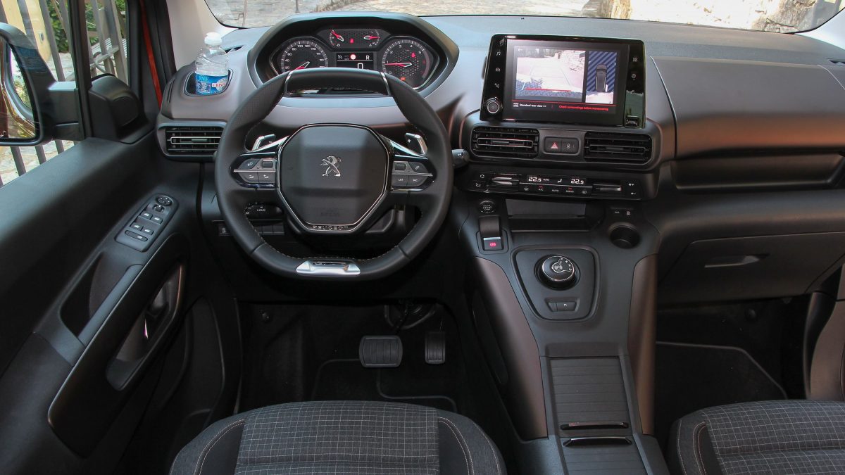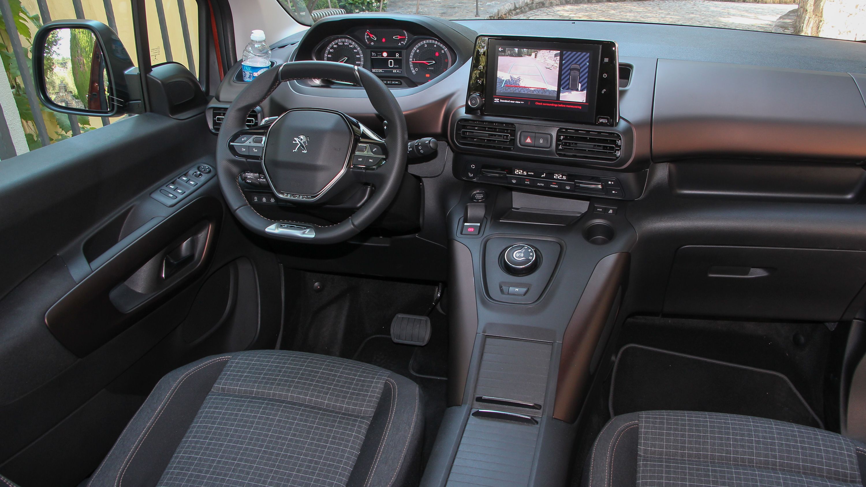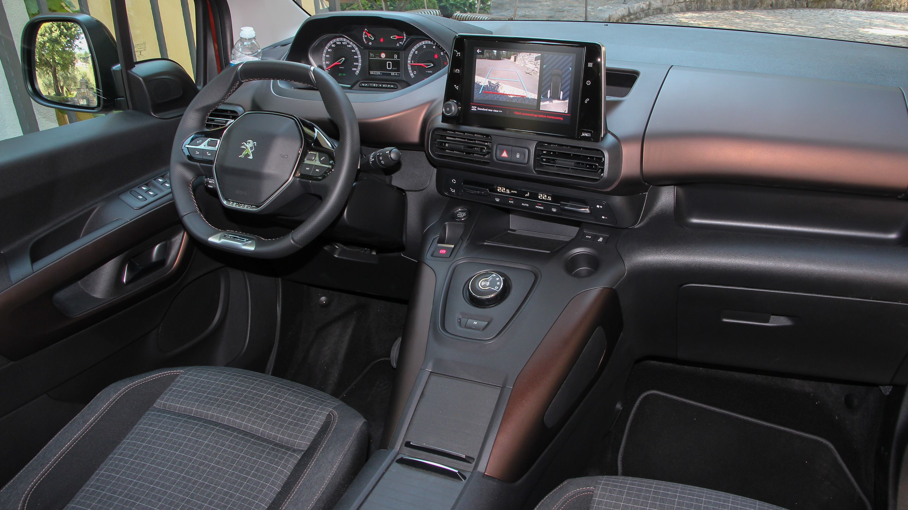 A színház viszont tökéletes. A beltérben talán a legfőbb eltérés, hogy a Peugeot i-Cokcpit műszerfalat kap, ami itt ugyan hagyományos műszeres, nem digitális órás, a 308-nál látott, ellenkező irányba járó órák helyett szokványos kialakítással. Amúgy itt is a tetőbe kerül az utasoldali légzsák, azaz megmaradt a műszerfal tetején a méretes és hűthető tároló. Padlórekesz, szélvédő feletti polc és a Zenith tető esetén annak középen végighúzódó, valamint hátulról lehajtható tároló itt is van, de a kárpitok természetesen különböznek, valamint a Rifterből van sportos GT Line kivitel is.