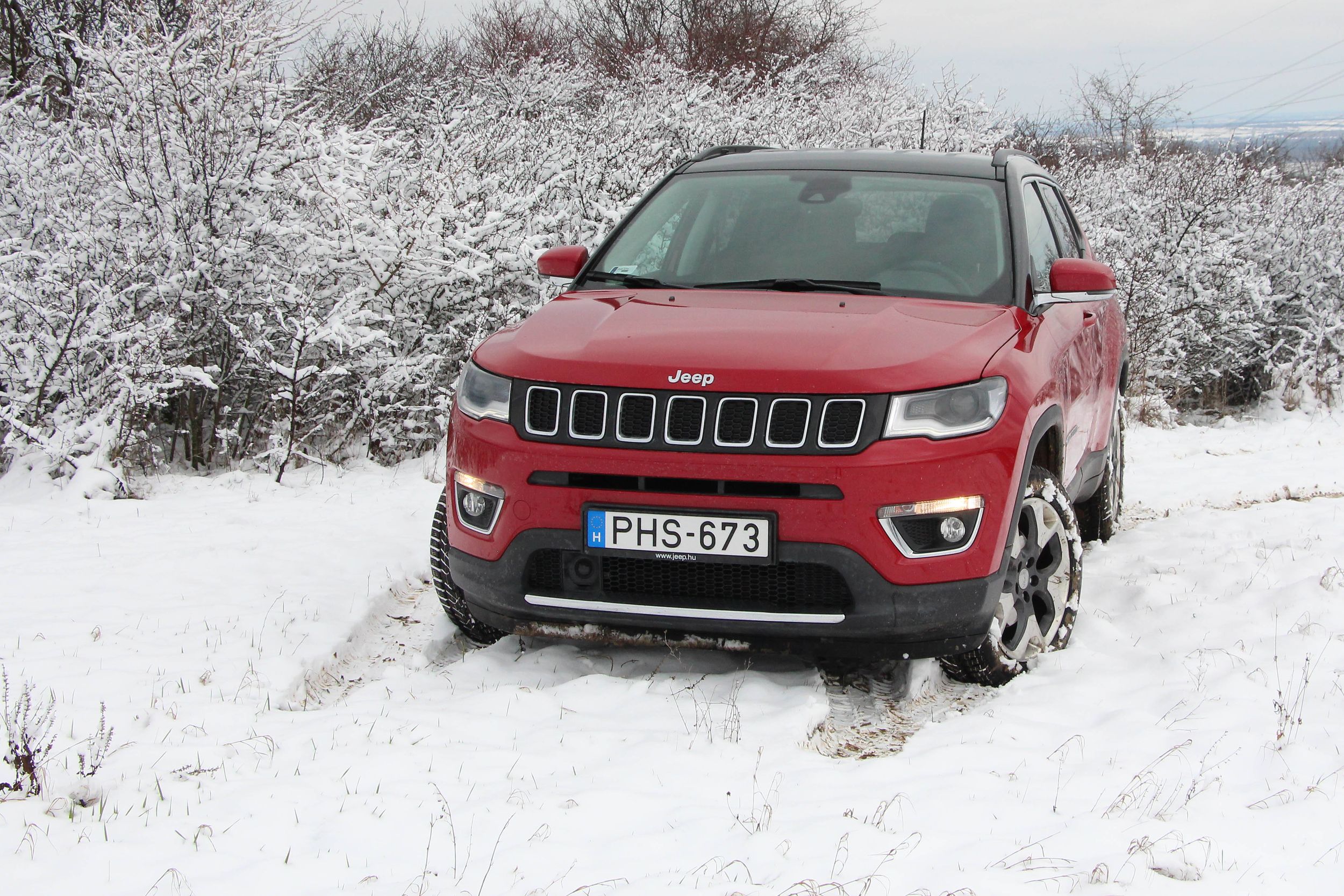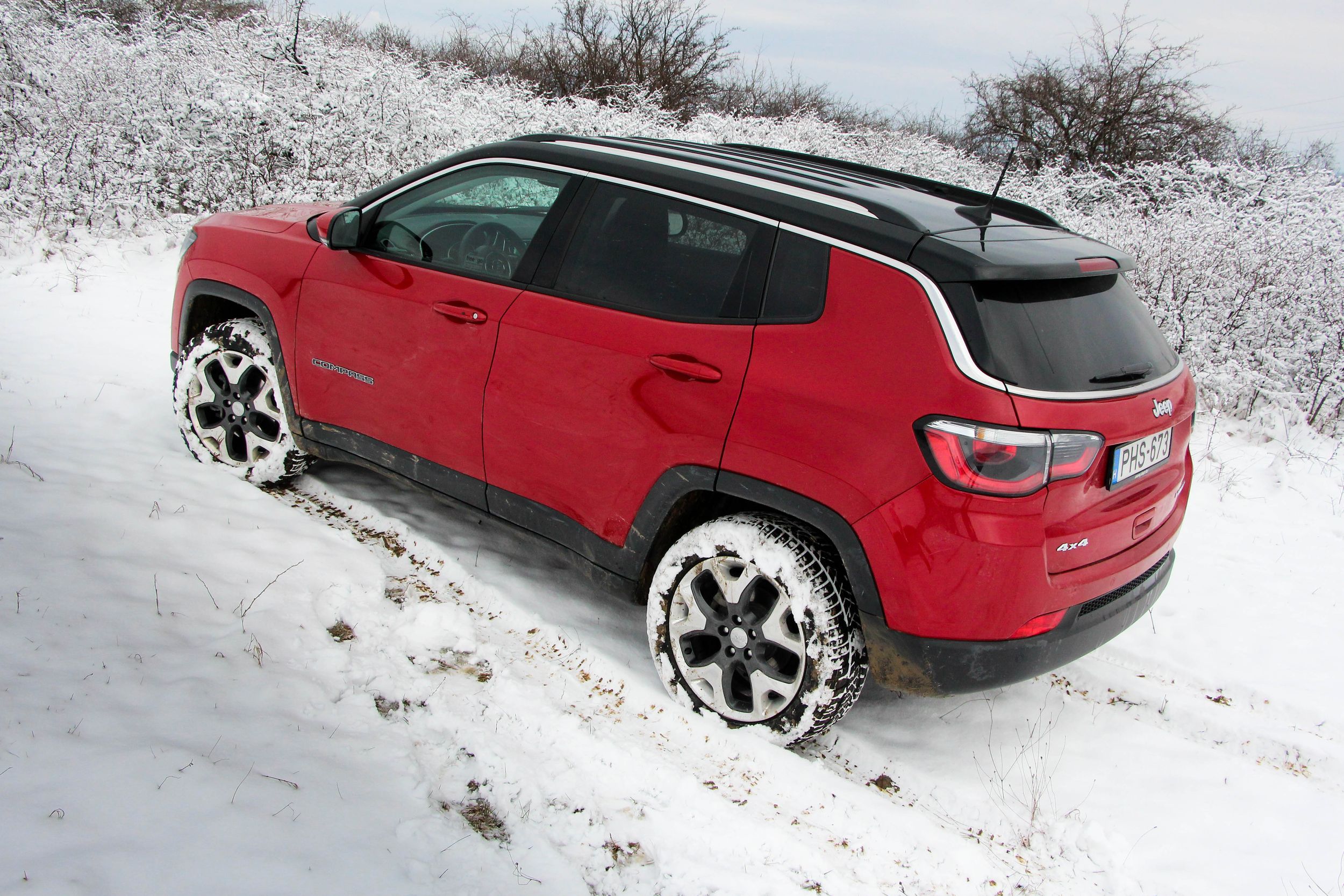 A futómű feszes, ez jótékony hatást gyakorol a kanyartulajdonságokra, viszont az úthibákra érzékennyé tesz az autót. Terepen is magabiztosan mozog, elöl 16,8 fok a terepszög, hátul pedig 31,7 fokos. Ehhez 22,9 fokos rámpaszög, 20,8 centis hasmagasság és 40 centis gázlómagasság társul. Főleg sarat és tócsákat rejtő, hóval betakart földutakon próbálgattam, valamint megcéloztam vele olyan meredek emelkedőket, amelyeken nem voltam biztos, hogy sikerül feljutni a nagy márciusi havazás után. A Compass azonban könnyedén vette az akadályokat. Ezekkel a rövid terepjárásokkal, jelentős mennyiségű városi autózással és némi autópályás „suhanással” az átlagfogyasztás 7,9 literre jött ki, ami végül is elfogadható egy ekkora tömegű és magas építésű SUV-tól. Bár jobban örültem volna, ha kevesebb gázolaj folyik le a torkán, hiszen a gyári adat a vegyes fogyasztásra 5,7 liter.