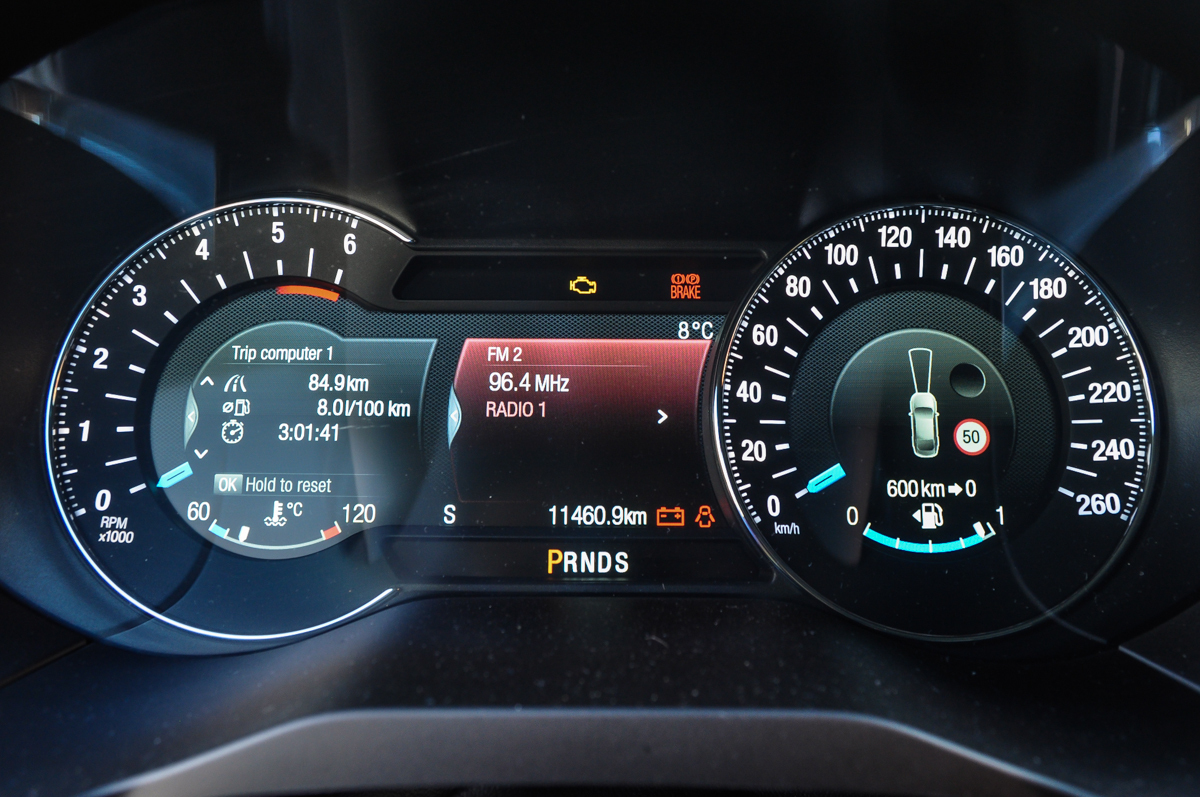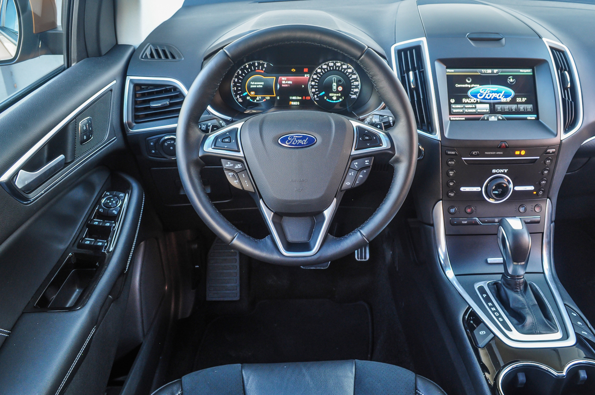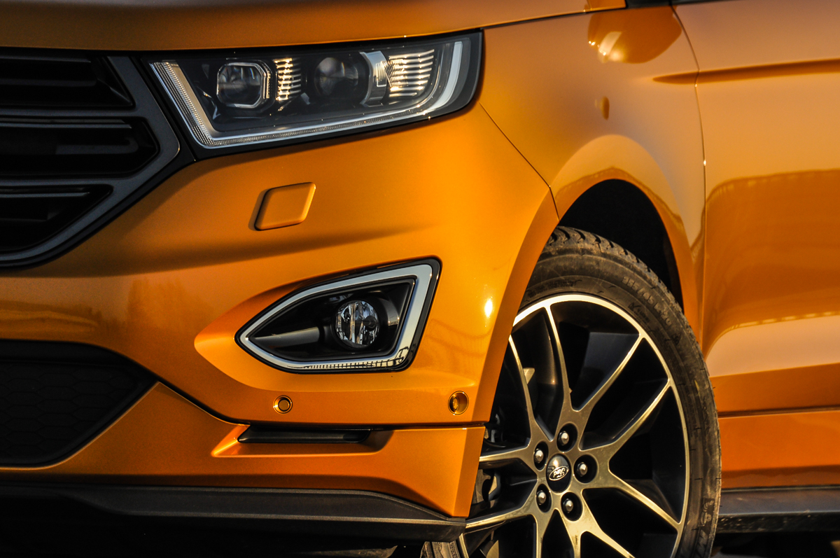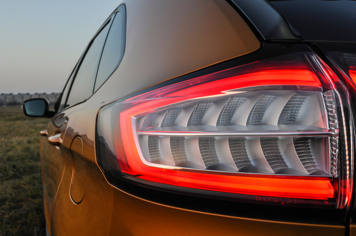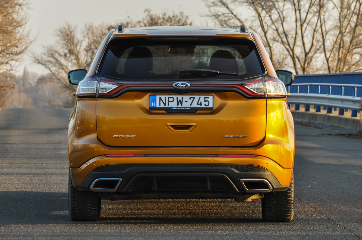 Egy motor, két teljesítmény. Még reggeli hidegindításkor sem halljuk a traktort, hiszen aktív zajszűrő-rendszert kapott, ami a zajjal ellentétes frekvenciákat enged azok tompítására. A csúnyán nagy súly ellenére, vagy talán pont a nagyszerű dízel miatt, nem nagy az étvágya sem. Pontosabban annyi, amekkorát egy ekkora autóban várnánk. Városban hosszútávon 7 liter/100 km-es átlag alá nem nagyon lehetett tolni, autópályán, a távolságtartó tempomatot használva 8 liter körül alakult az átlag. A stop-start jelen esetben nem sok segítséget nyújt a fogyasztáscsökkentéshez, viszont ügyes: reggel és komoly igénybevétel után sem állítja le a motort. A nagy tesztátlag több mint 700 km-re 7,9 liter lett, ám ebben nem kevés csapatás és sietés volt. Egyébként a hazai kínálatban csupán egy motorral, kétféle változatban rendelhető az Edge. Egyik az általunk tesztelt PowerShift 6 sebességes automataváltós, ami 210 lóerő, a másik már csak 185 lóerős és szintén 6 sebességes, de manuális váltóval kapható.