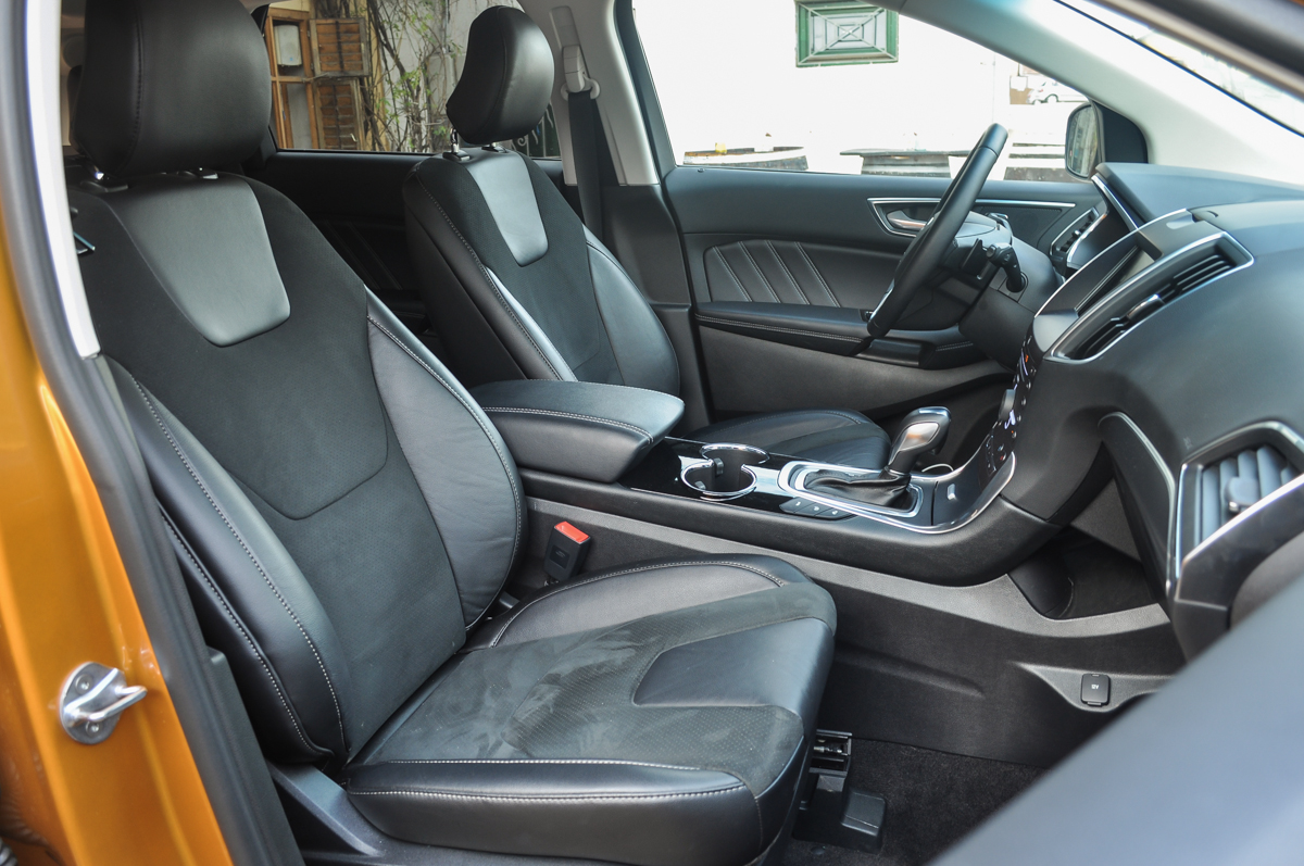 Csupán kétféle motorral kapható az új Edge, mi az erősebbikkel, Sport felszereltségben próbáltuk. Ilyen kényelmes ülés pedig nem létezik!