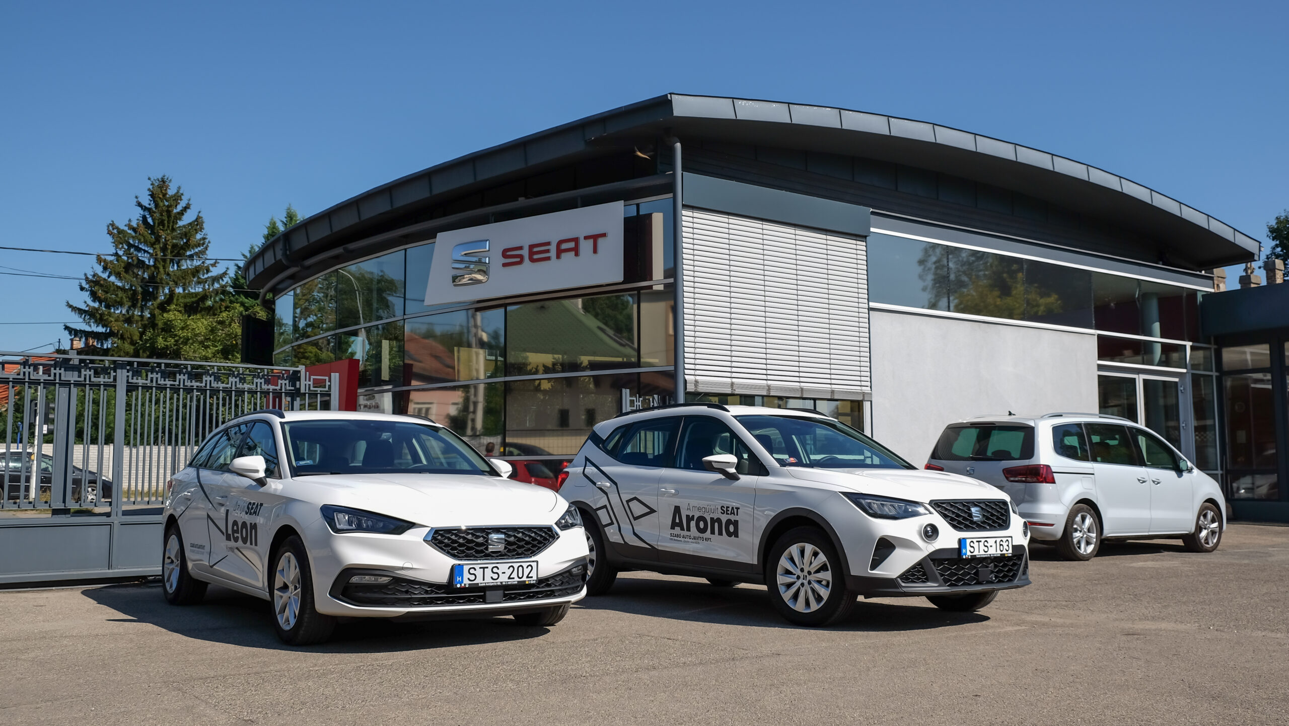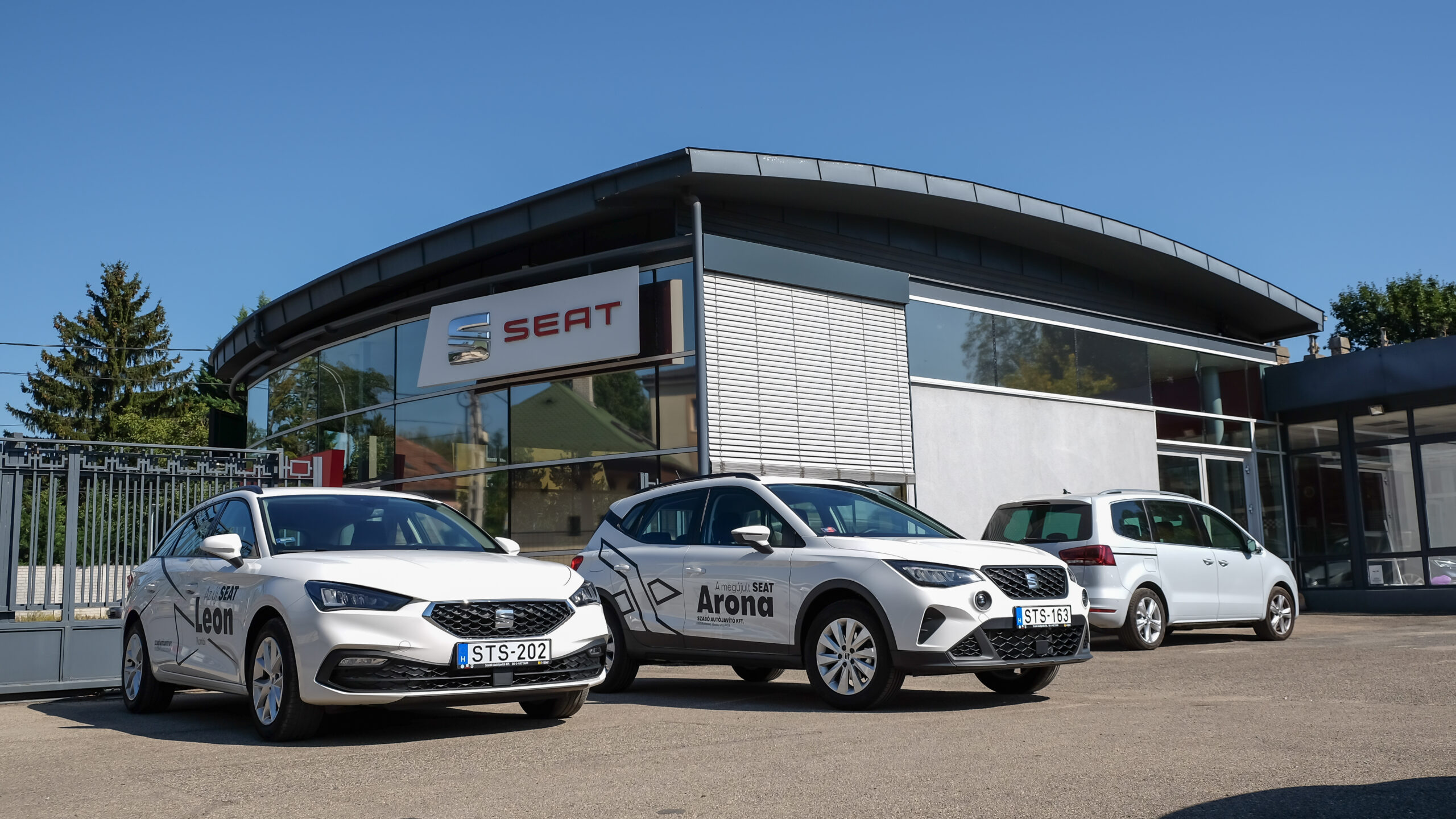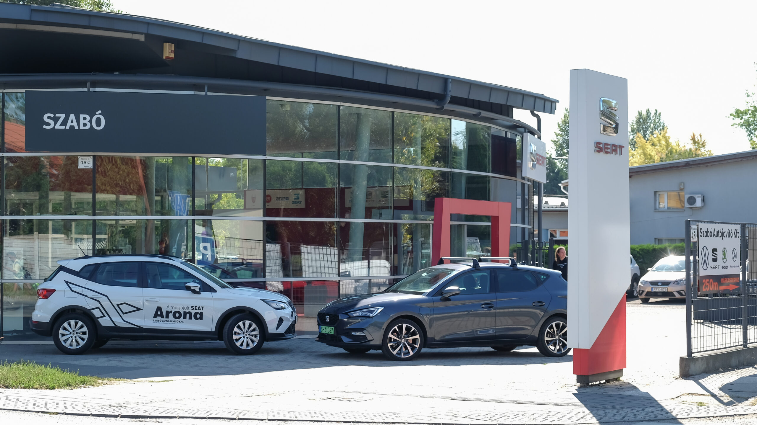 Kereken 30 éve kapta meg a márkakereskedői jogot a SEAT Szabó, ma ők az egyetlen kizárólag SEAT márkakereskedők, a leginkább eltökélt SEAT specialisták - a szalon előtt épp a friss Arona és az aktuális Leon