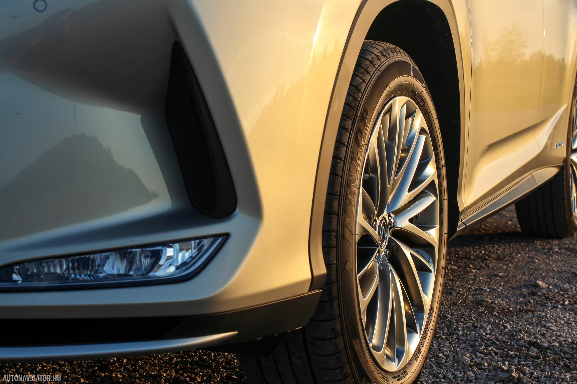 Hajtásláncból az RX felénk egyet ismer: 3,5 literes, Atkinson ciklusú V6-os alapú hibridet. A benzinmotor itt teljesítmény helyett a kedvezőbb fogyasztásra hangolt, a feltöltő nélküli benzines önmaga 262 lóerőt és 335 Nm nyomatékot ad, ám az e-CVT fokozatmentes osztóművel már elöl is csatlakozik hozzá egy 167 lóerős, 335 Nm nyomatékú villanymotor, továbbá a hátsó kerekekhez is került egy 68 lóerős, 139 Nm nyomatékú. Megvan tehát a fizikai kapcsolat nélküli e-four összkerékhajtás, nem mellesleg az ESP az ívbelső kerekek fékezésével javítja a kanyarjellemzőket, így az aktív lengéscsillapítással (és a
