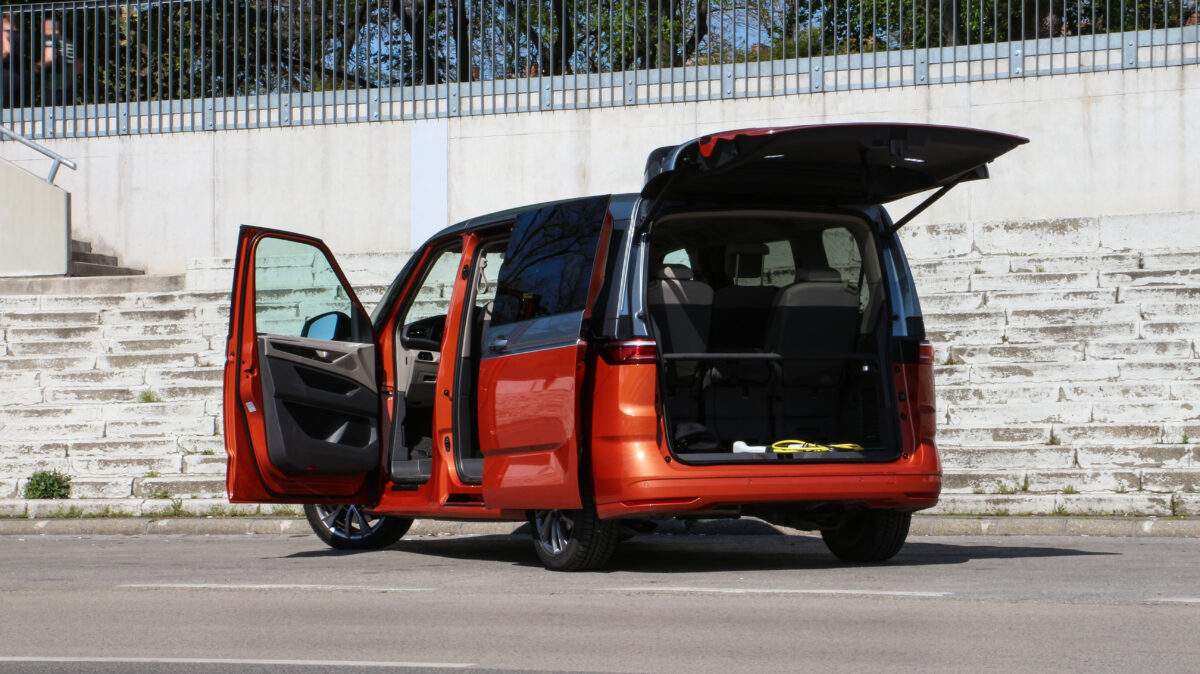 Hátul a kényelmes, jól kombinálható, és 30 kg alatti tömegüket figyelembe véve akár pillanatok alatt kikapható ülések is igazi kisbusz sajátosságokkal rendelkeznek, ám mindeközben akár fűthetők is lehetnek, ehhez kiszedéskor és visszarakáskor sem kell kábelekkel szórakozni, az áramot a sínből kapják. Ebben a konkrét autóban ez sem volt benne, ám érdemes megjegyezni, hogy a kézzel behúzandó tolóajtók azért soft-close funkciót így is kaptak. Ugyanúgy felszereltségtől függetlenül remek a középső sínpáron az utastér teljes hosszában mozgatható könyöklő-kisasztal kombó, sajnos egyes szinteken ez is feláras.