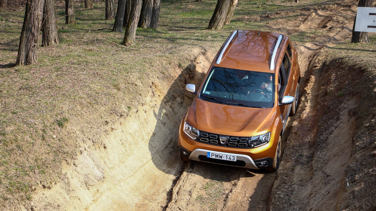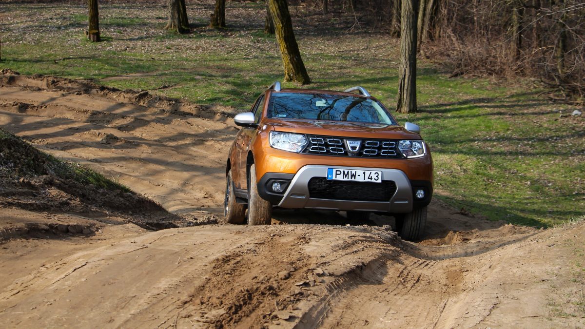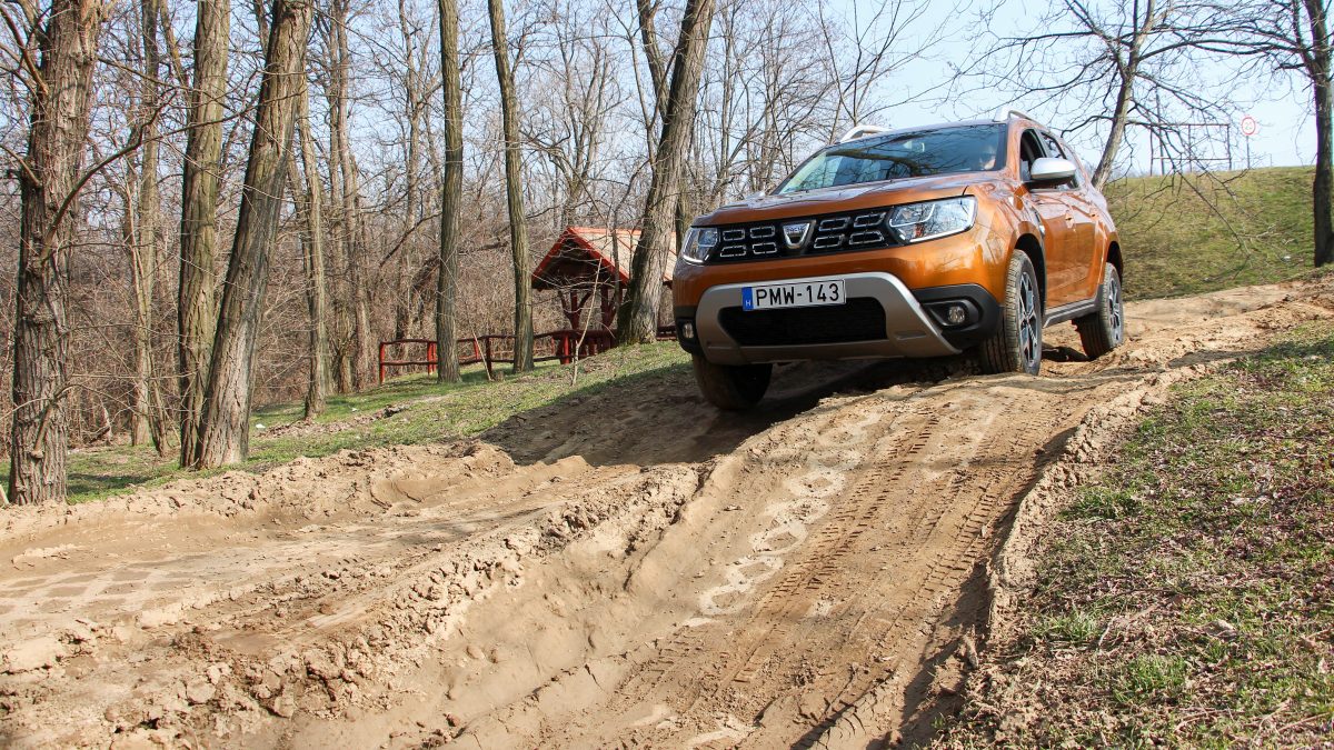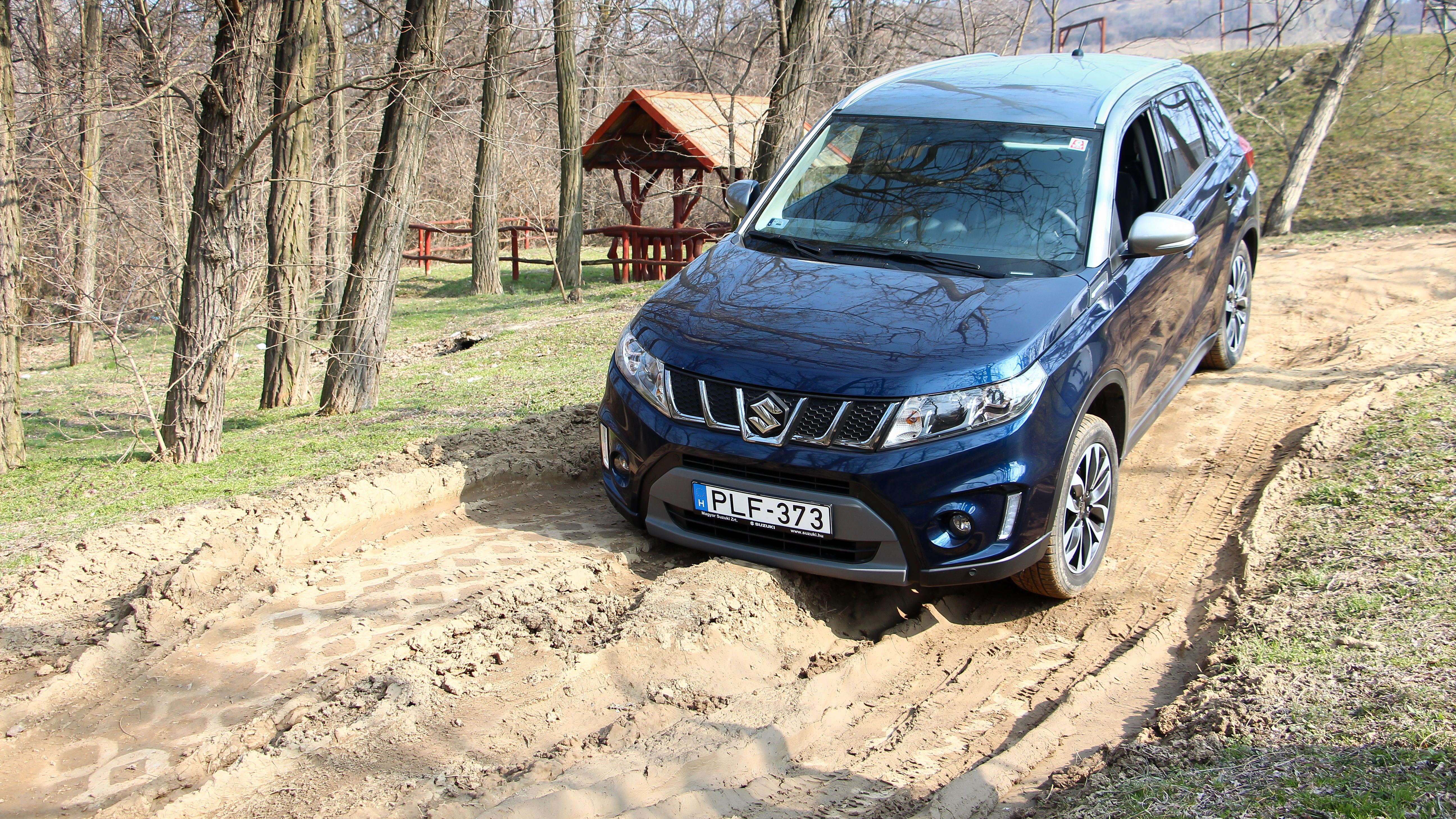 Nem mellesleg a Duster közvetlen befecskendezésű turbómotorja a mintegy harmadával nagyobb, 205 Nm nyomatékával - egyenes úton - jobb gyorsulást adó, ám amint van néhány kanyar, a Vitara szintén élénk, de jellegéhez hűen alacsony fordulaton érezhetően nyomatékszegényebb motorjával se fogunk lemaradni. Terepen azonban a Duster nem csupán 2,5 centivel nagyobb, 21 centis hasmagasságával, hanem terepjárósabb, jobb terepszögeket adó lökhárítóival és szintén terepjárósabb, rövidebb egyes fokozatával is sokkalta potensebb. Míg a Vitarával nagyon hamar juthatunk olyan helyre, ahol már óvatoskodni kell, hogy nehogy leérjen az orra, vagy az ugyan műanyaggal óvott, de így is sérülékeny küszöbe, a Dusterrel bátrabban lehet haladni. Mellesleg a Dusterrel rövidebb egyes fokozata és alacsony fordulaton erősebb motorja miatt óvatoskodni is jobban lehet, azt kevésbé kell pörgetni, illetve esetében sokkalta kevesebbszer a kuplungot csúsztatni. Így aztán terepen egyértelműen a Duster a győztes. Még úgy is, hogy esetében a Suzukiéval egyező automatikus vezérlésű, de csupán front vagy fix első-hátsó osztást adó összkerékhajtása nagyjából független a beállítástól, ha szükséges, mindenképp hajt hátra. A Dusterben hasonlóan értelmetlennek tűnt az ESP kikapcsolhatósága is, ami persze inkább jó és bolondbiztos megoldás: leátlózásnál az elforgó kereket fékkel megfogva ki tudta magát rugdosni.