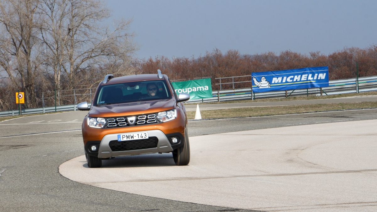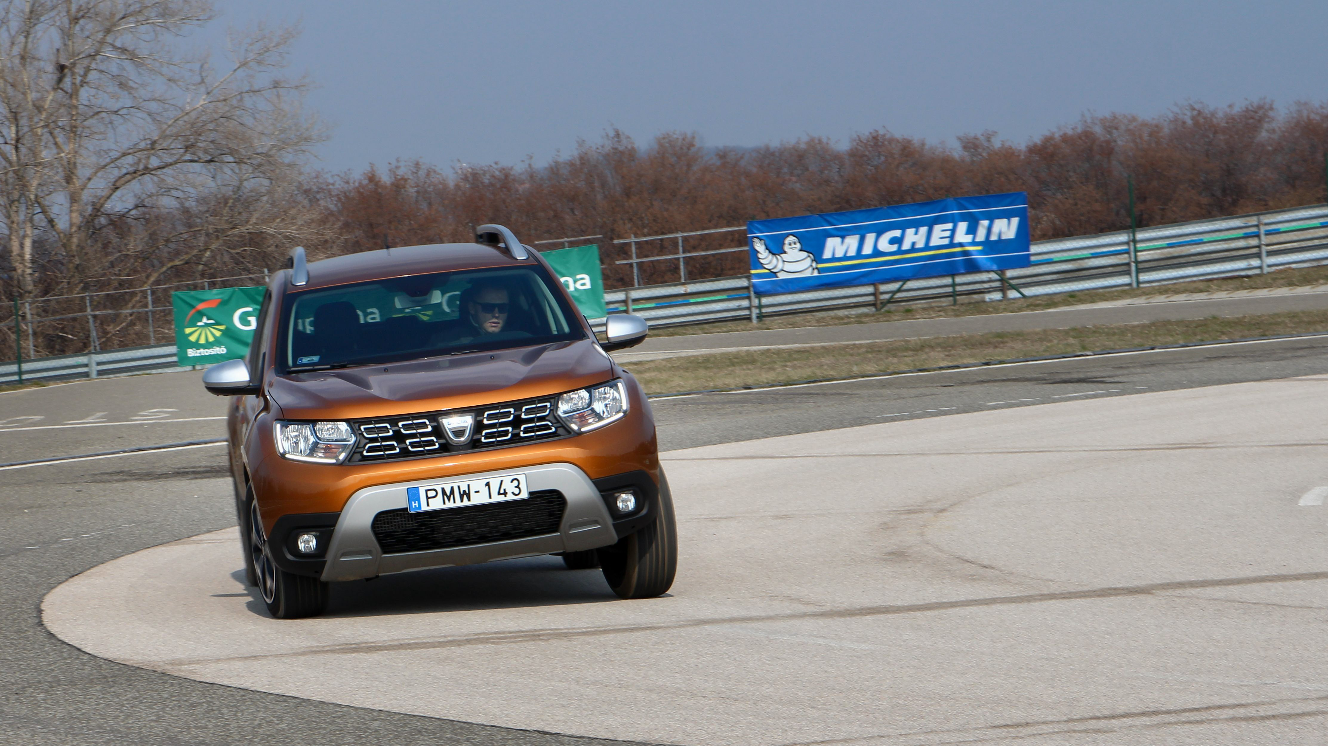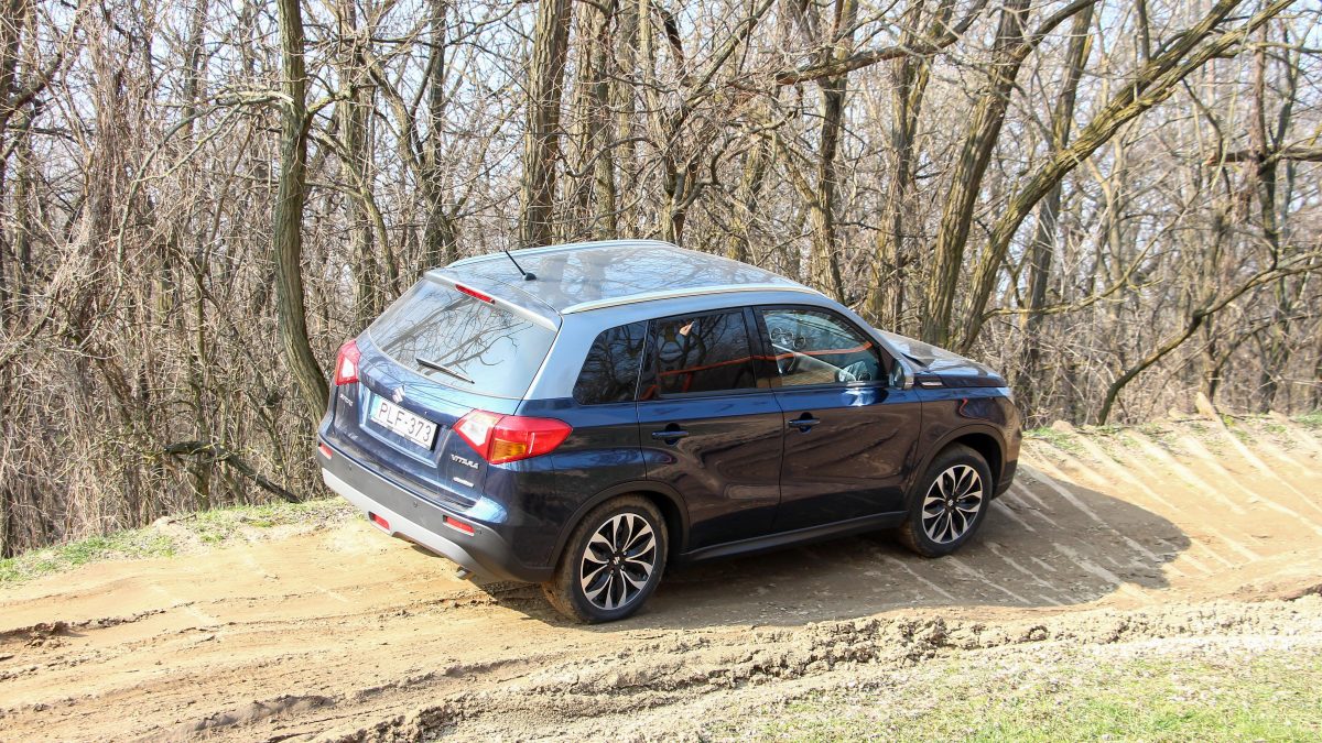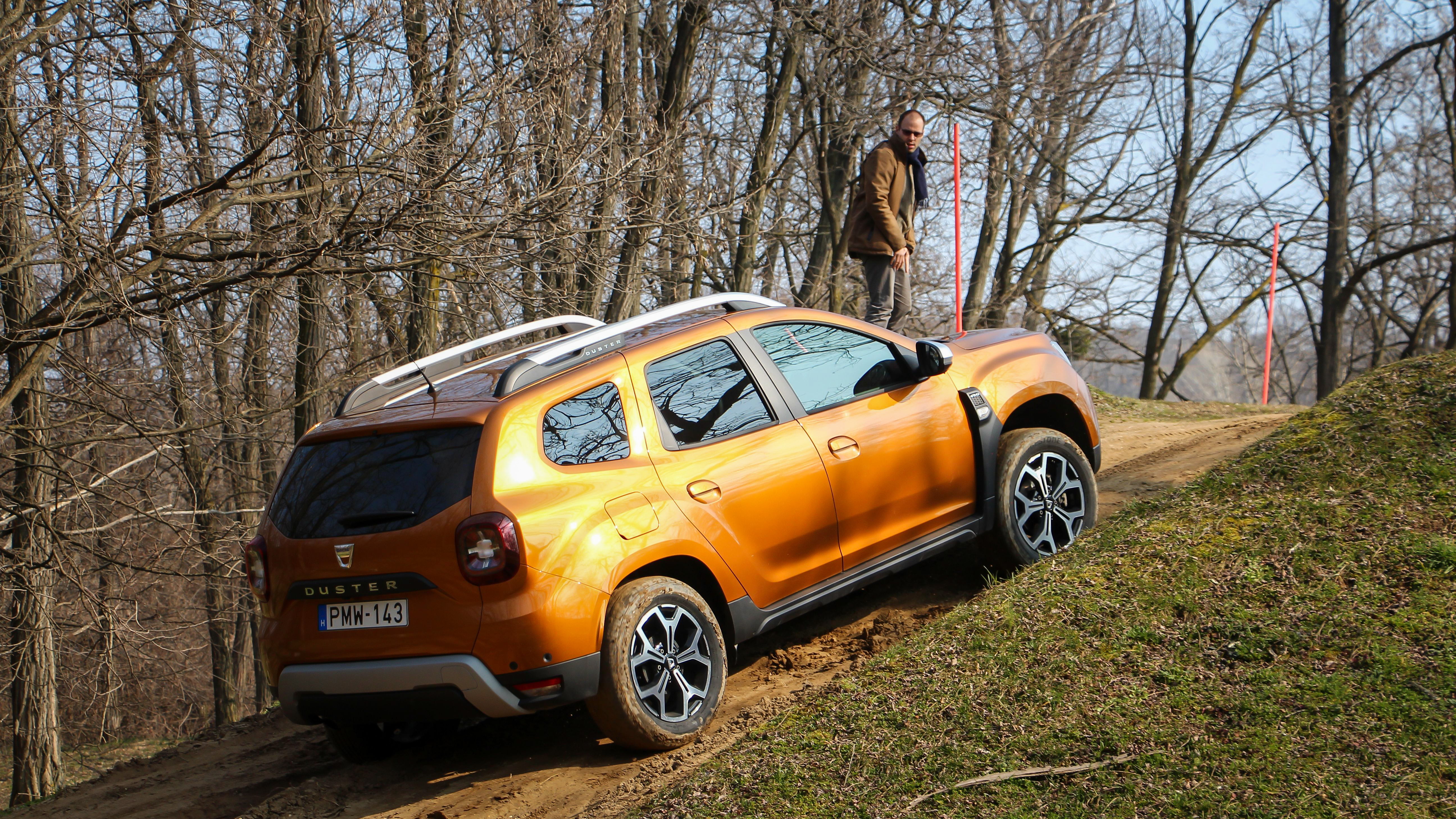 Nem mellesleg a Duster közvetlen befecskendezésű turbómotorja a mintegy harmadával nagyobb, 205 Nm nyomatékával - egyenes úton - jobb gyorsulást adó, ám amint van néhány kanyar, a Vitara szintén élénk, de jellegéhez hűen alacsony fordulaton érezhetően nyomatékszegényebb motorjával se fogunk lemaradni. Terepen azonban a Duster nem csupán 2,5 centivel nagyobb, 21 centis hasmagasságával, hanem terepjárósabb, jobb terepszögeket adó lökhárítóival és szintén terepjárósabb, rövidebb egyes fokozatával is sokkalta potensebb. Míg a Vitarával nagyon hamar juthatunk olyan helyre, ahol már óvatoskodni kell, hogy nehogy leérjen az orra, vagy az ugyan műanyaggal óvott, de így is sérülékeny küszöbe, a Dusterrel bátrabban lehet haladni. Mellesleg a Dusterrel rövidebb egyes fokozata és alacsony fordulaton erősebb motorja miatt óvatoskodni is jobban lehet, azt kevésbé kell pörgetni, illetve esetében sokkalta kevesebbszer a kuplungot csúsztatni. Így aztán terepen egyértelműen a Duster a győztes. Még úgy is, hogy esetében a Suzukiéval egyező automatikus vezérlésű, de csupán front vagy fix első-hátsó osztást adó összkerékhajtása nagyjából független a beállítástól, ha szükséges, mindenképp hajt hátra. A Dusterben hasonlóan értelmetlennek tűnt az ESP kikapcsolhatósága is, ami persze inkább jó és bolondbiztos megoldás: leátlózásnál az elforgó kereket fékkel megfogva ki tudta magát rugdosni.