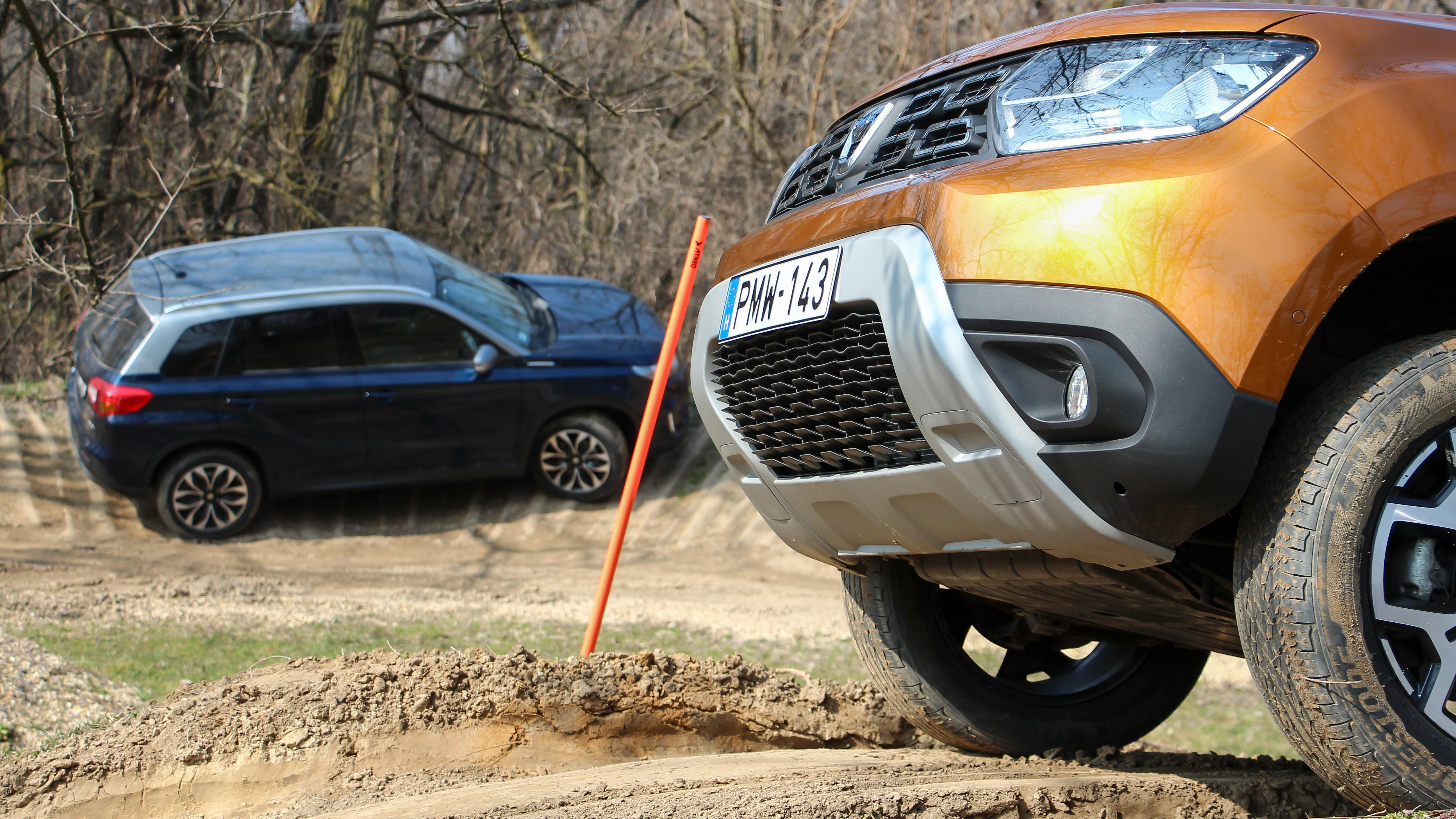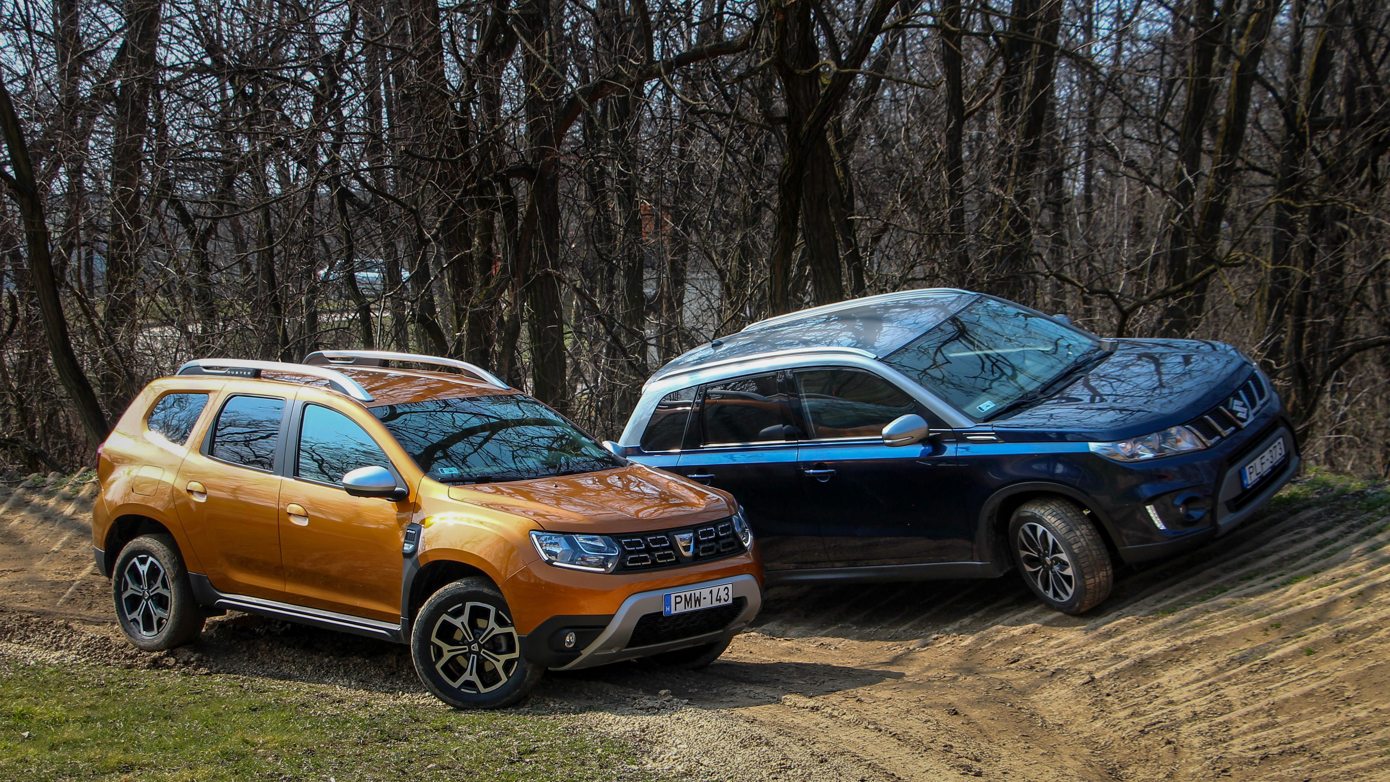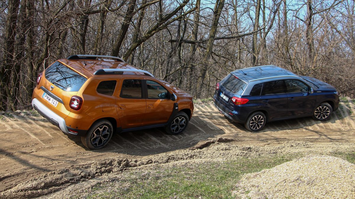 A vevők két kedvelt modelljét, a Suzuki Vitarát és a Dacia Dustert vetettük össze, benzinesként és összkerékhajtással, terepen is. A két autó közül nem egyszerű választani!