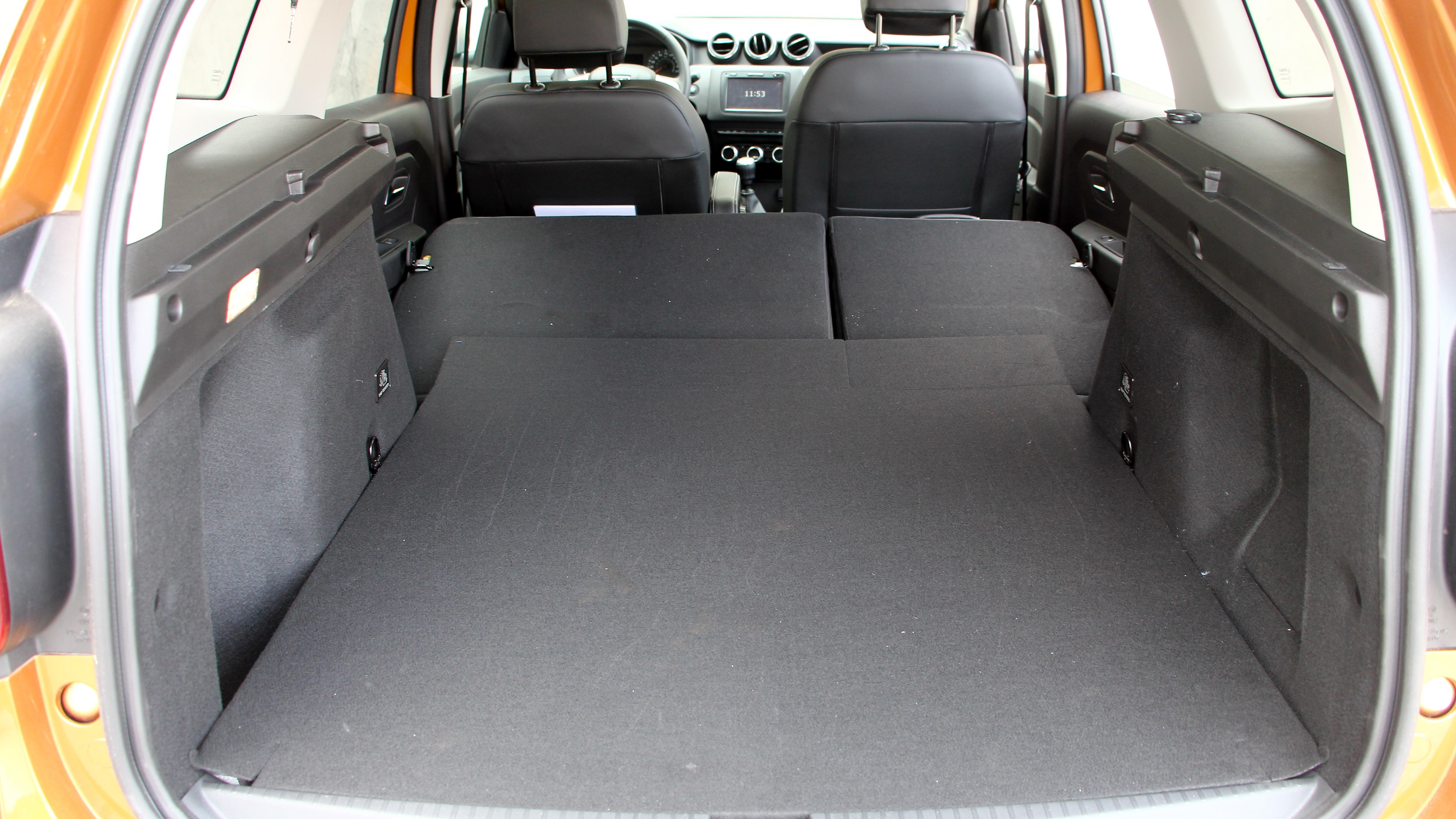 A méreteket talán már mindenki ismeri: a Duster közel 17 centivel hosszabb, kívülről 2,9 centivel szélesebb és 7,2 centivel magasabb, tengelytávja 17,6 centivel nagyobb, de csomagtere is közel 100 (egészen pontosan 92) literrel nagyobb, alaphelyzetben. Bővítve, ami mindkét modellnél csupán támladöntést, de úgy is sík padlós teret jelent, a Duster másfélszeres értéket ad, de persze meg kell jegyezni, hogy a gyártók által adott adatok szerint, ami alighanem eltérő szabvány szerinti. Az viszont már a saját mérésünk, hogy a Duster csomagtere alapból és üléshajtással is hosszabb, a kalaptartó alatt kevéssel magasabb. Ugyanakkor az is igaz, hogy a Dusterbe magasabbra kell emelni a csomagokat.