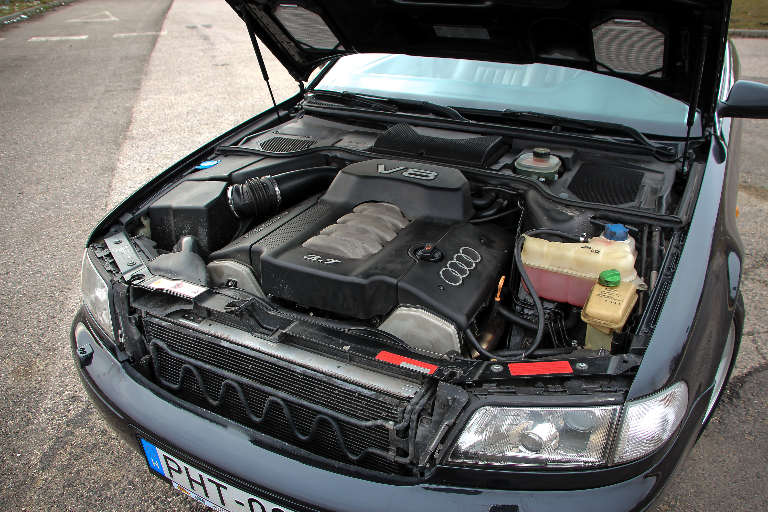 Az első generációs A8 többféle motorral is készült, volt csak elsőkerekes verzió is 2,8-as V6-os benzinessel. V8-ból volt kettő is, ez a kisebbik, a 3,7 literes még elsőkerékhajtással is elérhető volt, de a próbált példány quattro hajtásos. A 4,2-es benzines a legnépszerűbb, az S8 meg egy álom, az igazán bevállalósak – feneketlen pénztárcások – persze a 6,0 literes W12-re buknak. Dízelmotorral még könnyed is tudott lenni, a 2,5-ös V6-ossal alig nyomott többet 1600 kilónál, valójában a 3,7-essel sem tűnik túl soknak az 1725 kiló.