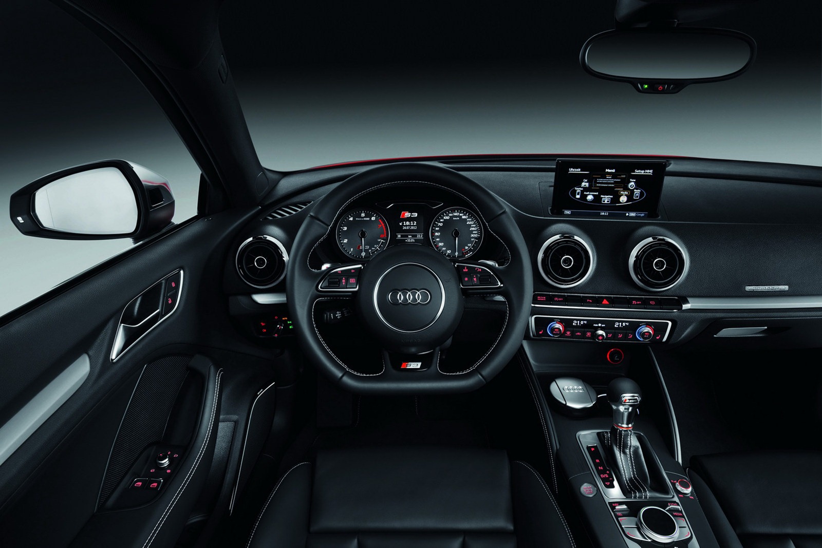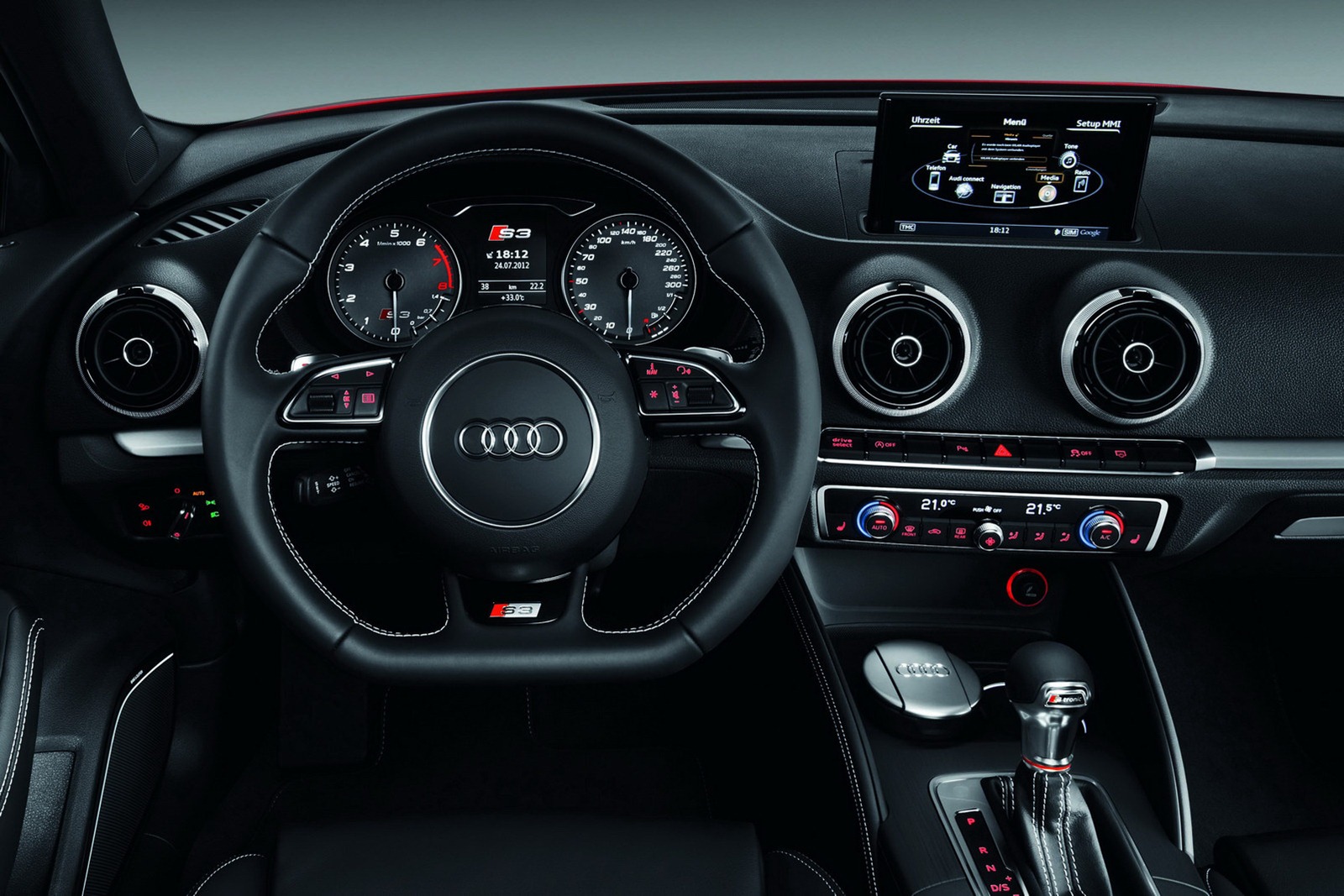 Integrált fejtámlás sportülés, egyedi műszerfal turbónyomásméréssel (1,4 barig), rengeteg logó, prémiumosan audis összkép. S Tronic automatával gyorsabb és takarékosabb is az S3