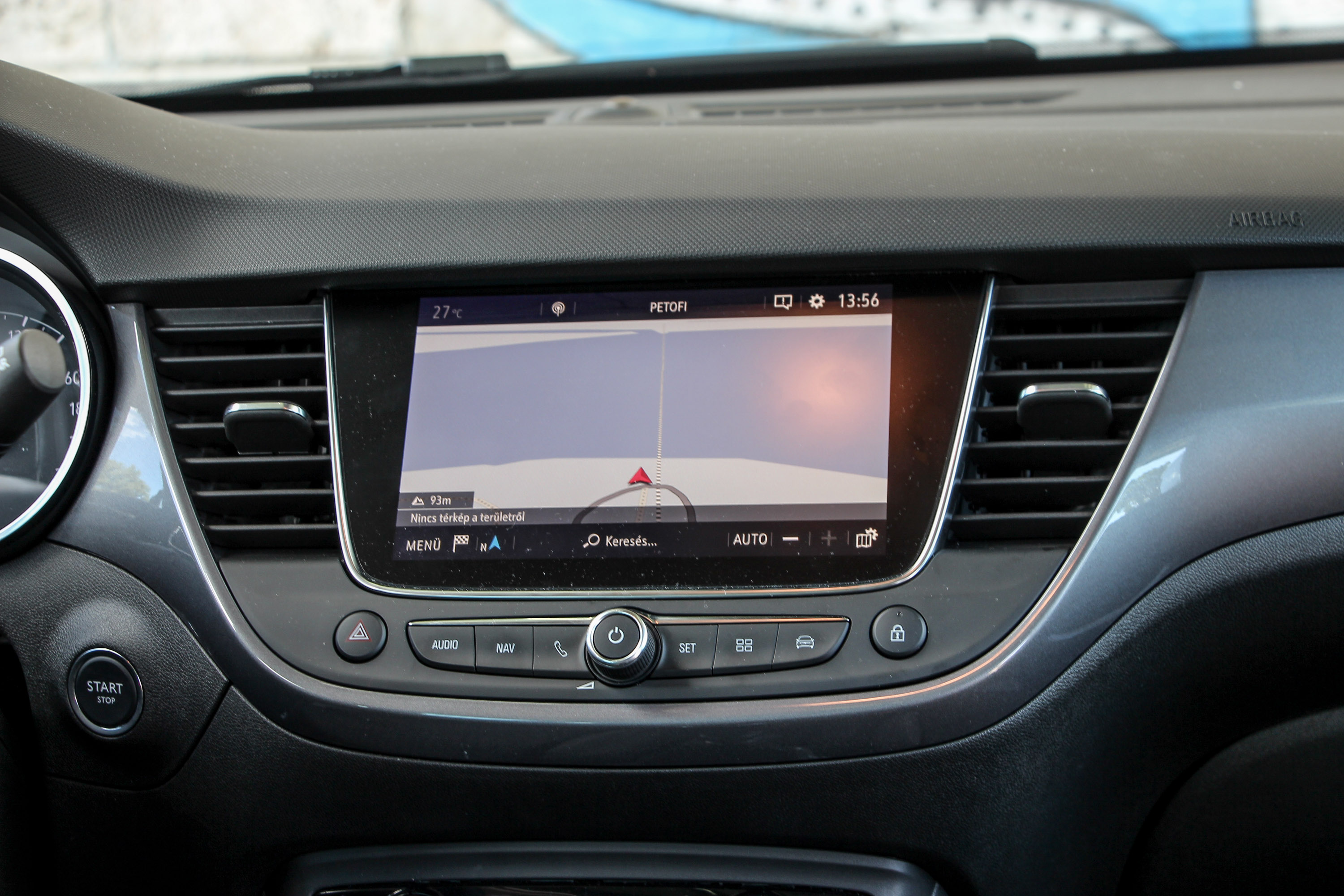 Kisautós. Nem csak a padlólemez, a futómű is kisautós. Nagy a beltér, öten bőven elférnek benne és a 410 literes csomagtérbe is bőségesen pakolhatunk, de már három, vagy négy embertől is megőrül a futómű. Egyenesben nincs gond, de kanyarban már bizonytalan, ha még úthibát is elkapunk, amire hazánkban elég nagy az esély, ugyanazt fogjuk érezni, mint a Peugeot 3008-nál, hogy egyszerűen összerogyik. Csöndes egyébként, a zajkomfort elég jó, a meleg kint tartása már kevésbé megy neki ilyen jól. Igaz, a tesztautó üvegtetős kivitel, viszont az Opelnél nincs, nem is volt és nem is lesz nyitható panorámatető – ezen mondjuk meglepődtem a Grandland X bemutatóján, hogy még azon se lesz, holott a 3008-ason nyitható. Egy elhúzható roló van csak rajta, de az is fényáteresztő, így teljesen sosem sötétíthetünk be, ezzel a tűző napnak egyszerű dolga van, hogy felforrósítsa az utasteret. A klíma egyébként acélos, hamar képes lehűteni az utasteret.