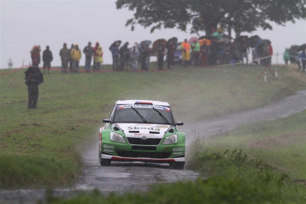 Csakhogy Kopecky a 14. szakaszon a vizes úton megforgott. Ez után autója furcsán viselkedett és a cseh versenyző addig figyelte, hogy defektet kapott-e, míg nem sokkal a megforgás után lecsúszott az útról. A Skoda Fabia S2000-es sértetlen maradt, de felült egy buckára, ahonnan nem tudták leszedni, és a verseny feladására kényszerült.