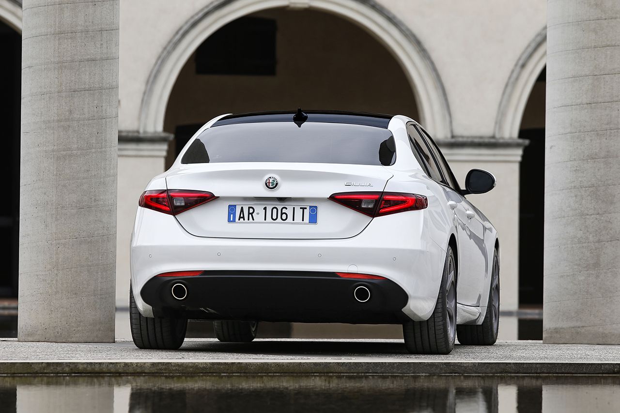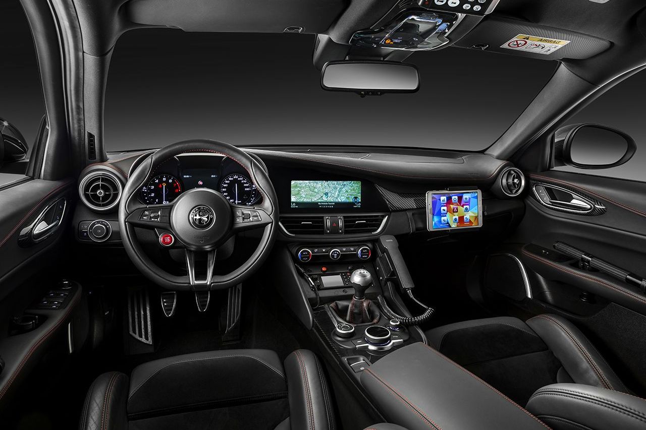 A Giulia a cégautósok körében kedvelt, már legalább menedzseri, de inkább főnöki szintnek számító felső-középkategóriába érkezett. Az elődnek tekinthető 159-nél 2 centivel szerényebb, ma a kategóriában már kompaktnak számító 4639 mm-es hosszúsággal és a 159-énél 12 centivel hosszabb, 2,82 méteres tengelytávval. Ez tágas hátsó lábteret sejtet, a fotók szerint valóban nagyot kapunk, természetesen jelentős, valódi kardánalagúttal, azon légbeömlőkkel. A beltéri anyagokból úgy tűnik, hogy az Alfa ismét beszállhat a prémiumszegmensbe, persze ehhez jó lenne látni, tapintani, érezni. Persze az Alfa nem a tapipróbával, hanem a Giulia vezethetőségével szeretne nyerni.