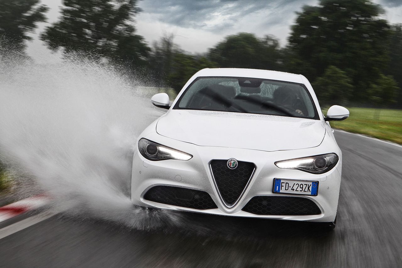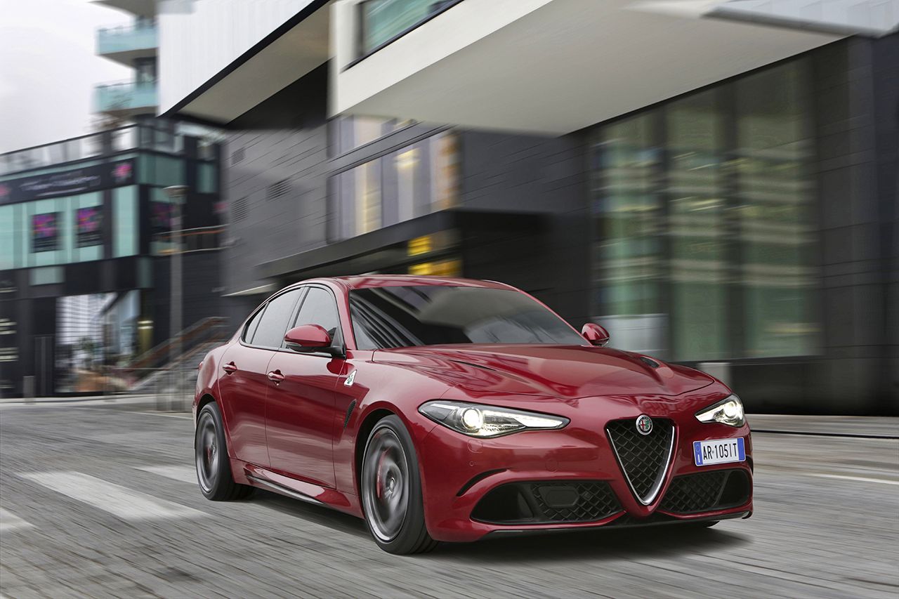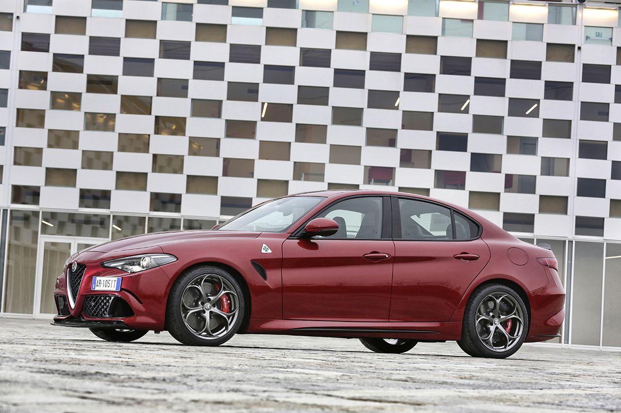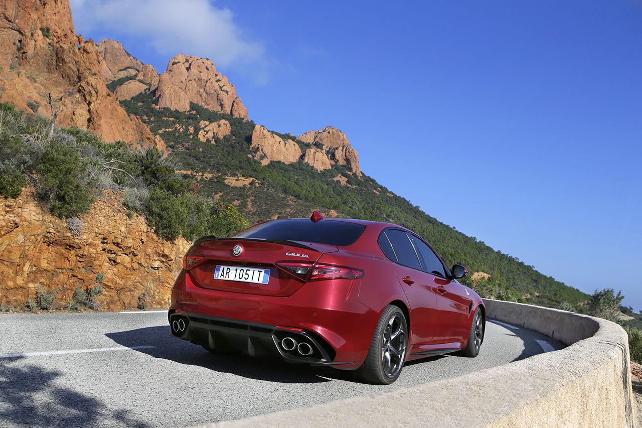 A motorpaletta viszonylag szűkös, szinte csakis a volumen cégautókra koncentrált. Meg persze ott a (részint) Ferrari fejlesztésű 2,9 literes V6-os BiTurbo, 510 lóerővel és 600 Nm nyomatékkal, 3,9 másodperces 100 km/órára gyorsulással és korlátozás nélküli, 307 km/órás végsebességgel, amivel a Giulia kategóriája autópálya-rekordere lehet. A Quadrifoglio csúcsváltozat 1524 kilogrammos saját tömegével igen előkelő, 2,99 kg/lóerő arányt mutat - köszönhetően annak, hogy teteje is karbonszálas plasztik, ahogyan egyébként a teljes spoilerezése is. A feláras karbon-kerámia fékrendszert és a Sparco üléseket rendelve még tovább apasztható a tömege, a két kuplunggal dolgozó, nyomatékszabályzós differenciálmű viszont alapáras hozzá.