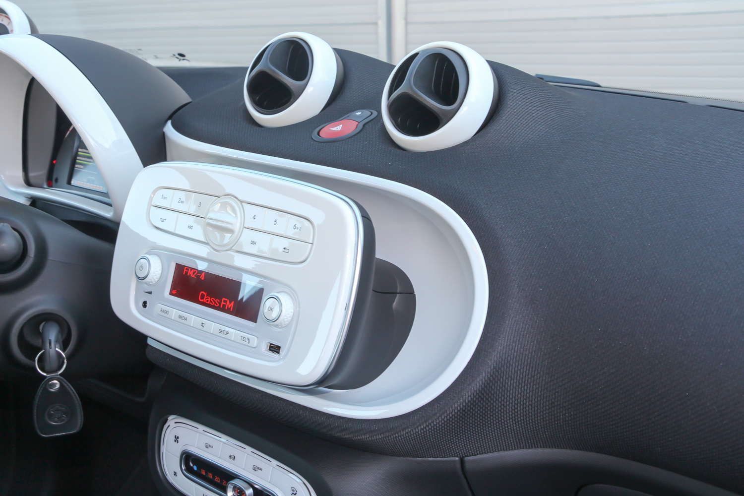 Melyik otthonosabb? A különbségek feltűnőek a beltérben is. Bár az ülések láthatólag ugyanazok, mint a Twingóban, de a Prime kivitelű smart tesztautóban már bőrkárpiton csücsülhetünk. Mások a színek, máshogy helyezkednek el a színezett betétek, a smart ajtajain kerekdedebbek a formák. A műszerfal alapvető felépítése is nagyon hasonló, de mások a levegőbeömlők. Igaz, a helyük ugyanaz, ám ezek a smartban túl lettek bonyolítva, a tekerentyűkkel csak nehezen állítható be a levegő iránya. A Twingo érintőképernyős középkonzolja nagyon másnak hat, de ha a smartba is kérünk ilyet, akkor a különbség csak annyi, hogy utóbbi jobban kiáll a középrész síkjából. Mivel mindkettő végtelennek tűnő színkombinációban kérhető, így nincs is értelme a további összehasonlításnak, a Twingo és a fortwo kínálatában is biztos lesz olyan változat, ami nagyon tetszik majd.
