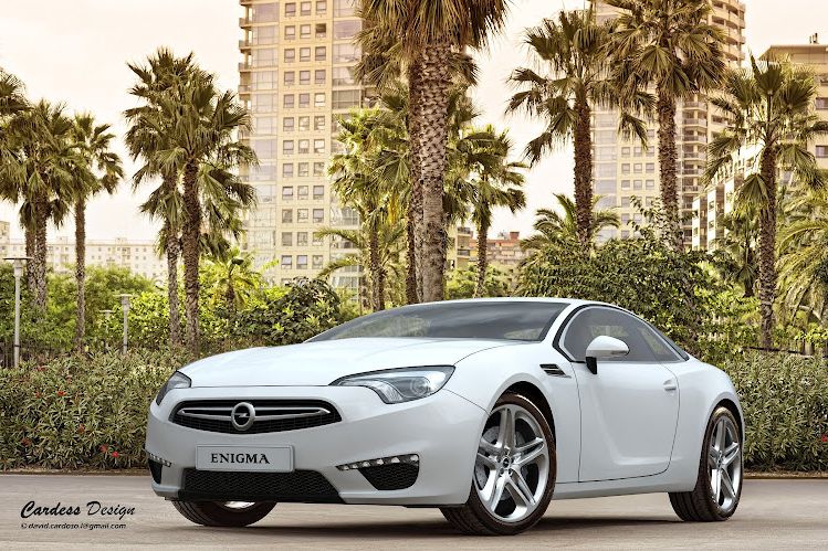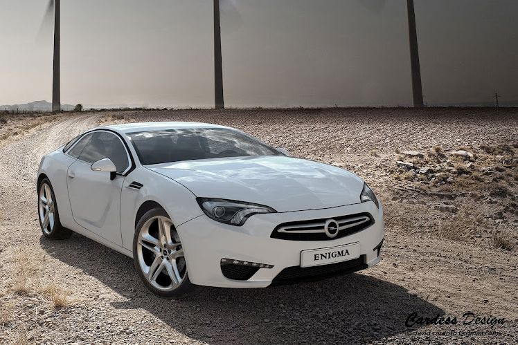 Sportos újdonság Opel emblémával, az Insigniánál feljebb pozicionált, s állítólag a Chevrolet Camaro alapjaira épülő modell Enigma névre hallgat(hat).