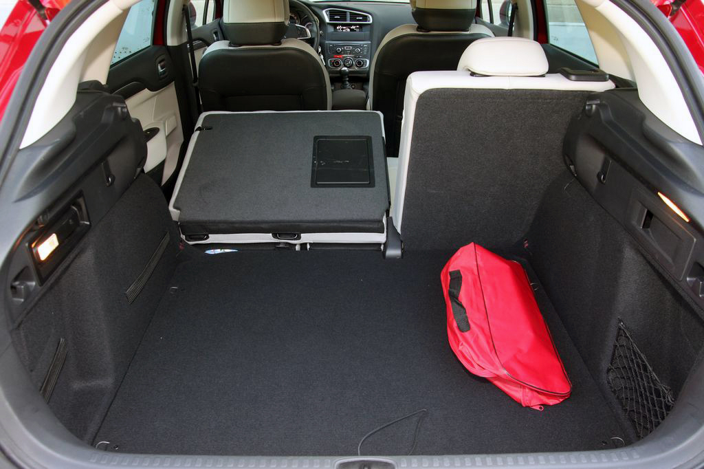 Haladni mondjuk villanymotor nélkül is jól tud a C4, az autópályás 130 km/órás utazótempó például hatodik fokozatban 2000 1/perc fordulattal gyerekjáték, s a - 68 dB(A) - zajszint még ott is igen visszafogott. Egyértelműen kényelmes autónak készült, futóműve is lágy. Sajnos olyannyira, hogy az elöl egyébként MacPherson, hátul multilink rendszer szó szerint lebegteti a karosszériát. Az úthibák azonban mégis érezhetők, olyankor ugyanis nagyot liftezik az autó. Dől továbbá kanyarban, bólint gázadáskor és fékezéskor is, lágysága ellenére nem mondható komfortosnak a rendszer. Kár érte, mert a C4 amúgy tényleg, ellátmányával is az. Csak a fontosabbakat említve 6 légzsák, ESP, légkondicionáló, tempomat, elektromos első ablakok, központi zár, elektromos tükör már az alapverzióhoz is jár, a csúcs Exclusive pedig már kétzónás légkondit, alufelnit, elektromos rögzítőféket, parkolóradart, USB-csatlakozót és Bluetooth kihangosítót, 220 V-os középkonzoli csatlakozót, LED-es belső hangulatvilágítást is ad. Sofőrsegédből sávváltást segítő holttérfigyelő és sávelhagyásra figyelmeztető rendszer kérhető. Utóbbi nem, előbbi azonban szerepelt és jól is dolgozott a tesztautóban.