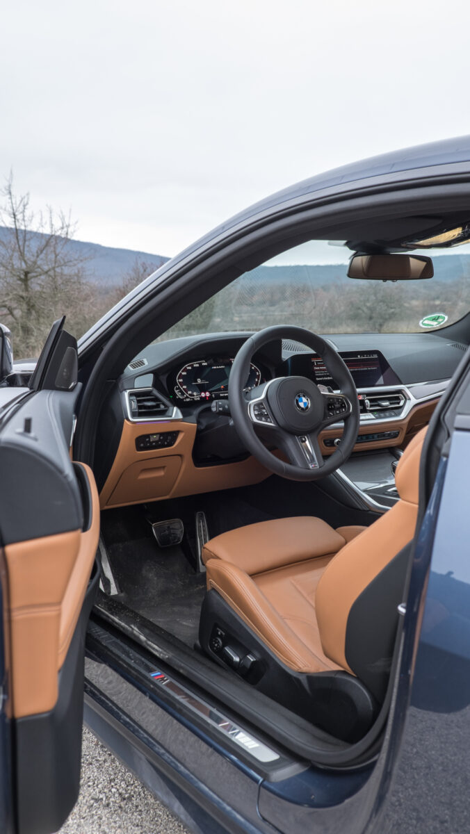 Felpattintva a kupésan hosszú ajtót, először a klasszikus keret nélküli ablak tűnik fel, aztán pedig az utastér, amibe pont azért várjuk, hogy beülhessünk, mert tudjuk jól, hogy milyen lesz. Különböznek a véleményeink, és ez épp így jó. Egyesek szerint lehet maradi, szerintem pedig klasszikus és pont annyira modern, amennyire 2021 megköveteli. Nincs kijelzőtenger, nincs zongoralakk (!), nincsenek érintőgombok, ellenben nagyon sok a bőr és puhított műanyag bevonatú felület. Az, hogy nem ordít róla a high-tech és nem a csilli-villi elemekkel telipakolt műszerfal néz ránk, nem azt jelenti, hogy a BMW ne lenne újító.