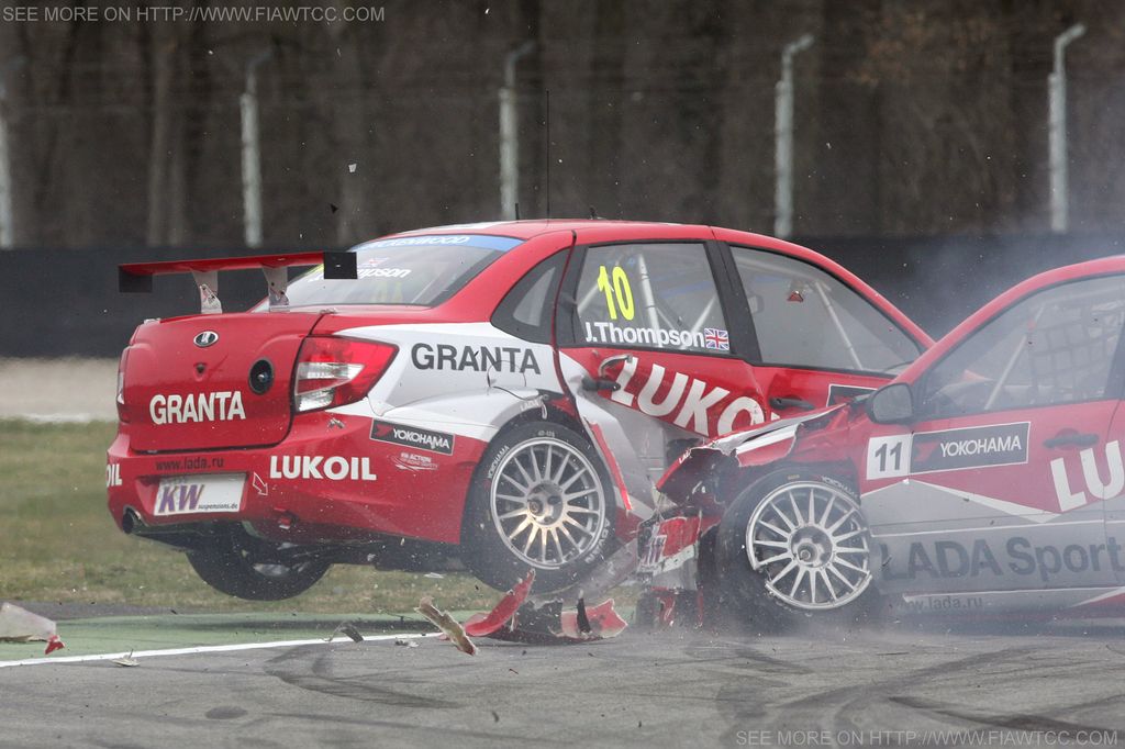 Michelisz számára nem a legjobban kezdődött a 2013-as WTCC-szezon, gyermekbeteg még az új Honda. A egyik Lada kiütötte a másikat.