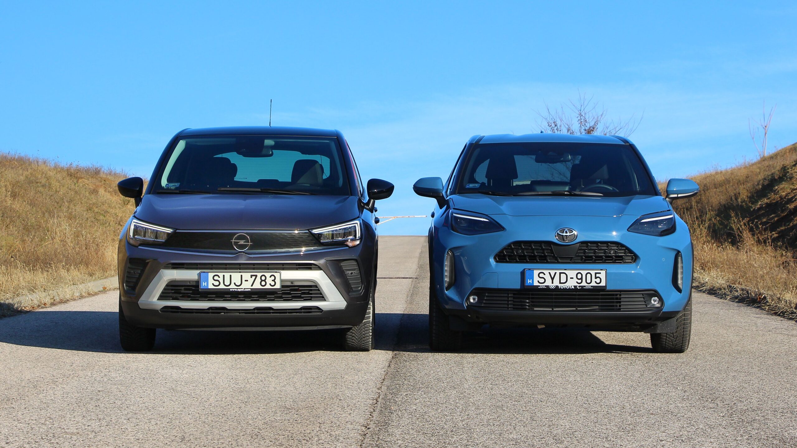 Friss és üde "játékosként" érkezett a B-szegmens kis crossoverei közé a Toyota Yaris Cross. Több kihívója is akad, most a ráncfelvarrása után szemből üde, de érezhetően koros Opel Crossland izgalmasan felextrázott változatát tettük mellé.