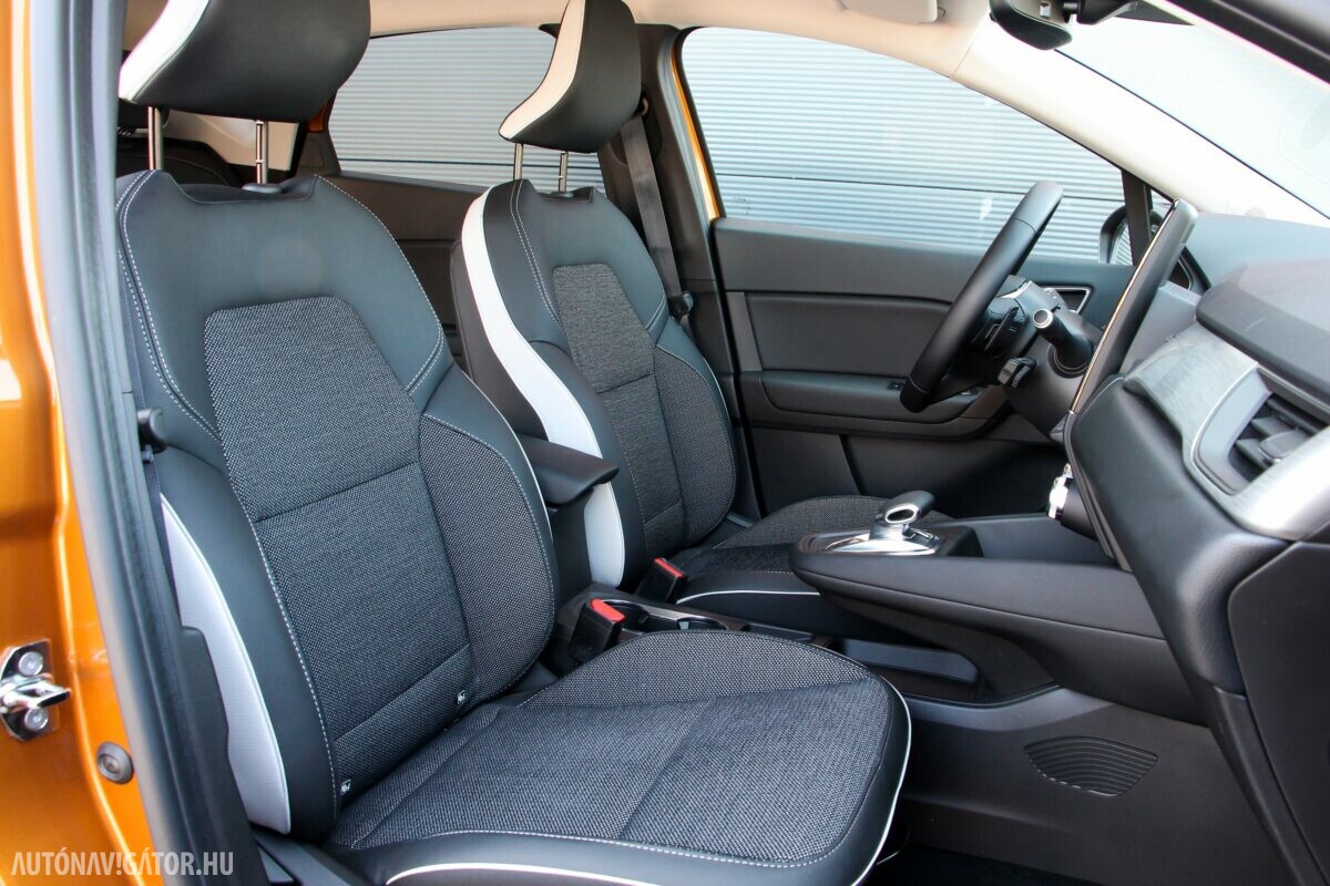 Clio V-re, azaz a Magyarország Autója 2020 díjjal is kitüntetett kisautóra épül. Az alapok tehát jók, a 4,23 méteres karosszériahossz pedig egy elég jó kompromisszum: ezzel még városban is elég jól el lehet férni, meg benne is. A külsőnél persze érdemesebb és lehet is tovább időzni, elég szépen kidolgozott, sok a domborítás, ízléses és persze praktikus a lökhárítók közepénél alul ezüst színű körbeműanyagozás. Az ajtókra került rész nem csak a karcolások felfogásáért felel, a koszt is megfogja és ajtónyitáskor elviszi a küszöbtől. Erre néhány éve még a komolyabb terepjárók voltak csak képesek. Króm érzéssel, de került az autóra. Az említett műanyagbetétekhez, a nem létező első ködlámpafészkekbe és a hűtőmaszk aljára, valamint az ablakkeretek aljára is, utóbbitól pedig némi vastagítással és egy kisebb kanyarral végig is húzták a csomagtérajtóig. Ott ugyan nem folytatódik, de ez nem is baj, pont így a jó, alulra,a lökhárítóra azért került, a műanyagbetétbe, logikusan az oldalsó betétek folytatásaként. Ahogyan elöl, hátul is van LED menetfény, az Intens szinten ráadásul 3D hatású. A fényszóró (ahogyan a Clio esetén is), mindenképp Full LED, de itt növelt fényerejű, automata reflektoros, ami nagyon megkönnyíti az éjszaki, sötétben vezetést.