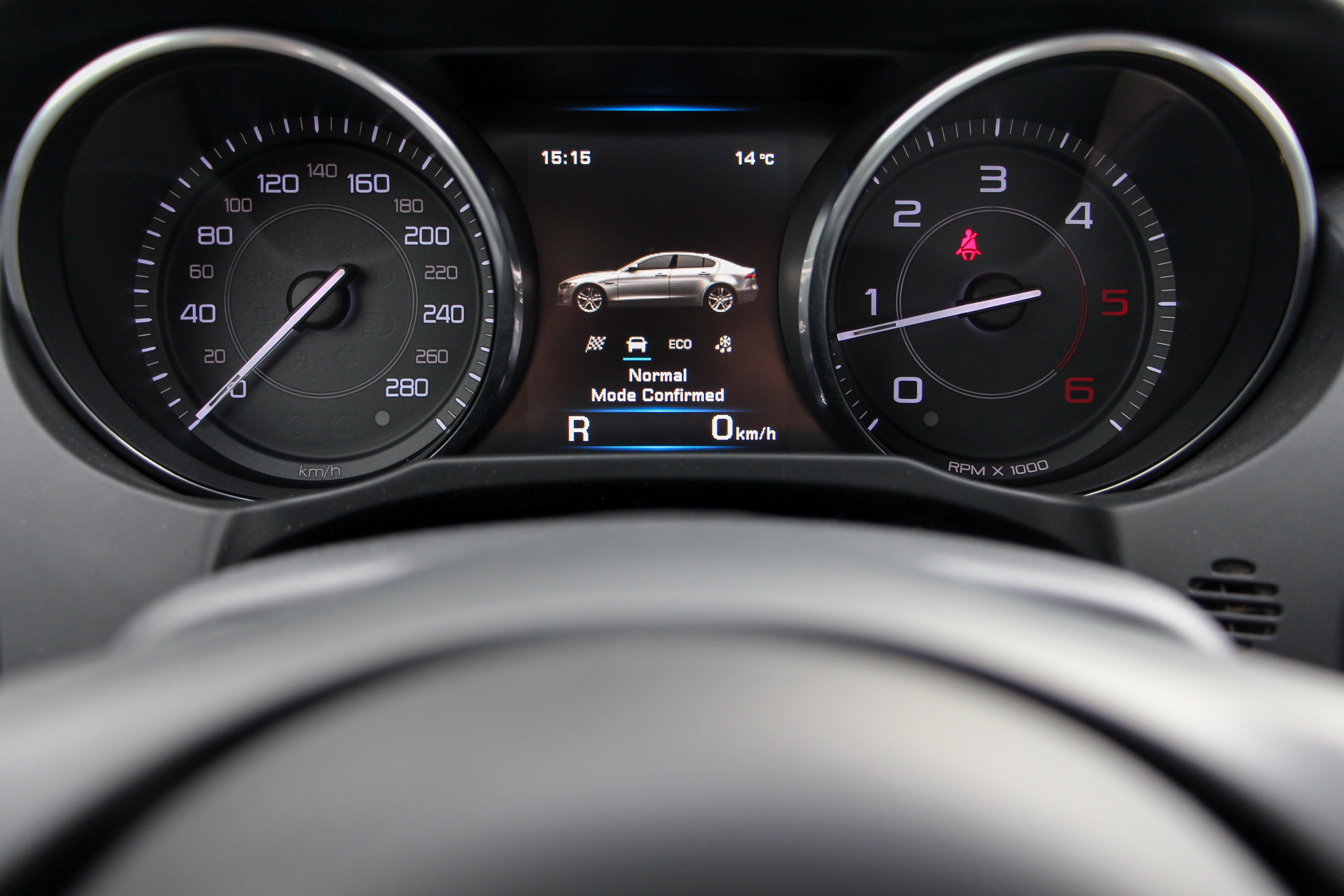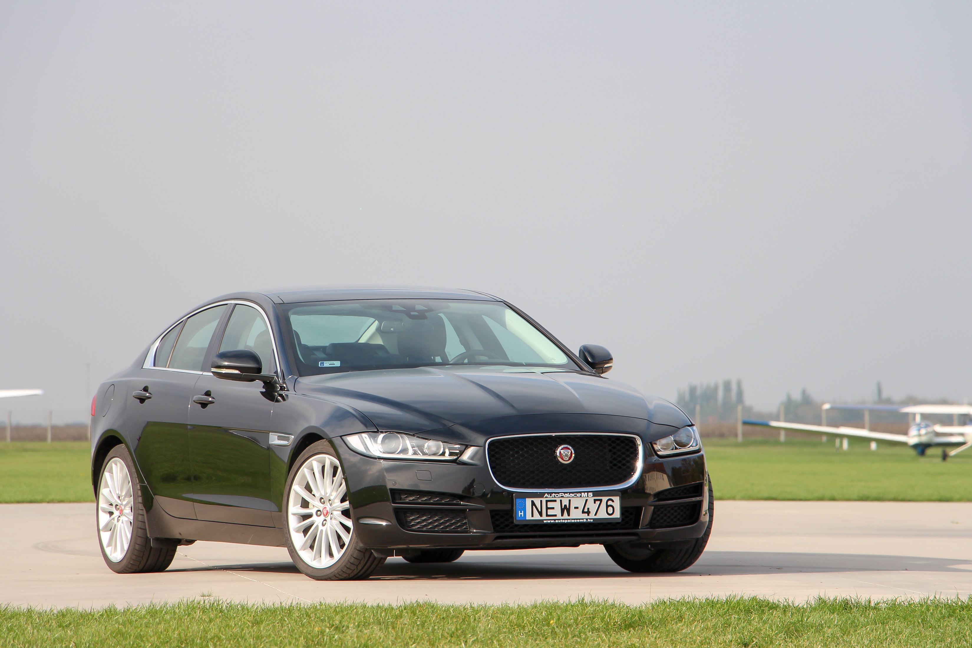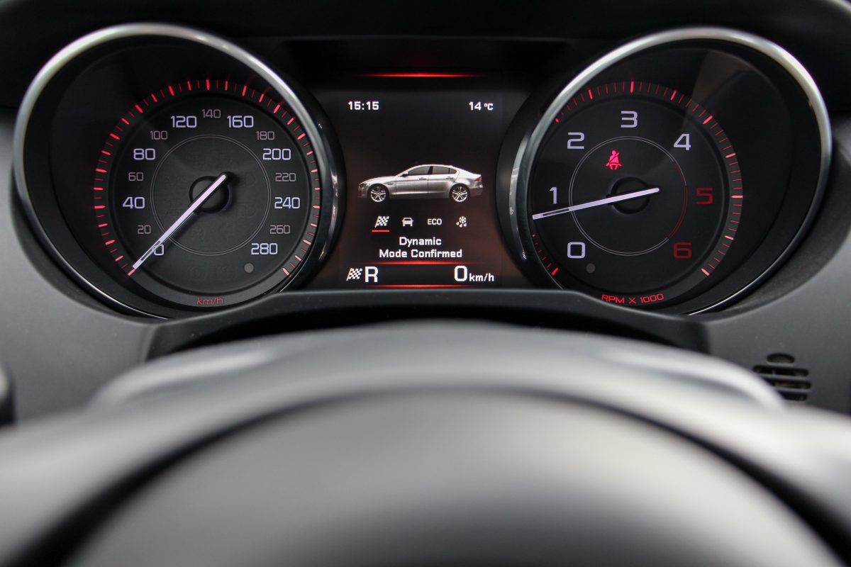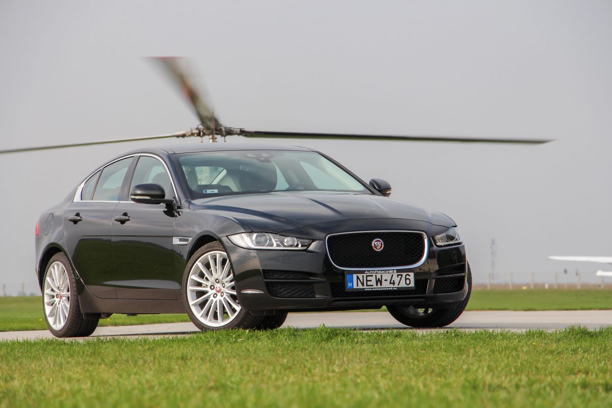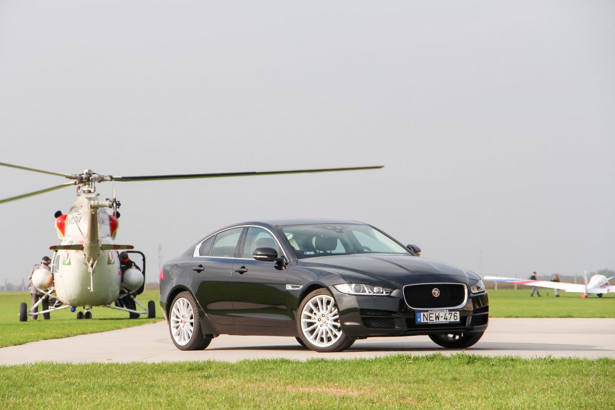 Driver's car. Ha valamivel, akkor egyértelműen vezethetőségével domboríthat az XE, de azért meg kell hagyni, hogy hiába épül zömében alumíniumból a karosszériája, az 1565 kilogrammos saját tömeg egy hajszálnyit jelentősebb, mint egy hasonló motorizáltságú Audi A4, 3-as BMW, C-osztályos Mercedes saját tömege. Bár az XE szeretne lenni a kategóriában a driver's car, ezt igazából nem úgy éri el, hogy ott gurít nagyon nagyot, hanem úgy, hogy ott talán valóban a többiek fölé tud menni - egy kicsikét, míg egyéb jellemzők kapcsán elmaradásban van. Dicséretes a hosszában beépített motor, a hátsó (opcióként összkerék-) hajtás, jó a kormányzás is. Természetesen van vezetési profil, a körkapcsolós váltó-előválasztó mögött lapozhatunk Dynamic, Normal és Eco módot. A legelső esetén a műszerek megvilágítása is pirosba fordul - ezt persze már 2008-ban tudta az Opel Insignia is, az elektronikus kormányszervo rásegítése enyhébb lesz, a természetesen itt is hibátlanul dolgozó 8 fokozatú ZF automata kicsit magasabb fordulatokon kapcsol. A stop-start viszont minden módban megvan, a motorindítás bizony kemény, hangos, ahogyan gyorsításkor a motor is.