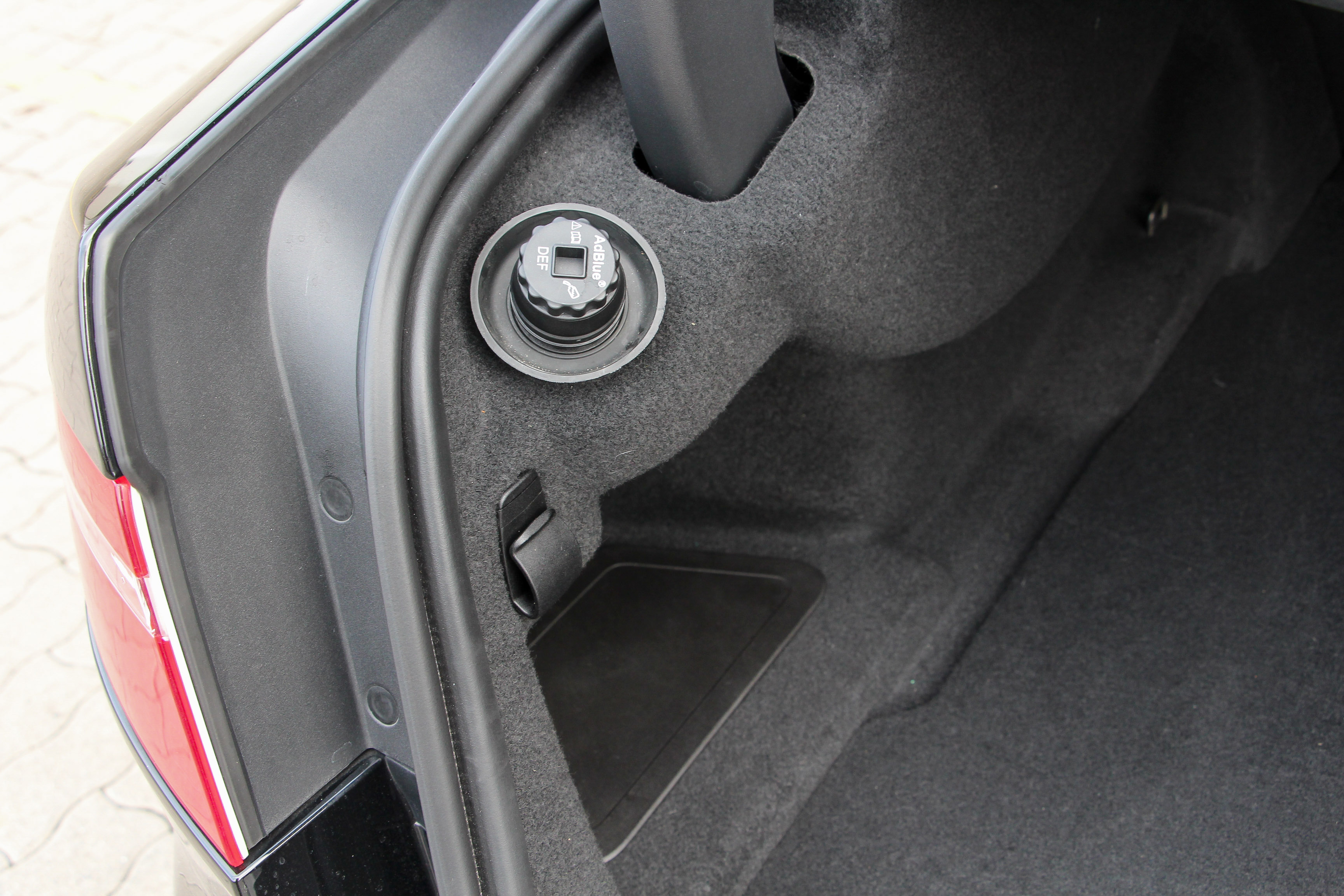 Ez a csomagtér bizony se nem nagy, se nem igényesen kidolgozott, a hátsó támlák döntése pedig macerás, ahogyan az AdBlue innen tölthetősége is