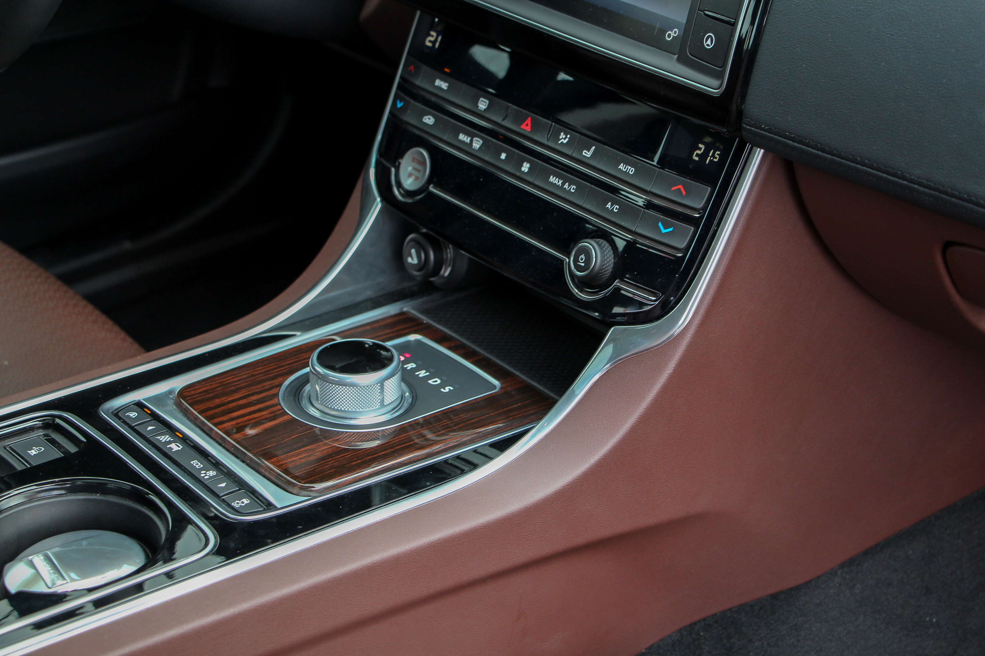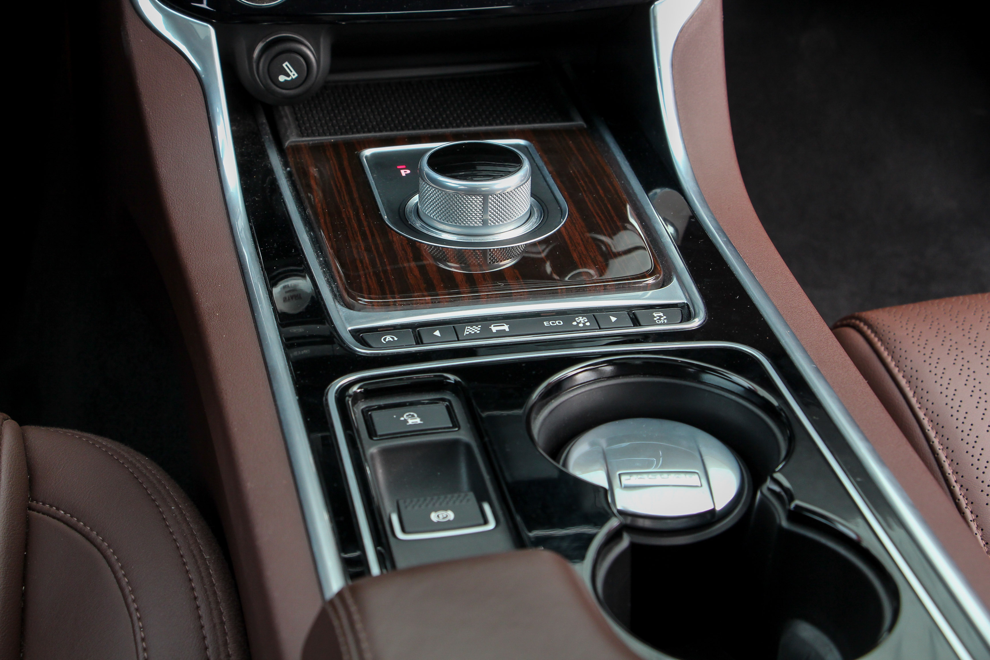Jaguar-jellegzetesség a gyújtást ráadva kiemelkedő, kör alakú váltókapcsoló. Légbefúvó, ülésfűtés és két 12V-os csatalakozó hátra is jut - ha megfizetjük