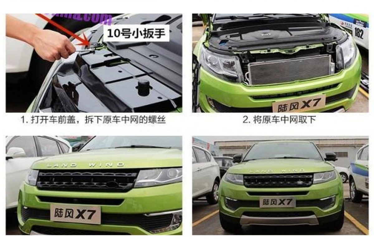 Az Evoque hűtőrácsa is kapható hozzá, így már tényleg azt hiheti az egyszerű kínai vásárló, hogy Range Rovere van. Természetesen feliratokat is kapni hozzá, szigorúan több színben