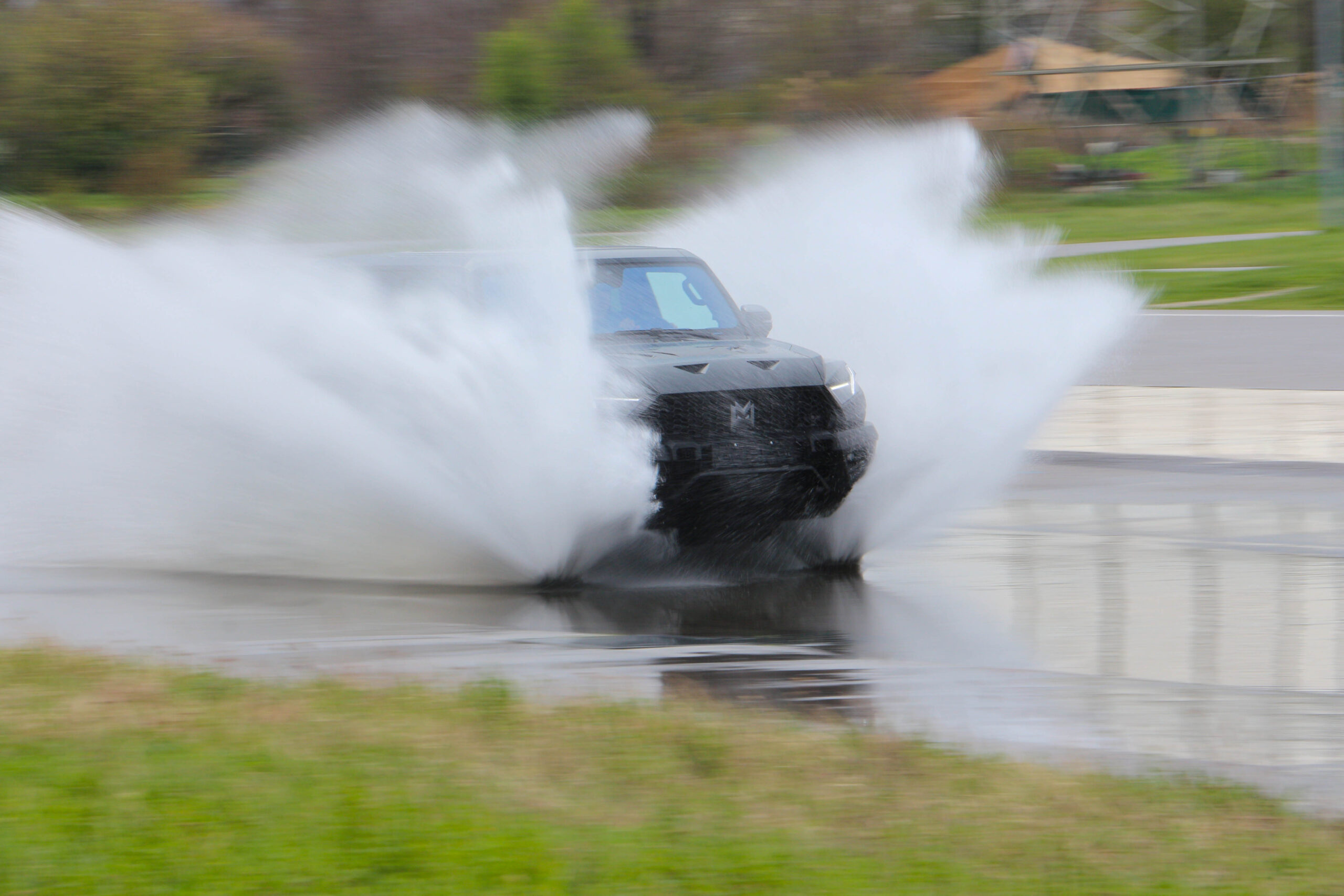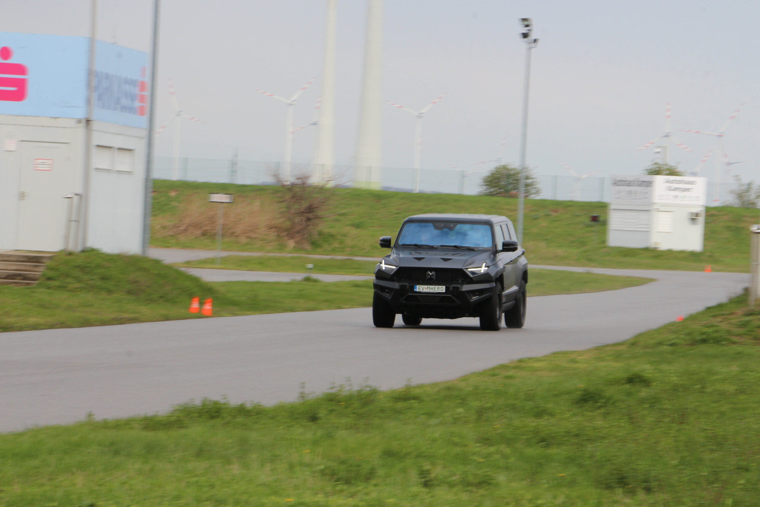 Az offroad pálya után egy rövid „közúti” tesztre is elvihettük az MHERO 1-est, amely egy szlalompályában merült ki. Itt főként a 360 fokos kamerát, illetve a manőverezhetőséget vizsgáltuk meg. Előbbi első ránézésre meglepően sokat torzít, viszont némi akklimatizálódás után könnyen hozzá lehet szokni, így a legtöbb bója túlélte a kínai óriást. A tempósabb kerülgetés során nehezítő körülmény volt a szemerkélő eső, valamint a nedves aszfalt, de az abroncsokat sem kifejezetten erre találták ki. Ennek eredményeképp már középgyors tempónál is hajlamos volt a hátsó tengely elúszni, viszont a menetstabilizátor hamar irányba állította.@autonavigator.hu “Rákjárásban” az MHERO 1 🦀 #dongfeng #mhero #menetpróba #mhero1 #rákjárás #autónavigátor ♬ eredeti hang - Autónavigátor