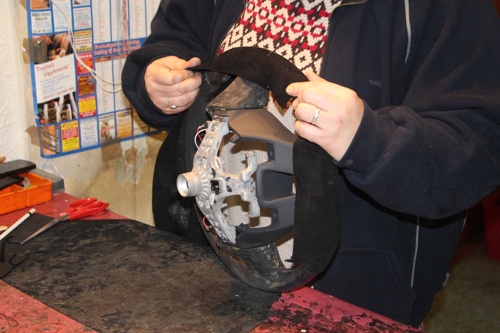 Velúrból új szivacsozást kap a kormány, rá pedig a gyáritól eltérő vagy akár azzal egyező színű, perforált, vagy hagyományos bőr is kerülhet