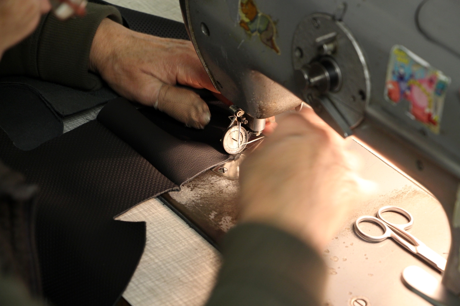 Amikor a volán előkészítése, illetve a rákerülő bőrrészek már készen vannak, következik a modellezés, azaz a felvarrandó bőrök illesztési próbája. A fölösleges részeket ekkor vágják le (erre leginkább a korábban nem bőrözött kormányoknál van szükség). Majd jön az élezőgép bevetése, mellyel az ívközi, tehát a karimára merőleges illesztéseknél összetűzendő bőrszéleket harmadolják, negyedelik az esztétikus illesztések érdekében. A karima hátuljánál összevarrandó bőrszéleket gépi varrással zárják le, majd következik a széltűzés. Talán ez a munka leglátványosabb része: a volánra felragasztott, fércelt szélű kárpitot minden második öltésbe öltve kézzel feszítik, illetve varrják fel. Mindezt olyan tempóval, hogy szemmel is nehéz követni. Végül természetesen a varrásvégeket megerősítik, és még egyszer ellenőrzik az öltéseket és az illesztéseket. Az utolsó fázis a vasalás: a már kész kormányra hőlégfúvóval feszül fel a bőrhuzat, eltűnnek az apró ráncok. Ezt követően még némi kozmetika következhet, ha például került egy kis ragasztó a külső felületre is. Óvatos hevítéssel az is lejön.