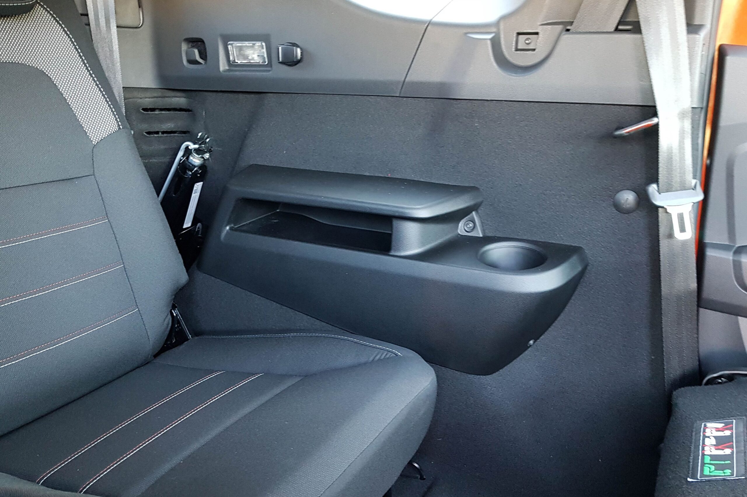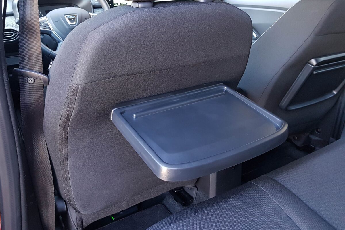 Az utastérben 23 liternyi pakolóhely található, és még olyan praktikus megoldásokra is gondoltak a tervezők, mint például az első ülések háttámlájáról lehajtható asztalka