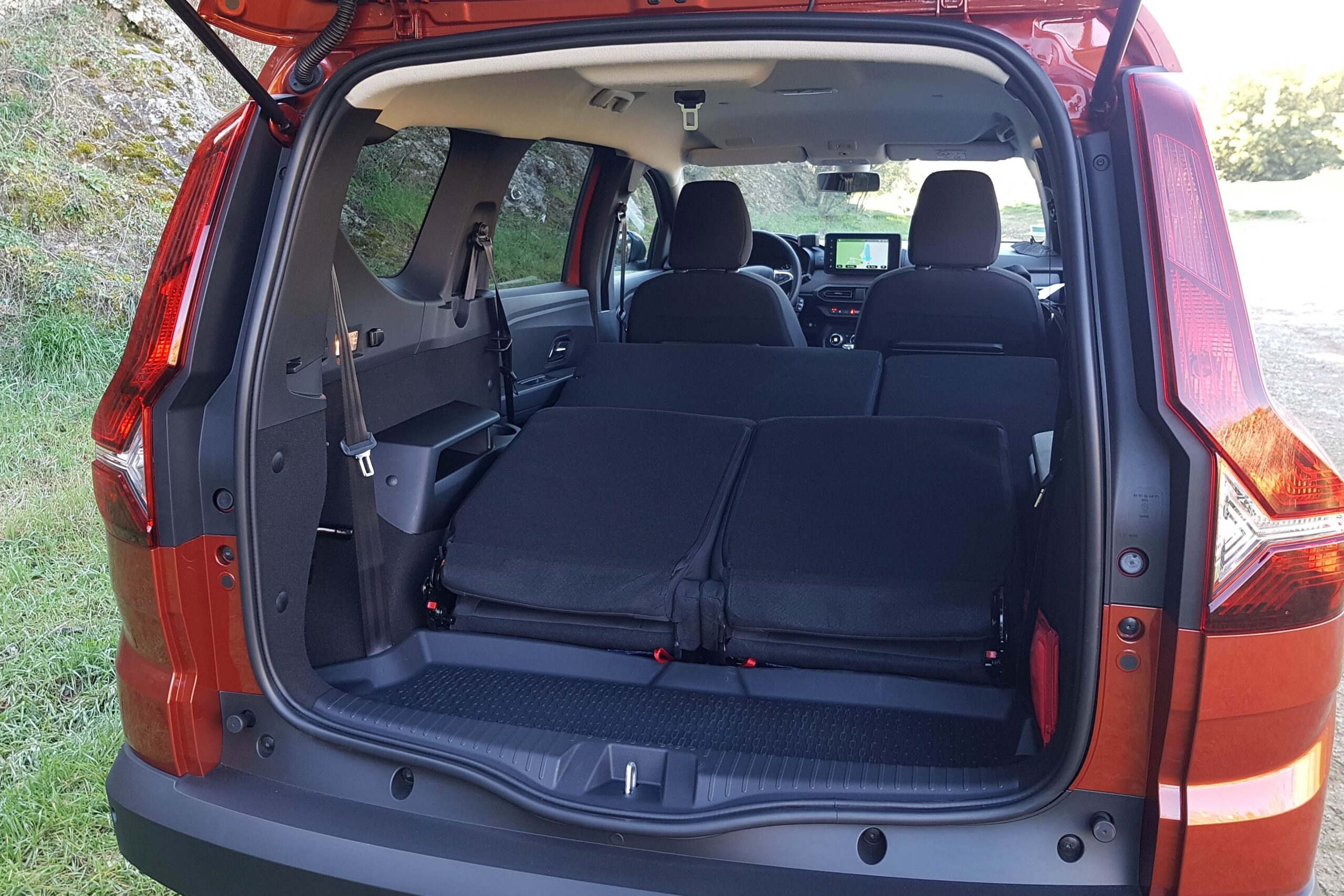 Kényelmesek a szövetkárpitos ülések is. Elöl megfelelő méretű a combtámasz és a deréktámasz, de nincs elektromos ülésállítás, ellenben kérhető ülésfűtés 60 ezer forintért. Persze csak előre, a második üléssorban szintén kényelmes az ülések párnázottsága, emellett a lábtérre sem lehet panasz, az ötajtós modell esetén pedig itt jönne a csomagtér méretéről az infó, ám a Jogger 7 személyes is lehet. A leghátsó üléssorban ráadásul akkora helykínálattal, hogy egy 176 centis felnőtt is különösebb kényelmetlenség nélkül elfér. Na, most jöhet a csomagtér, ami az ötüléses esetében 703 liter alapból, de ez közel 2 köbméter is lehet, míg a 7 üléses esetében már csak 160 liter poggyásztér marad alapból, amennyiben 7 személy utazik. Viszont ugyanúgy bővíthető 2 köbméteresre.