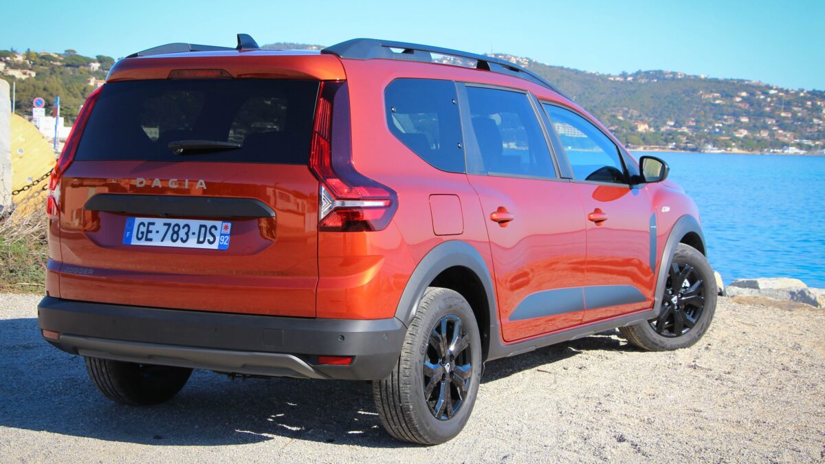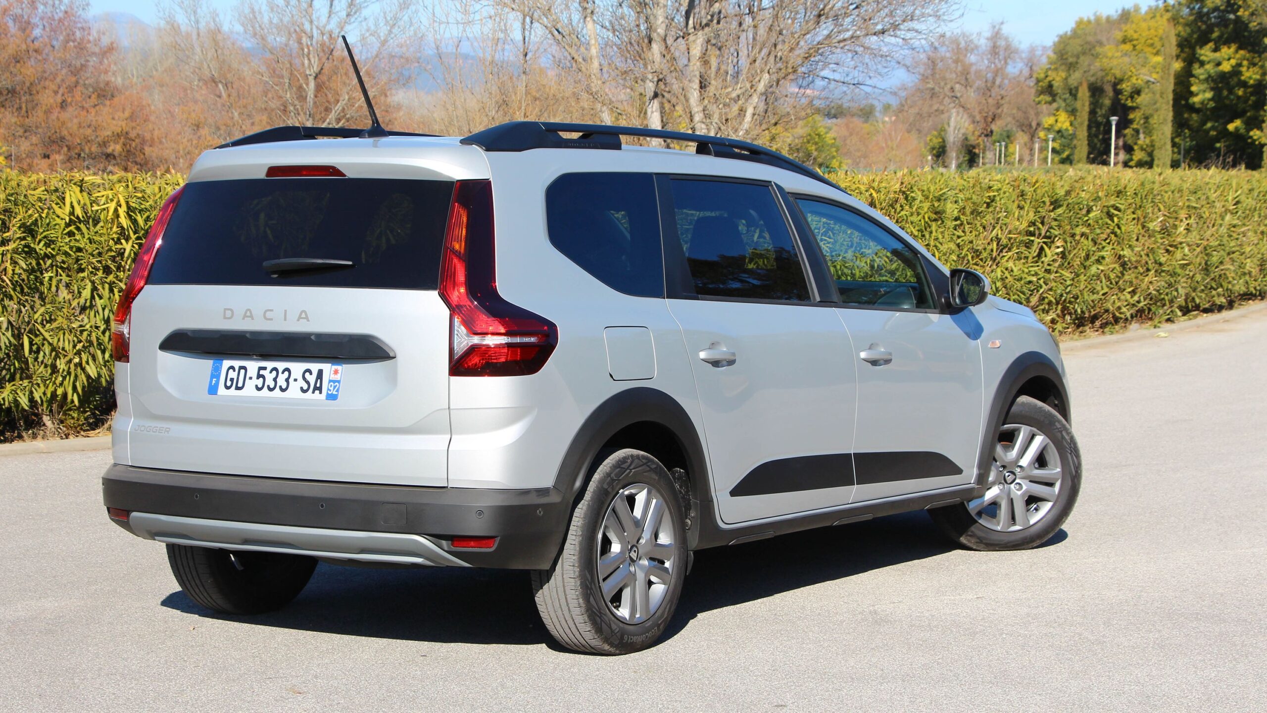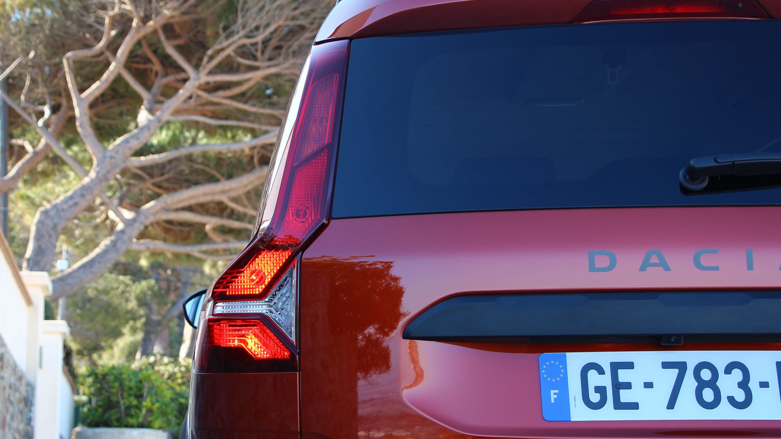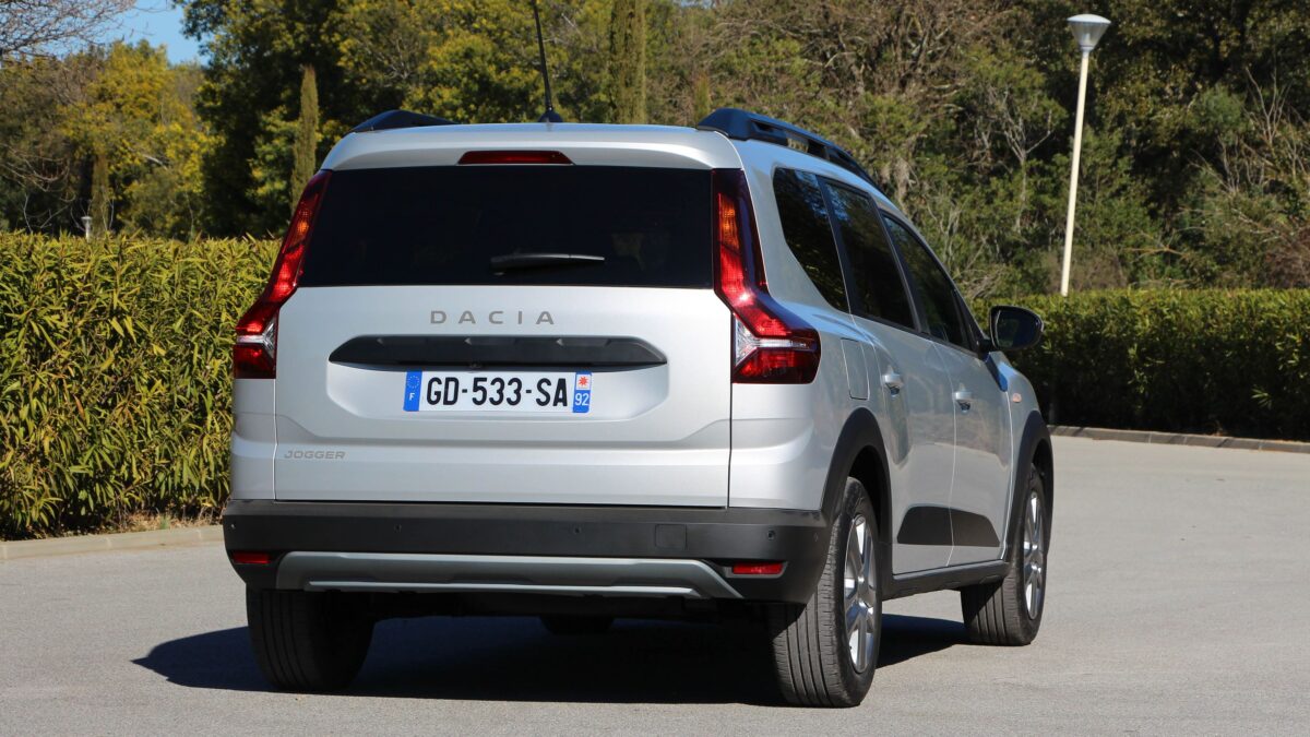 Végül eljutottunk hátra, ahol nehéz nem belelátni egy Volvót a hátsó lámpák kialakítása miatt, ám ez nem baj, hiszen egy prémium márka modelljéhez hasonlónak lenni nem bűn. A fekete, fényezetlen sárvédőívek pedig itt folytatódnak fekete lökhárítóban, ami azért kapott egy ezüst dekorelemet is, a márkanevet pedig büszkén kiírták jó nagy betűkkel középre. Amit még nem említettem, az a CMF-B platform, erre épül ugyanis a Jogger, ami jelenleg a Dacia kínálatának leghosszabb modellje, a maga 2,9 méteres tengelytávolságával és 4,55 méter hosszú karosszériájával. Elődjéhez képest megnövelték a hátsó ajtók hosszát, így könnyebben tudnak beszállni a hátul utazók.
