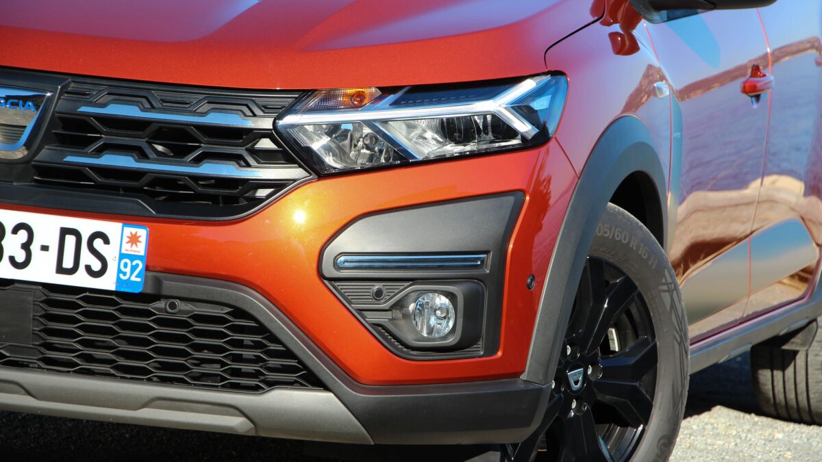 Mint az köztudott, nem elég erősnek lenni, annak is kell látszani, ugyanez sokféle módon igaz. Nem elég komoly autónak lenni, annak is kell látszani, márpedig a Joggernek ez nagyon is sikerül. Már az új Sandero és Logan is olyan formatervet kapott, amiért lehet lelkesedni, amely első pillantásra megfog és becsábít egy márkakereskedésbe, még ha csak néhány érdeklődő kérdés erejéig is. A Joggeren is ugyanez a formanyelv köszön vissza, a B-oszlopig szinte megegyezik az előbb említett típusokkal. De csak szinte! Ha szánunk egy kis időt arra, hogy megnézzük a részleteket, akkor máris szembetűnik, hogy a fényszórók azok, amik tényleg ugyanazok. Ám a Jogger egyedi hűtőmaszkot kapott, szintén más egy kicsit a lökhárító is, benne a ködfények “fészkéül” szolgáló díszbetétekkel. És akkor még nem is említettem a motorháztető domborulatait, amiket szintén egyedileg rajzoltak, ráadásul ez a részlet kimondottan “izmos” karakternek próbálja beállítani a Joggert, pedig a hajtásról józan mennyiségű lóerő gondoskodik, de erről majd később.