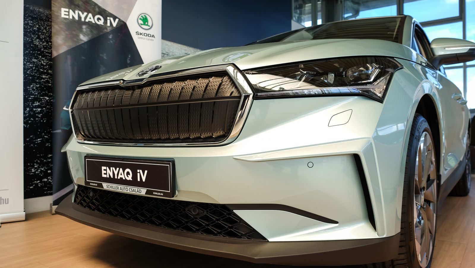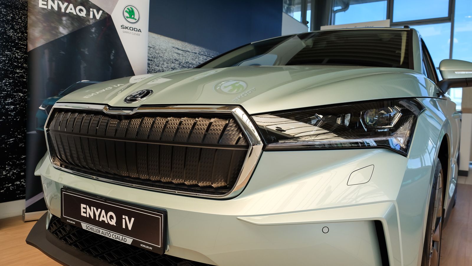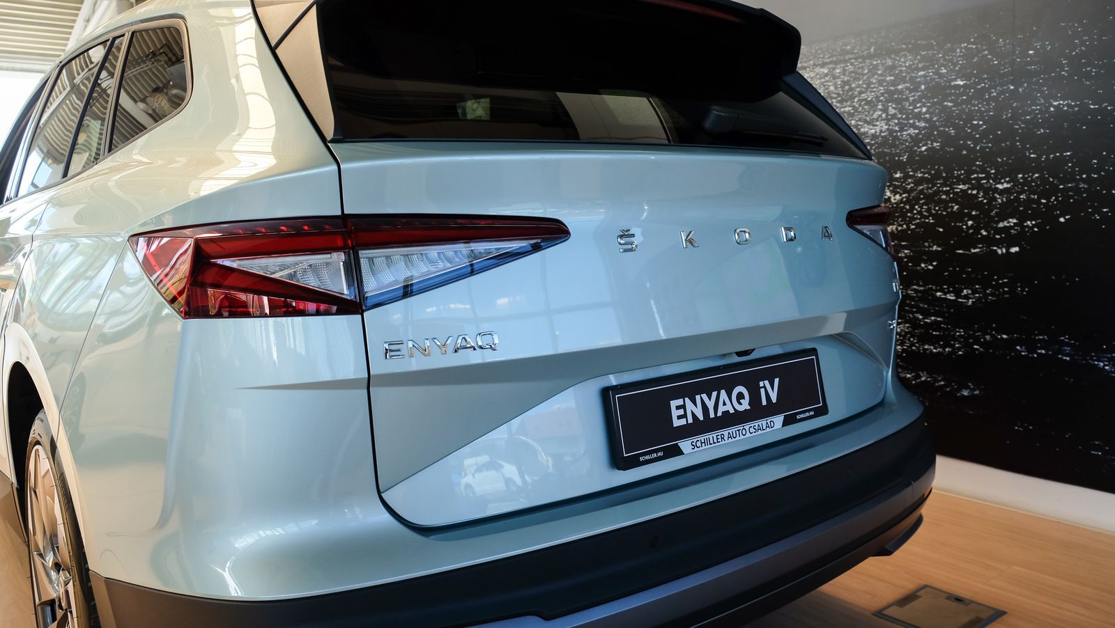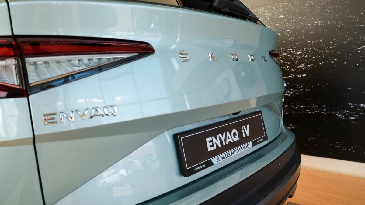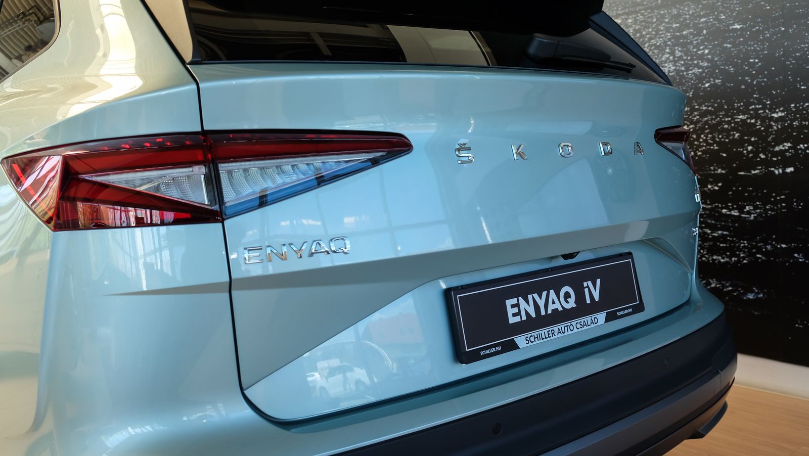 A Skoda első dedikált, egyben MEB platformos villanyautója az Enyaq iV, 1 milliméter híján 4,65 méter hosszú, azaz rövidebb az Octaviánál, utasterében ez azonban nem érezhető. Mindenképp LED fényszórós és kulcs nélkül nyíló, indítható, vezeték nélküli telefonkapcsolatos