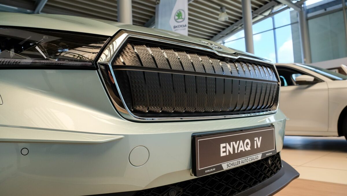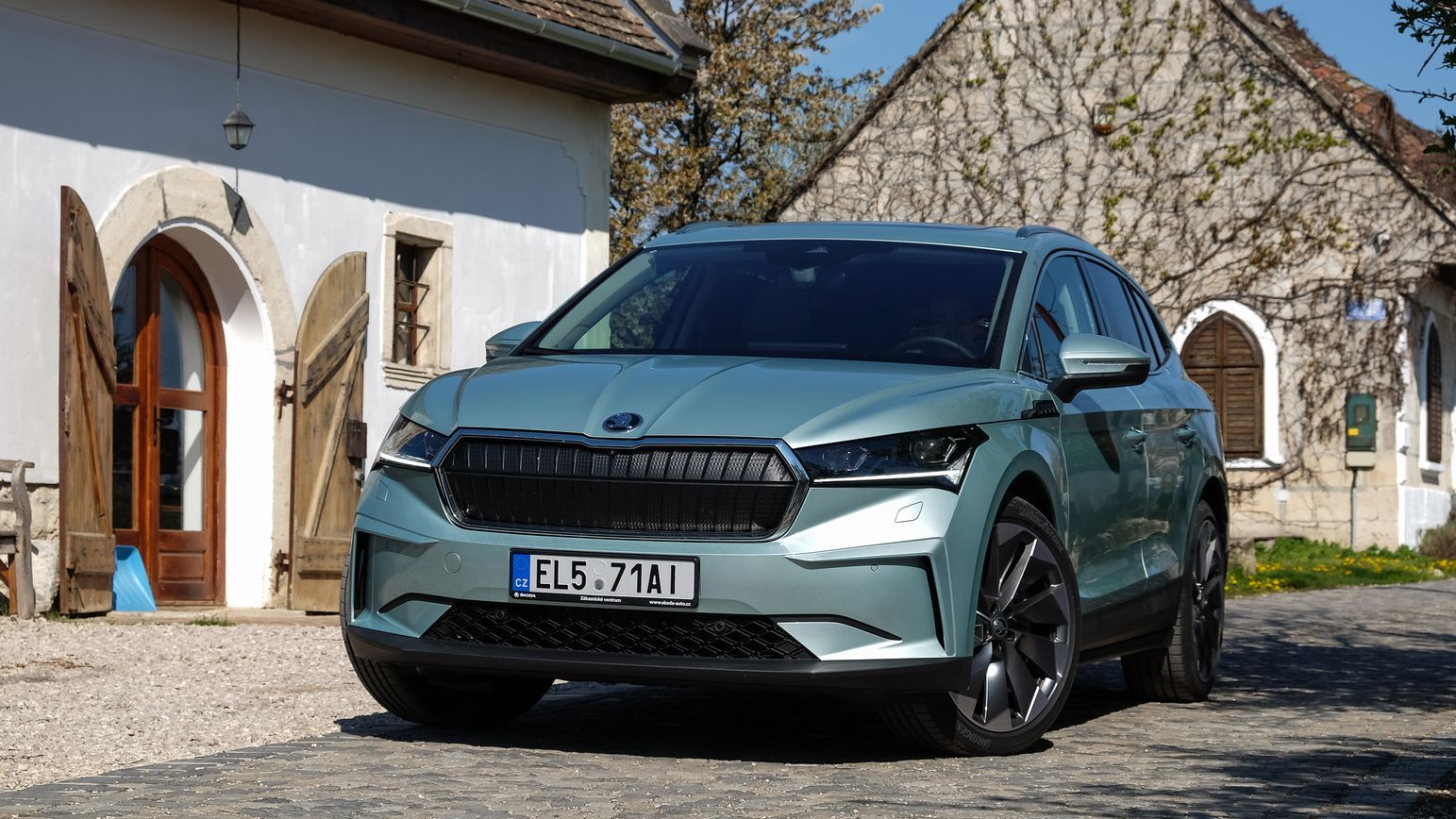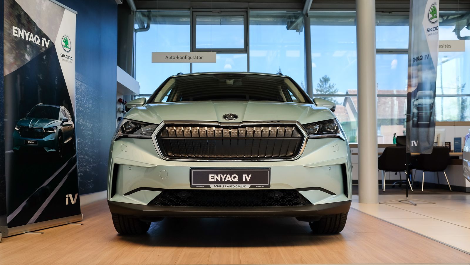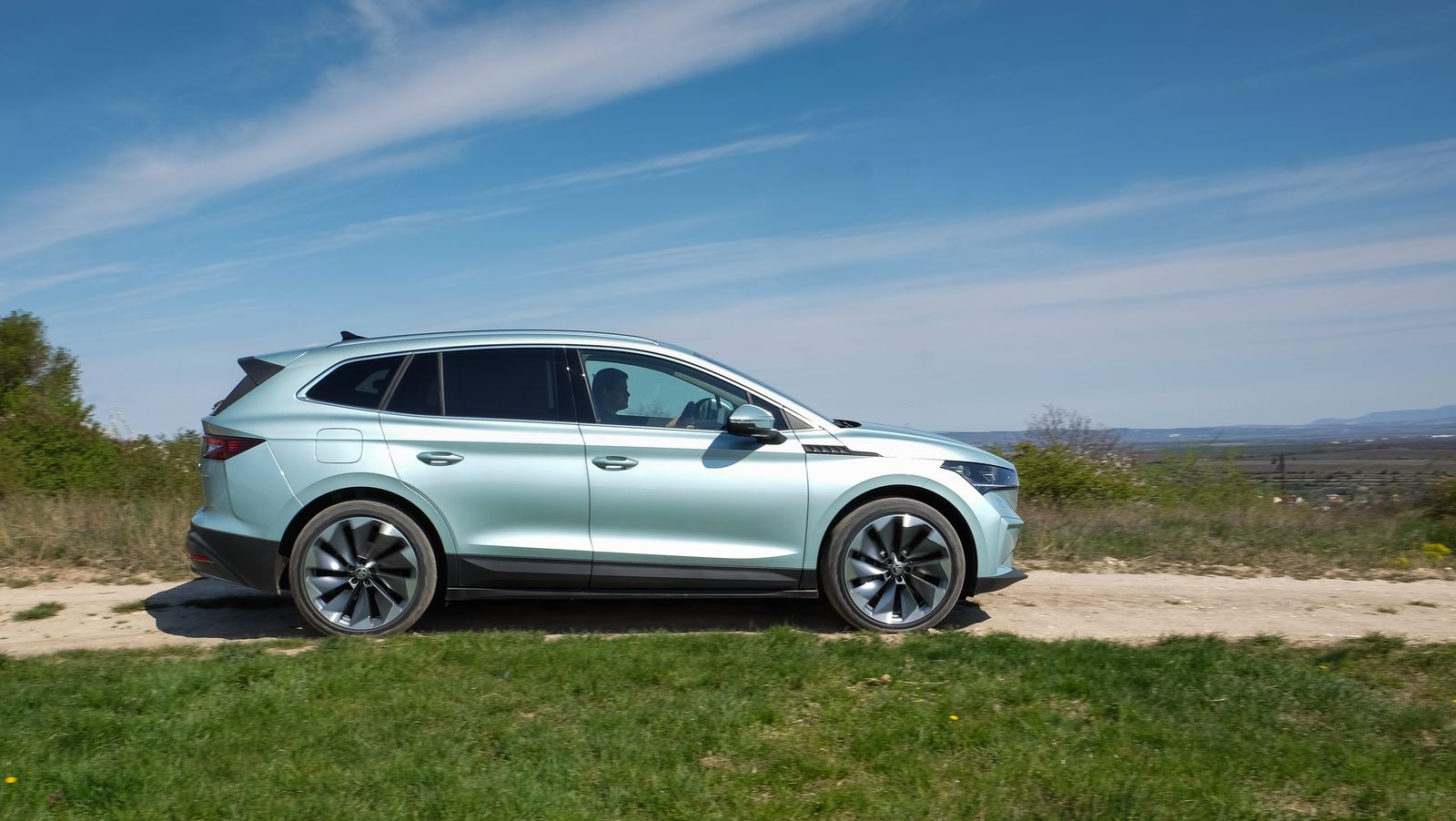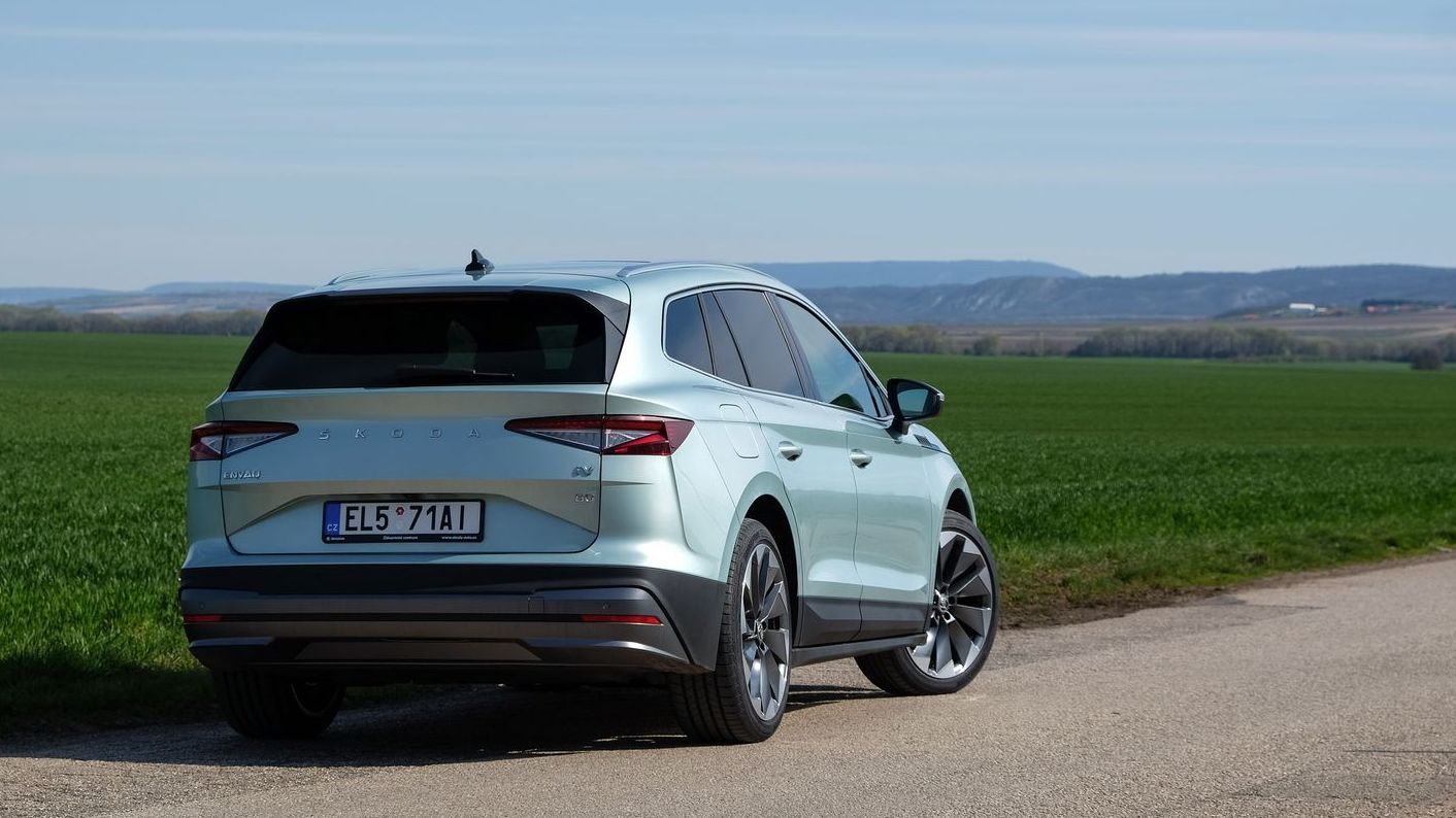 A Skoda első dedikált, egyben MEB platformos villanyautója az Enyaq iV, 1 milliméter híján 4,65 méter hosszú, azaz rövidebb az Octaviánál, utasterében ez azonban nem érezhető. Mindenképp LED fényszórós és kulcs nélkül nyíló, indítható, vezeték nélküli telefonkapcsolatos