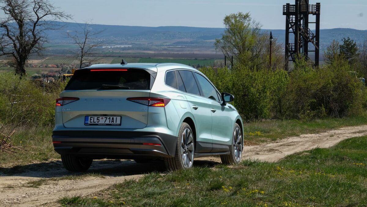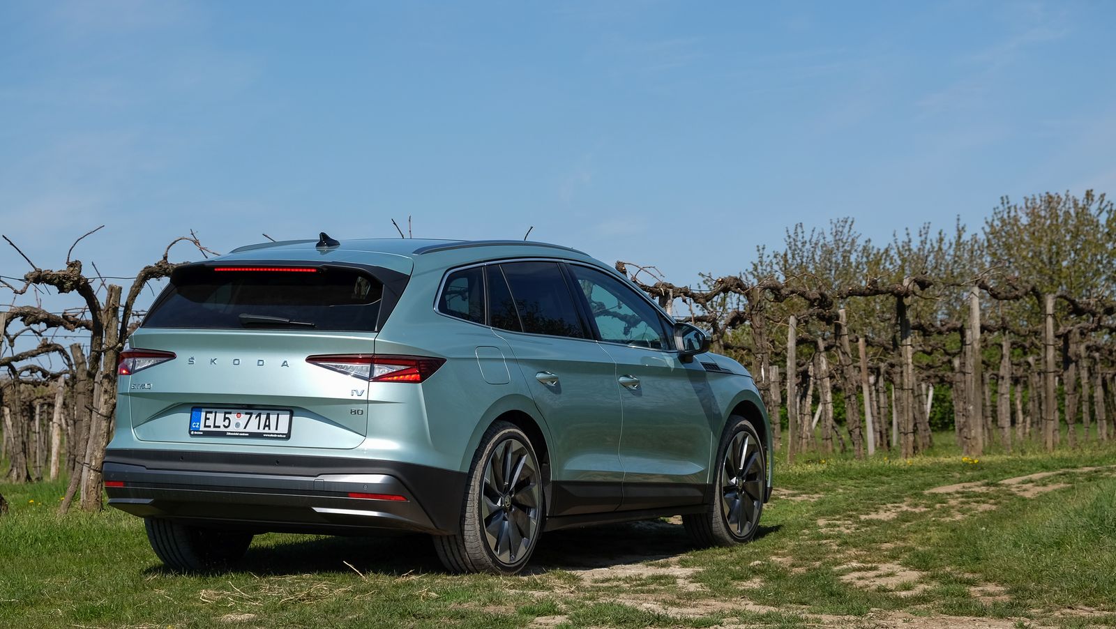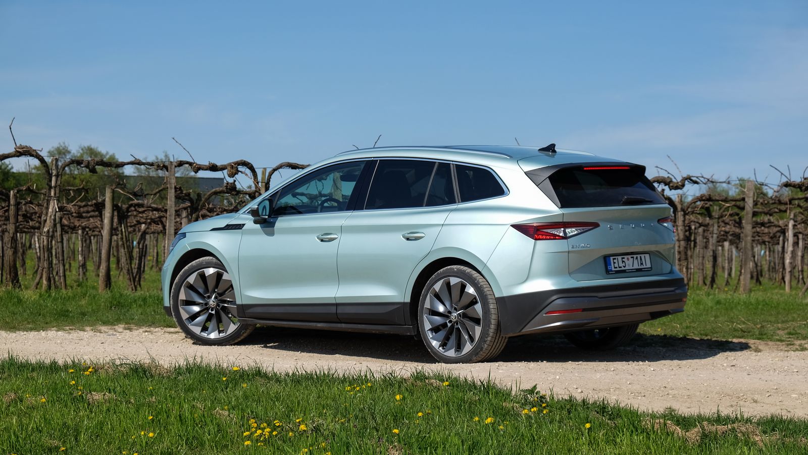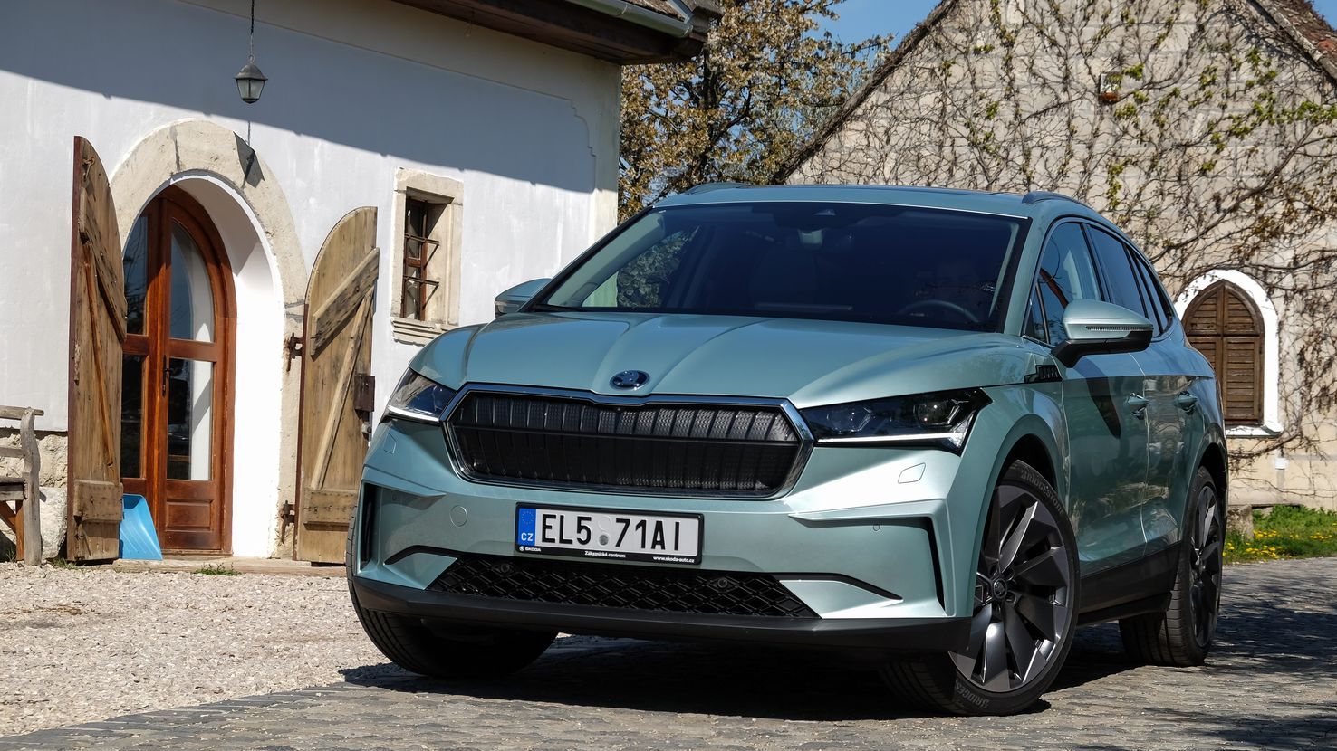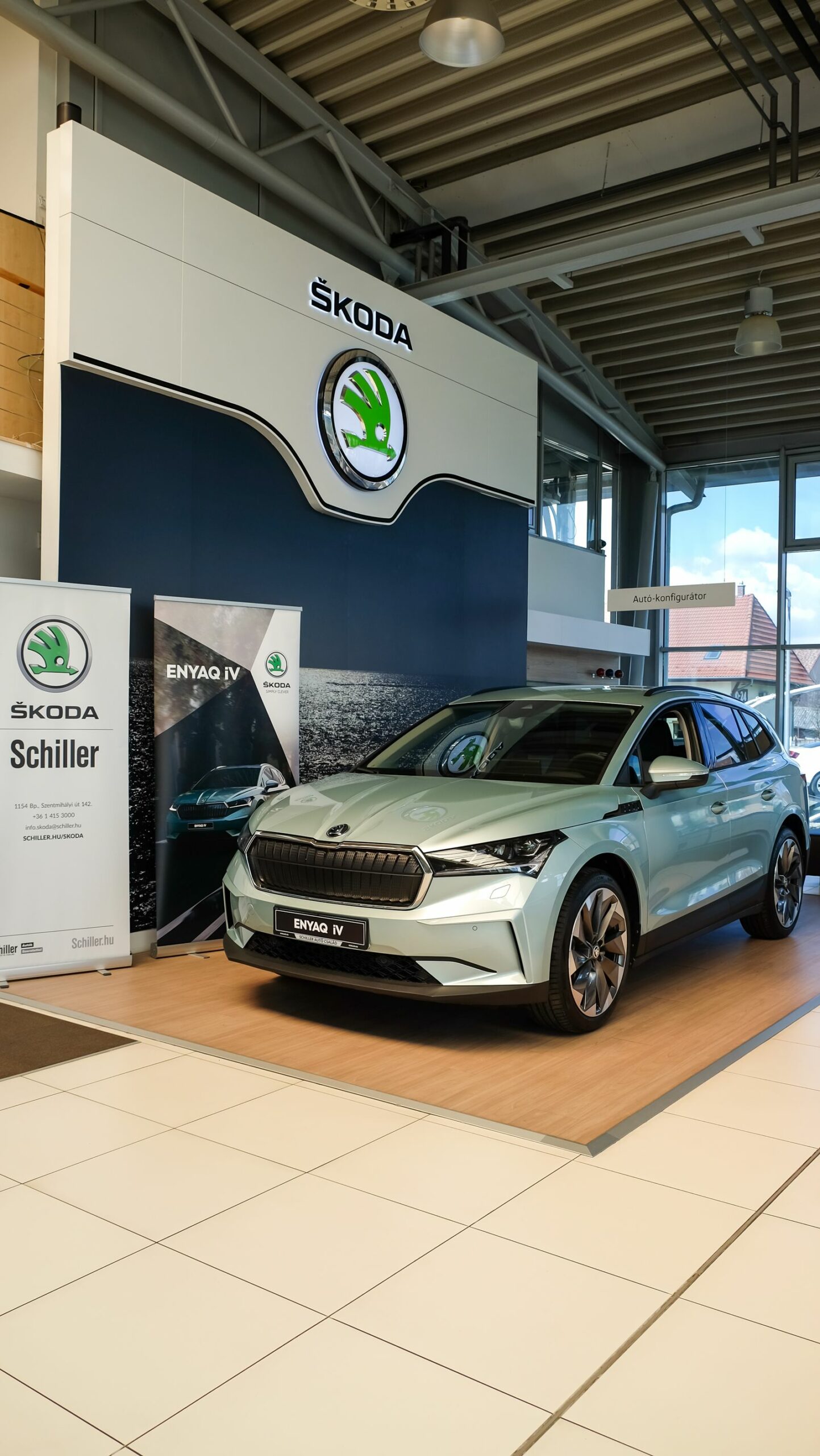 A Skoda első dedikált, egyben MEB platformos villanyautója az Enyaq iV, 1 milliméter híján 4,65 méter hosszú, azaz rövidebb az Octaviánál, utasterében ez azonban nem érezhető. Mindenképp LED fényszórós és kulcs nélkül nyíló, indítható, vezeték nélküli telefonkapcsolatos