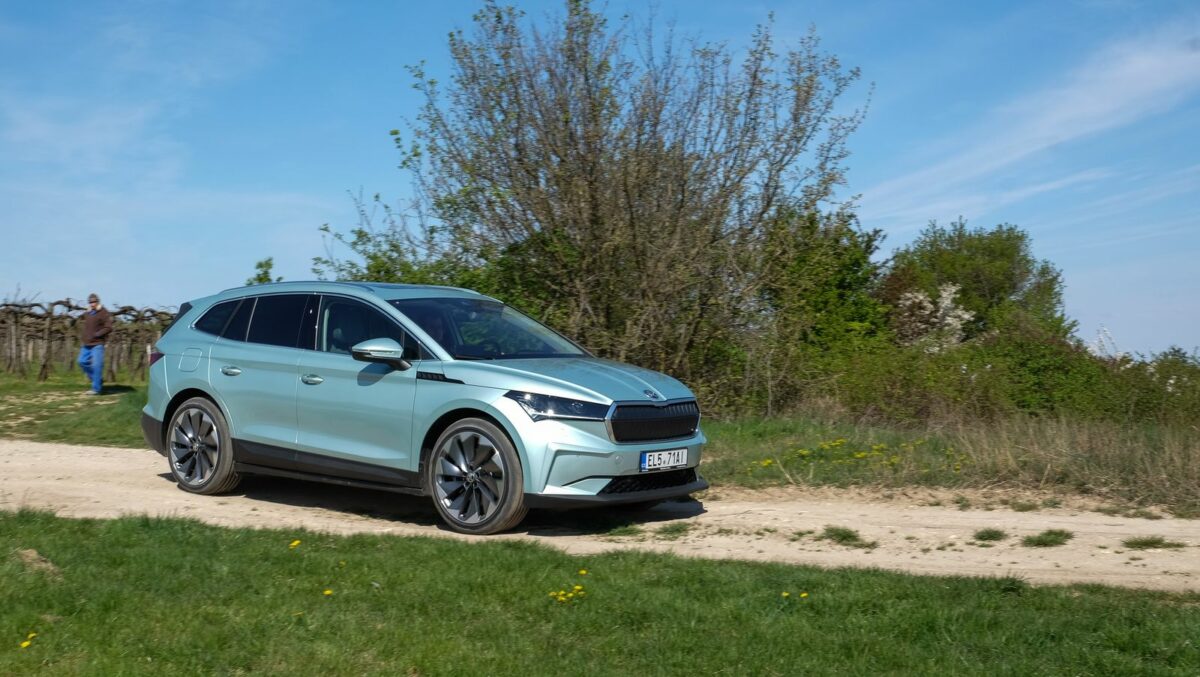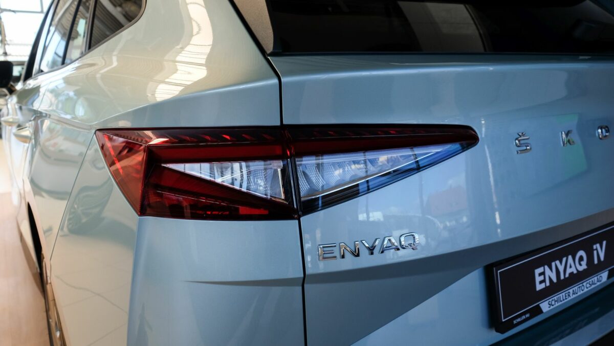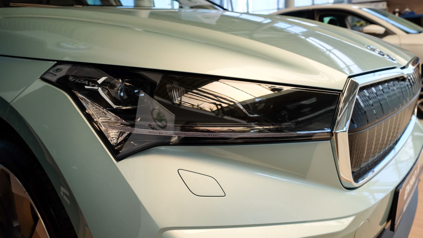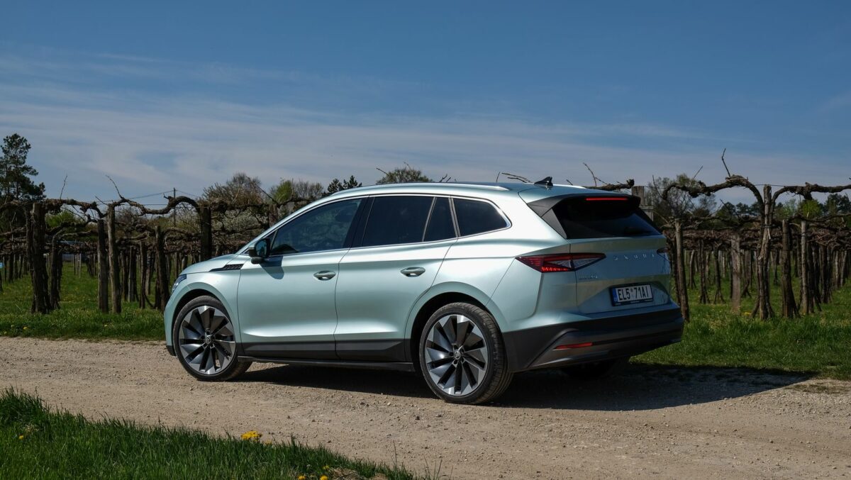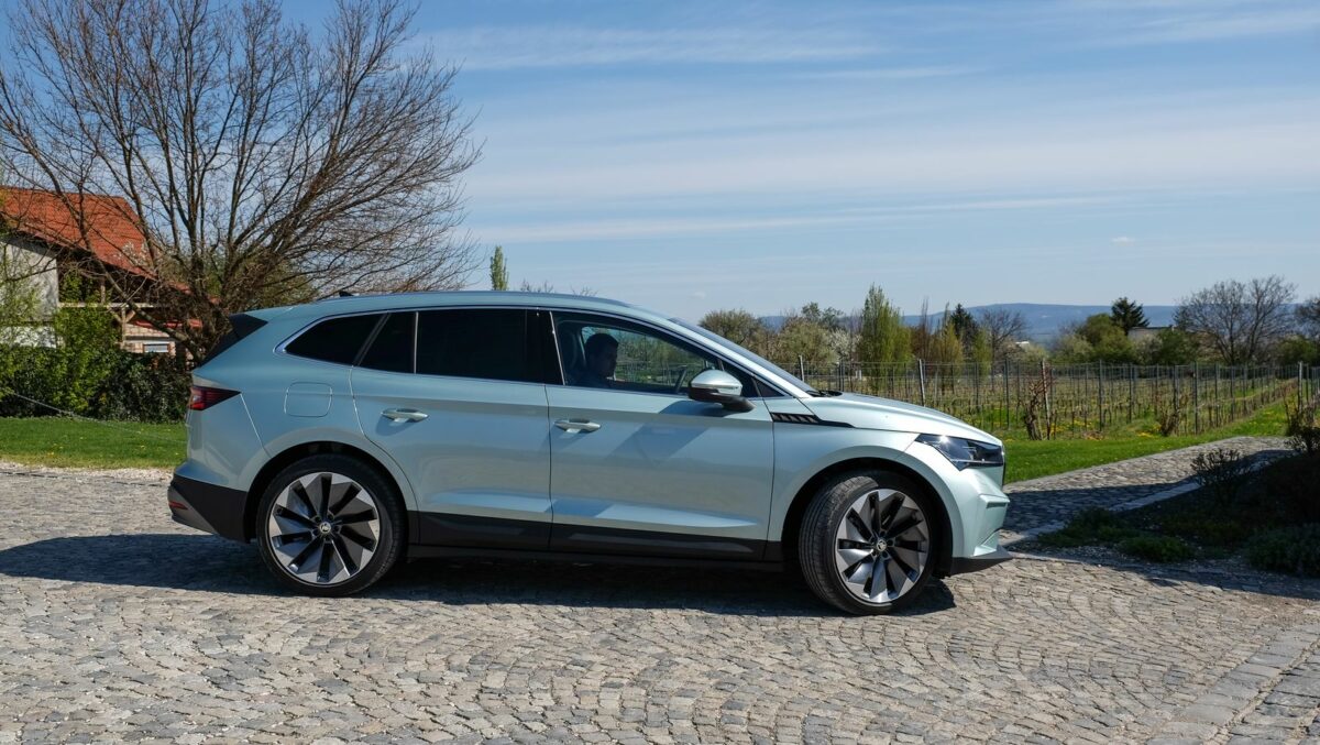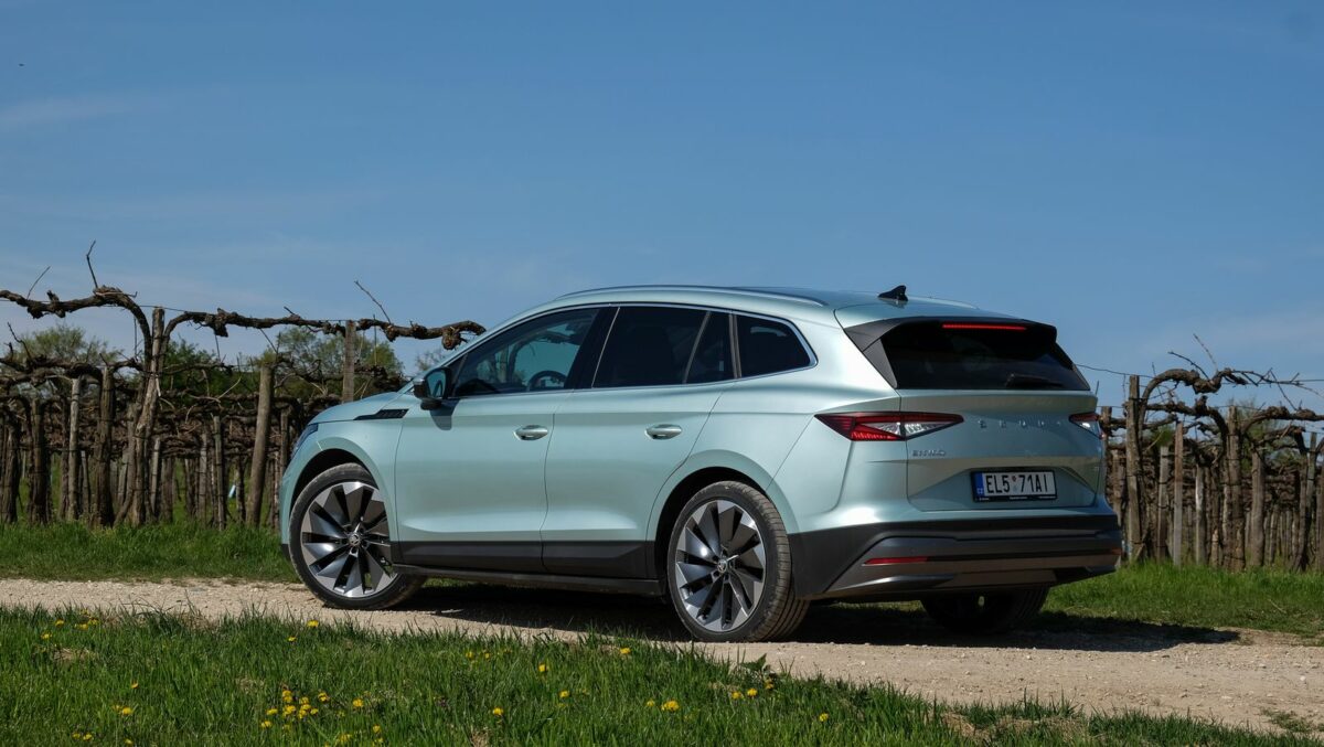 A Skoda első dedikált, egyben MEB platformos villanyautója az Enyaq iV, 1 milliméter híján 4,65 méter hosszú, azaz rövidebb az Octaviánál, utasterében ez azonban nem érezhető. Mindenképp LED fényszórós és kulcs nélkül nyíló, indítható, vezeték nélküli telefonkapcsolatos