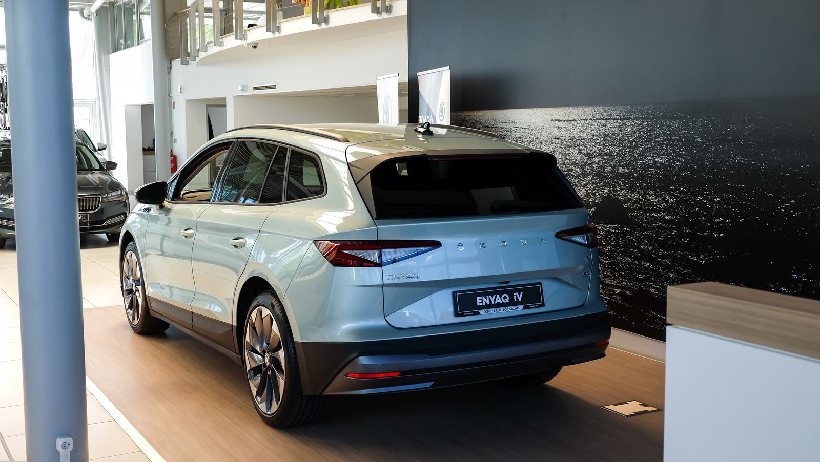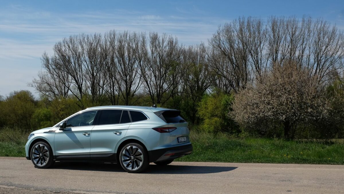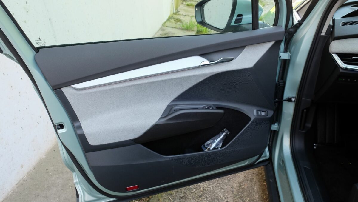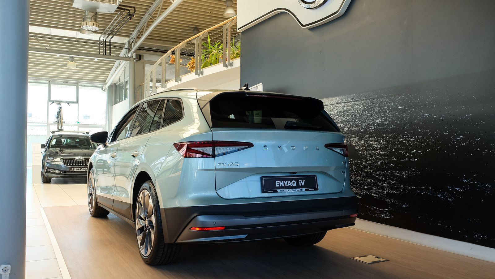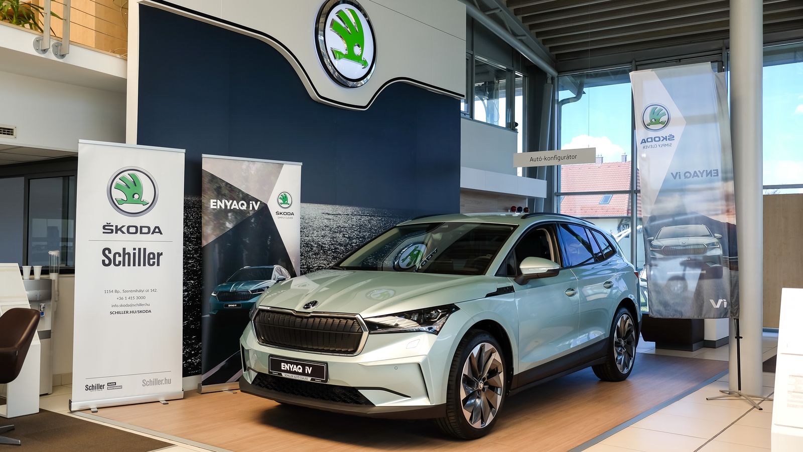 A Skoda első dedikált, egyben MEB platformos villanyautója az Enyaq iV, 1 milliméter híján 4,65 méter hosszú, azaz rövidebb az Octaviánál, utasterében ez azonban nem érezhető. Mindenképp LED fényszórós és kulcs nélkül nyíló, indítható, vezeték nélküli telefonkapcsolatos